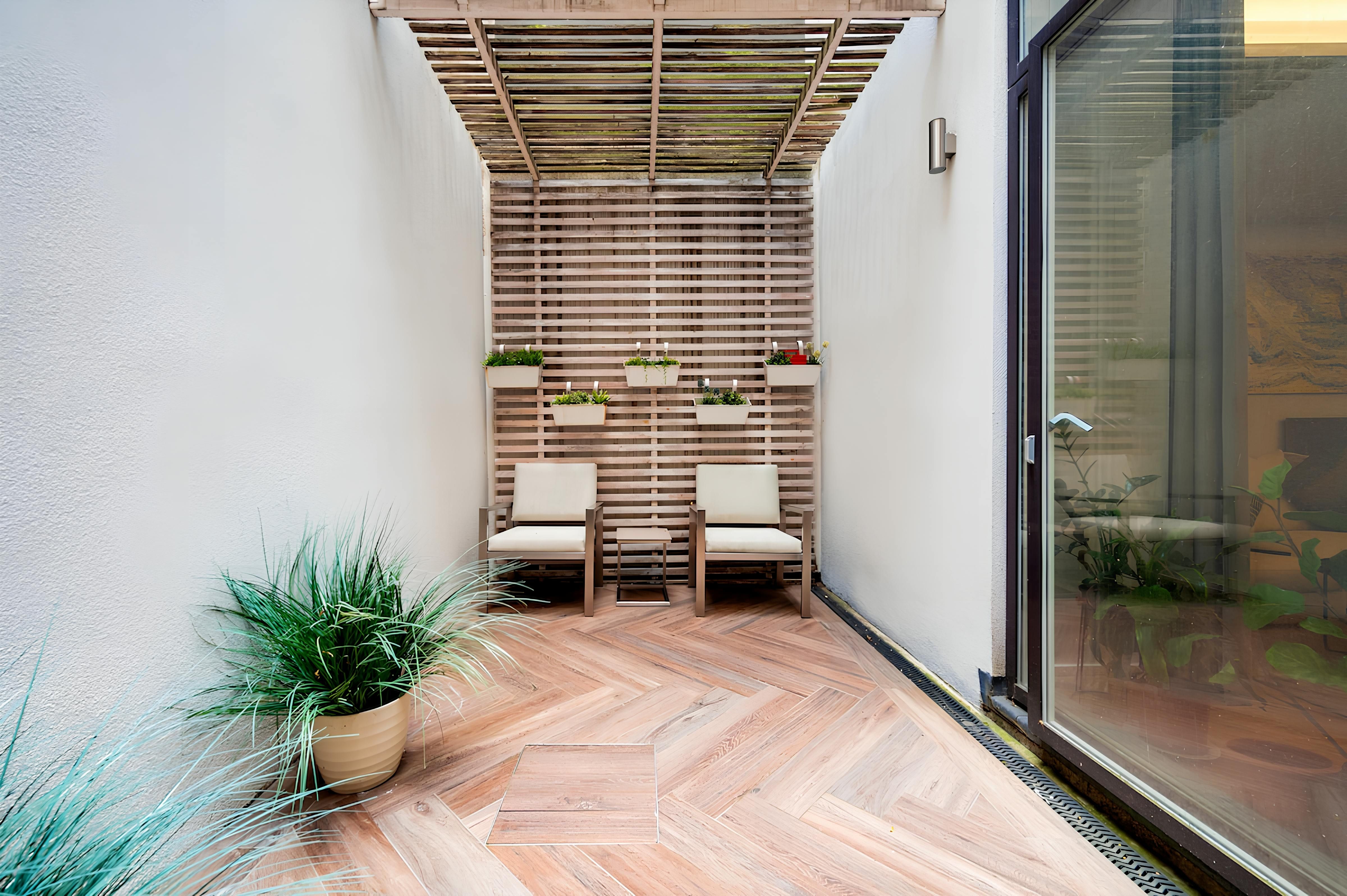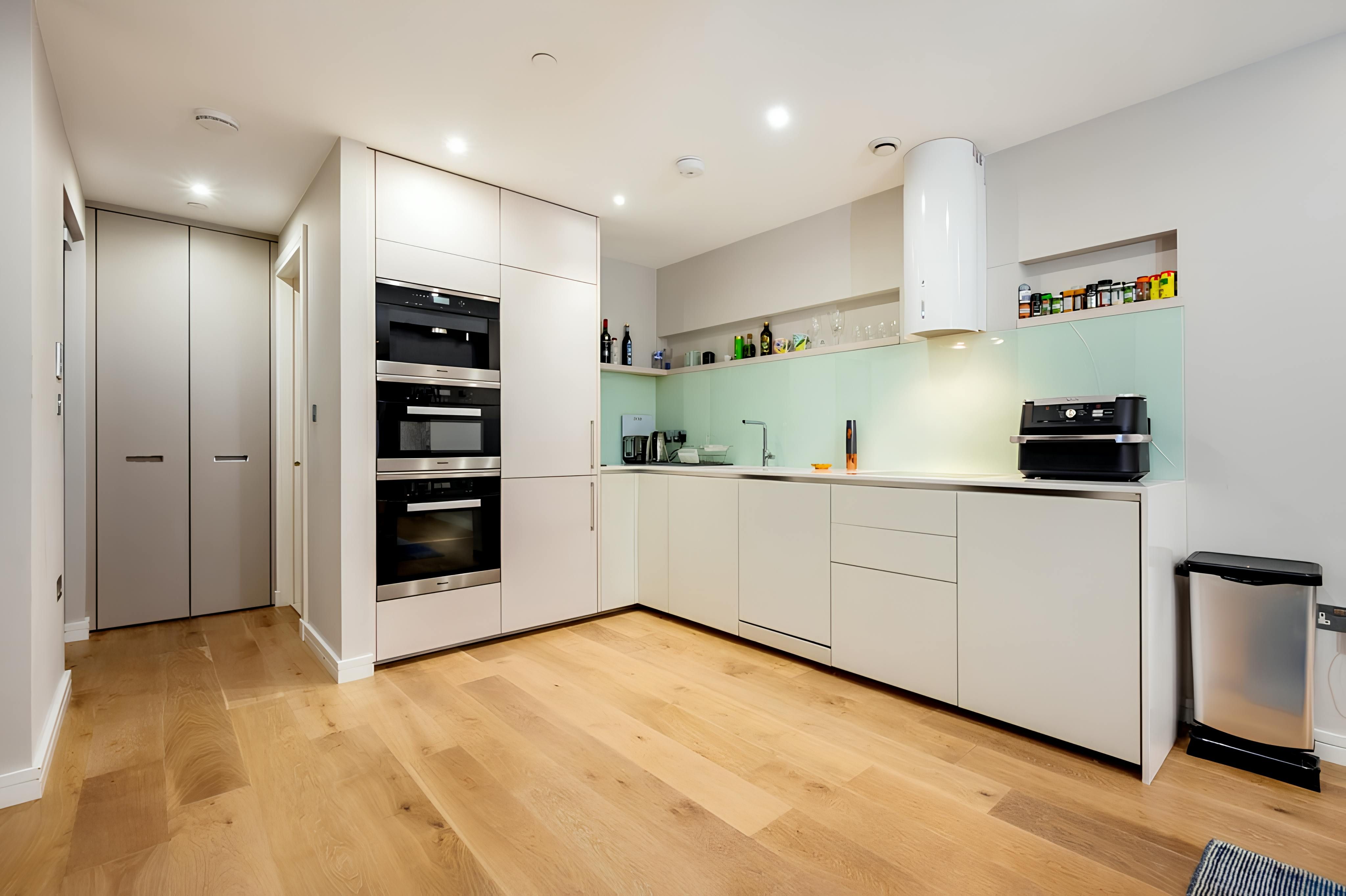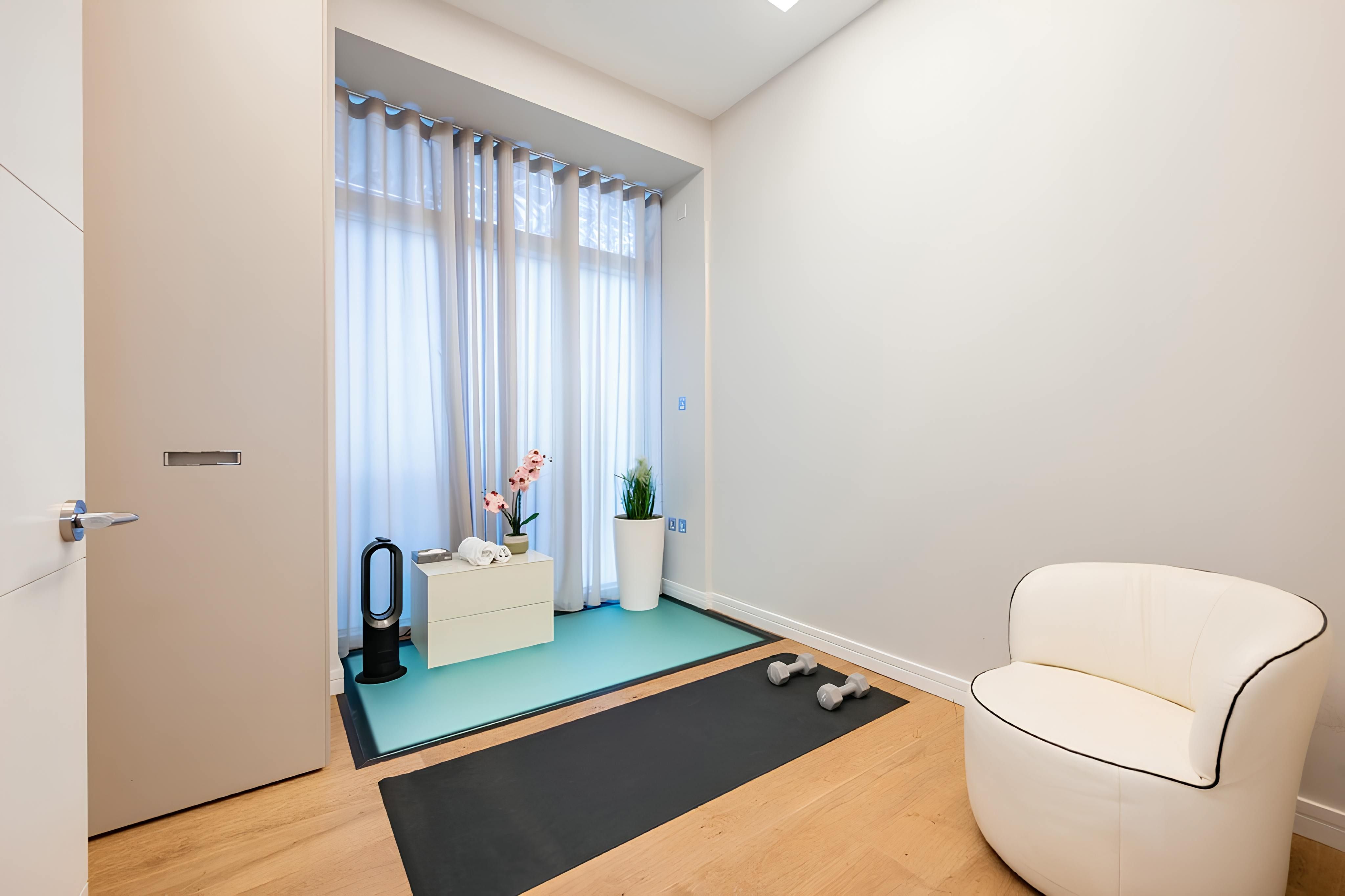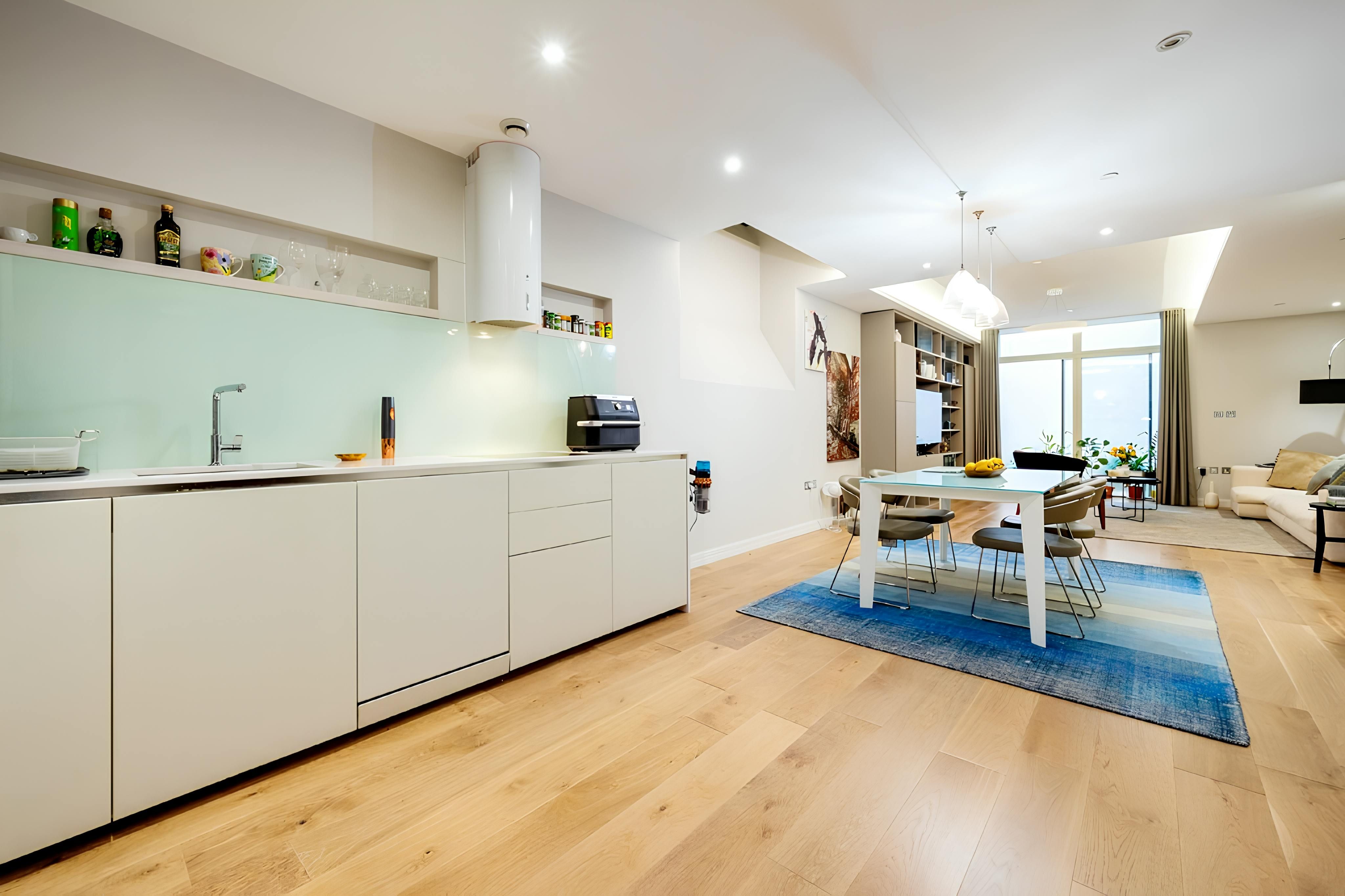 This stylish duplex apartment couldn’t be closer to Leicester Square – it's less than a thirty-second walk away. From there, you can effortlessly access Chinatown, Soho, and Covent Garden. Despite its central location, this is a peaceful London home. It faces an internal courtyard – it's a charming spot for a morning cuppa. The third bedroom has a small double bed that’s suitable for two children to share, and the room doubles as an exercise space. Convenient and comfortable, this apartment is a great choice for long stays in London.
