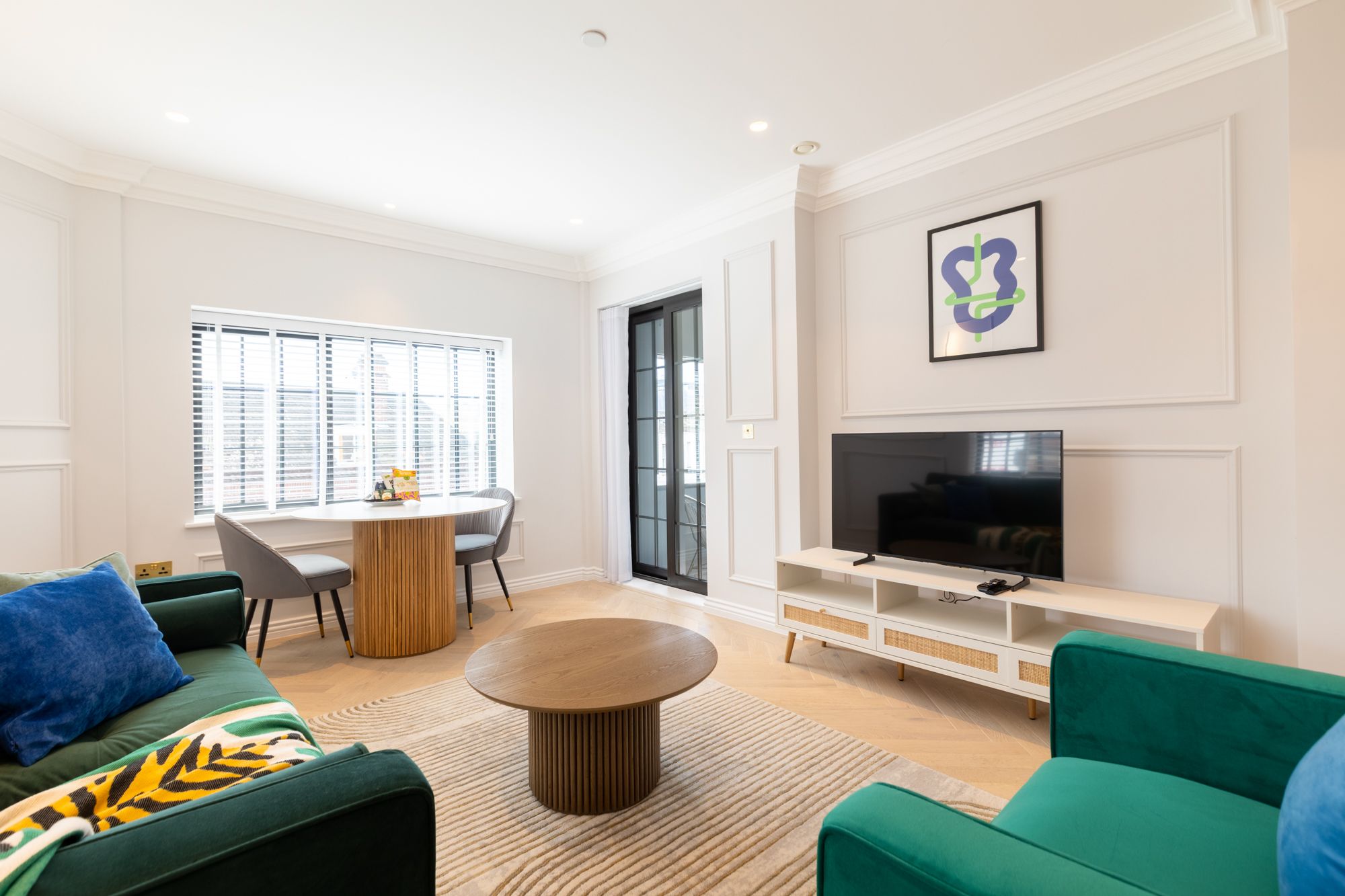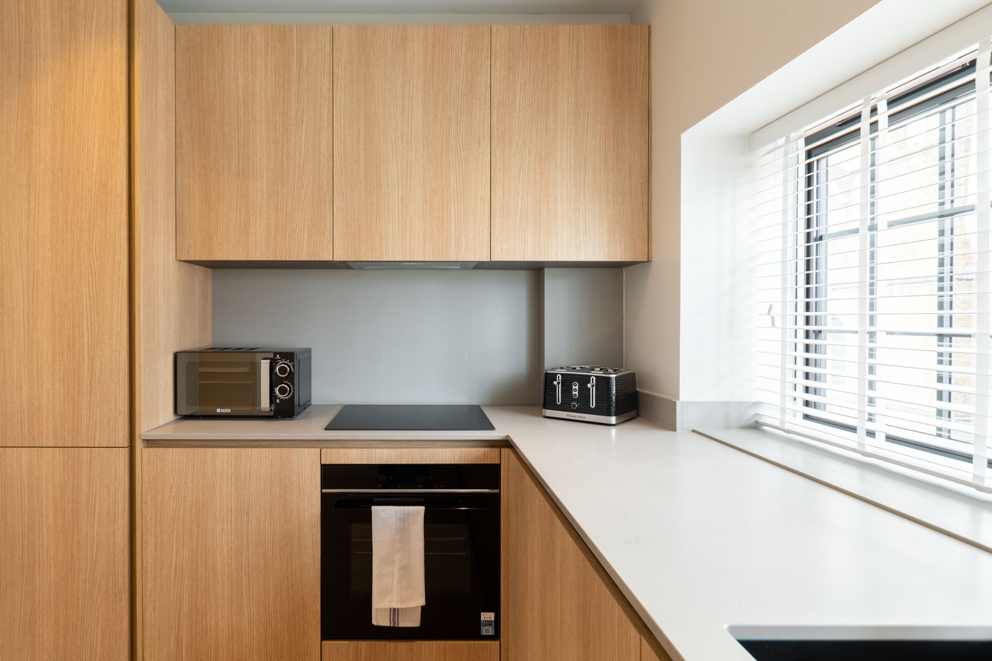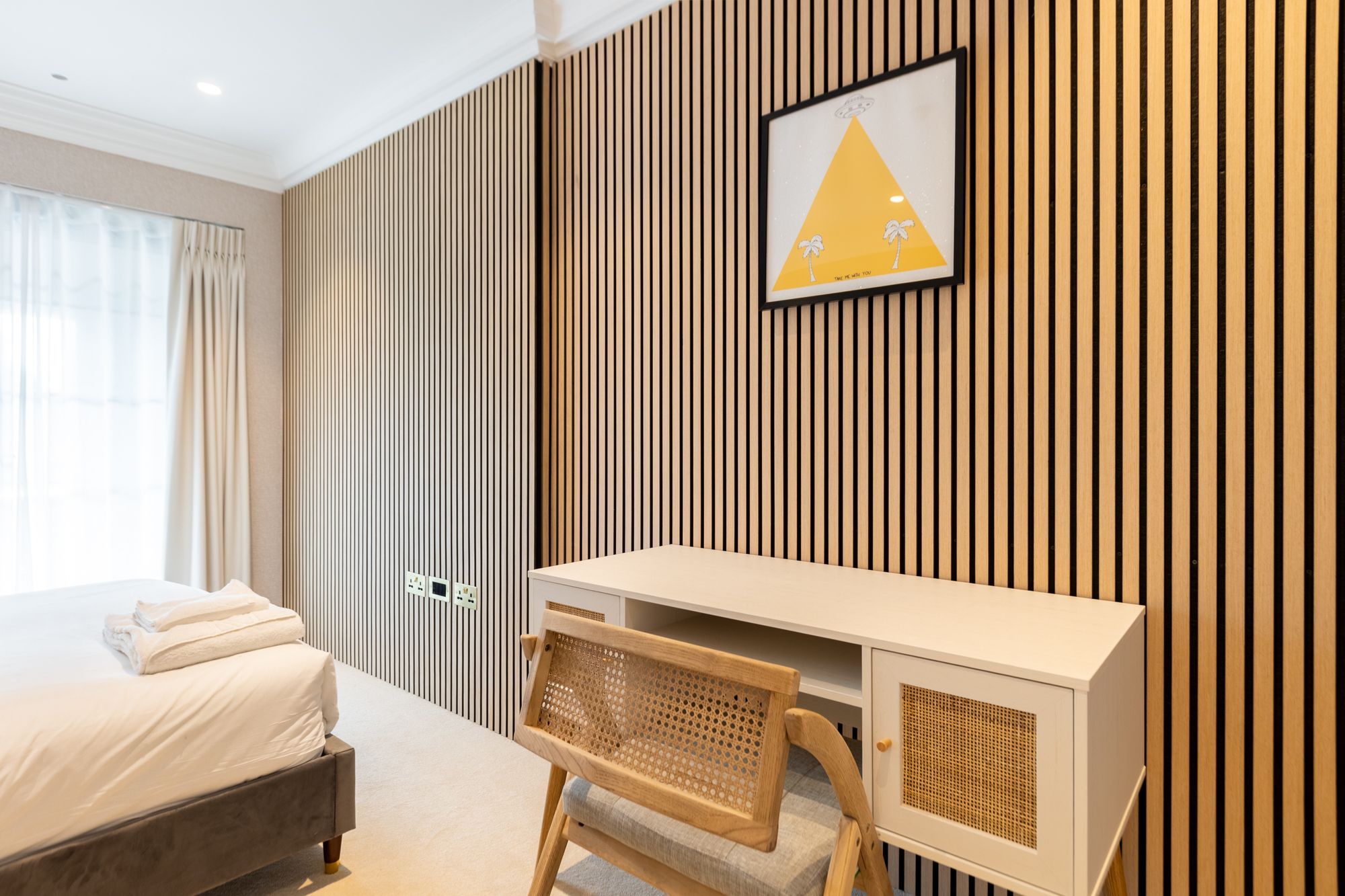 This home offers a stylish base for your next London adventure. Situated close to Borough Market, the Tate Modern, and London Bridge, it provides easy access to some of the city’s best attractions. The apartment is one of a collection of premium London homes, boasting thoughtfully curated interiors and sleek kitchens. Here, two guests will sleep on a sofa bed in the open-plan living space. There’s a desk in one of the bedrooms for remote working.