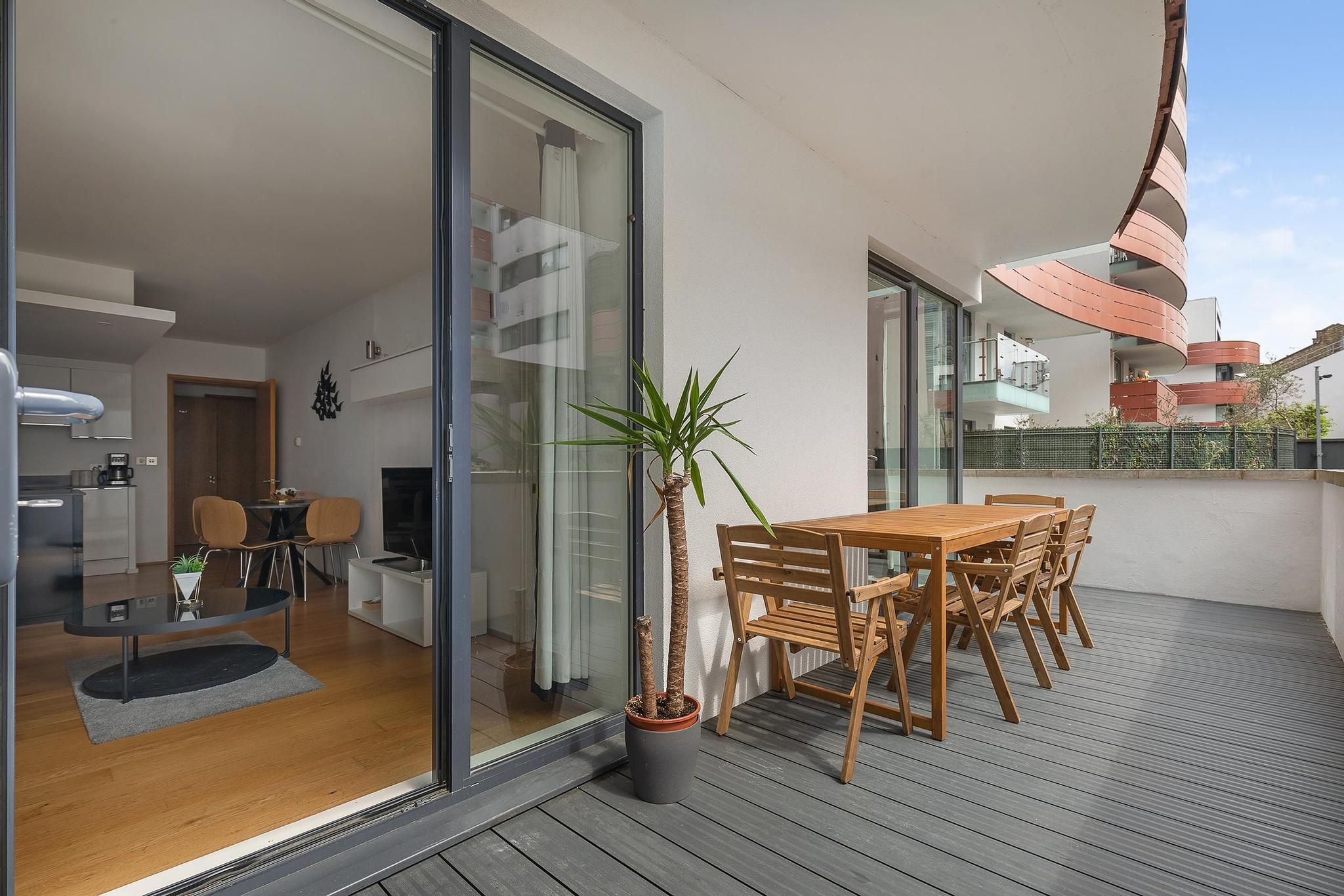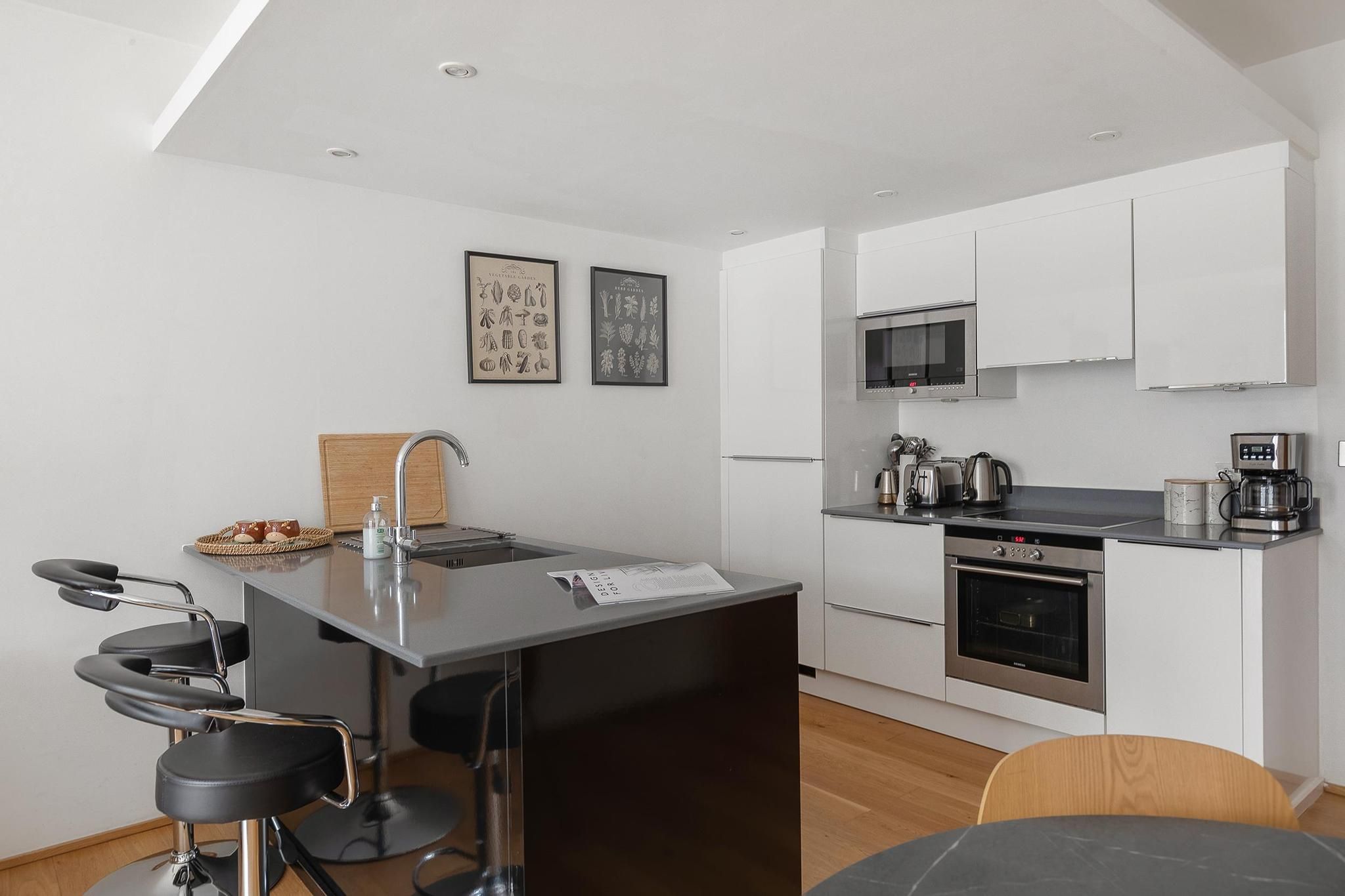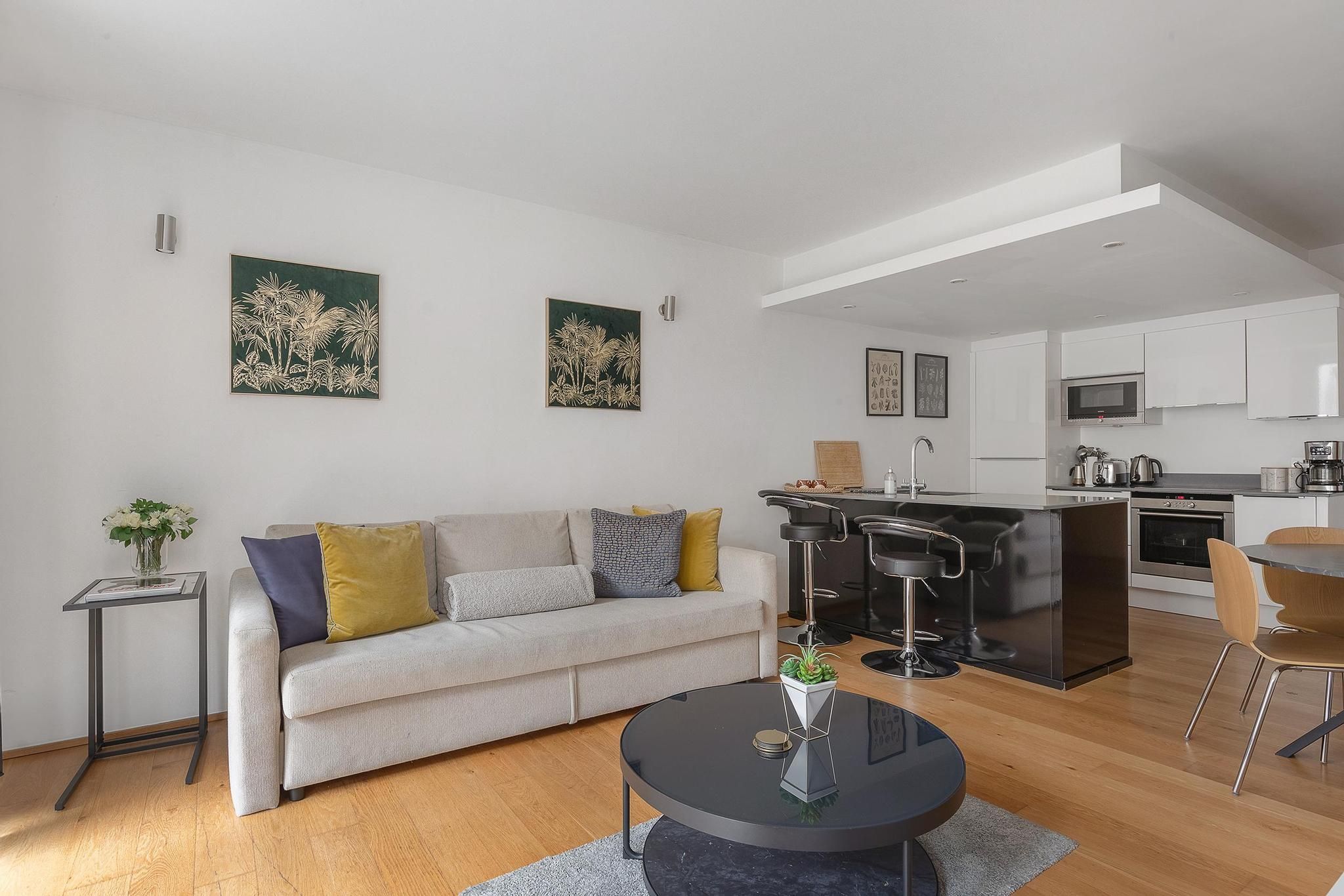 This apartment is a short walk from Notting Hill’s Portobello Road Market – you’ll also find plenty of boutiques, cafes and restaurants in the locale. A bonus of this home is there’s free and secure underground parking. Another highlight has to be the terrace – perfect for alfresco dining (one of the bedrooms has direct access to this outdoor space). The open-plan living area is perfect for entertaining – one guest will also be sleeping here on a sofa bed at full capacity. This home has everything you need for a stay in the capital.