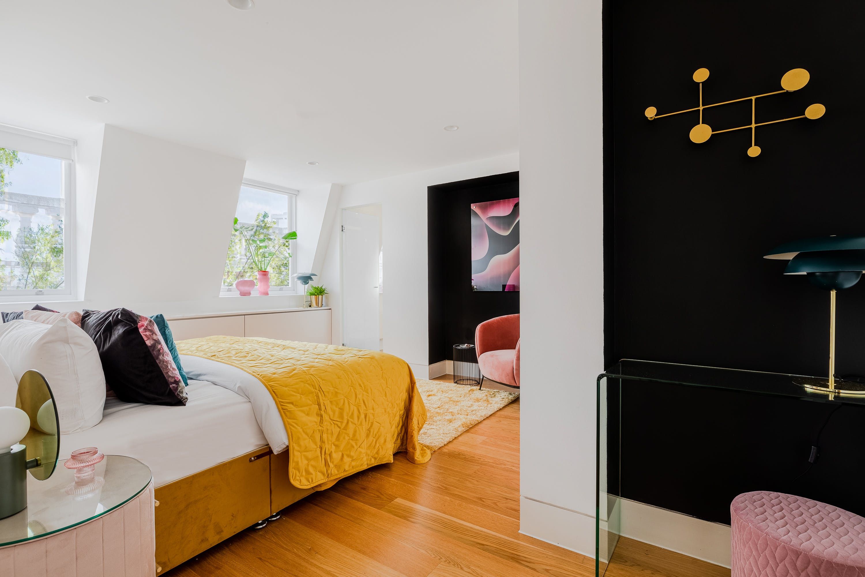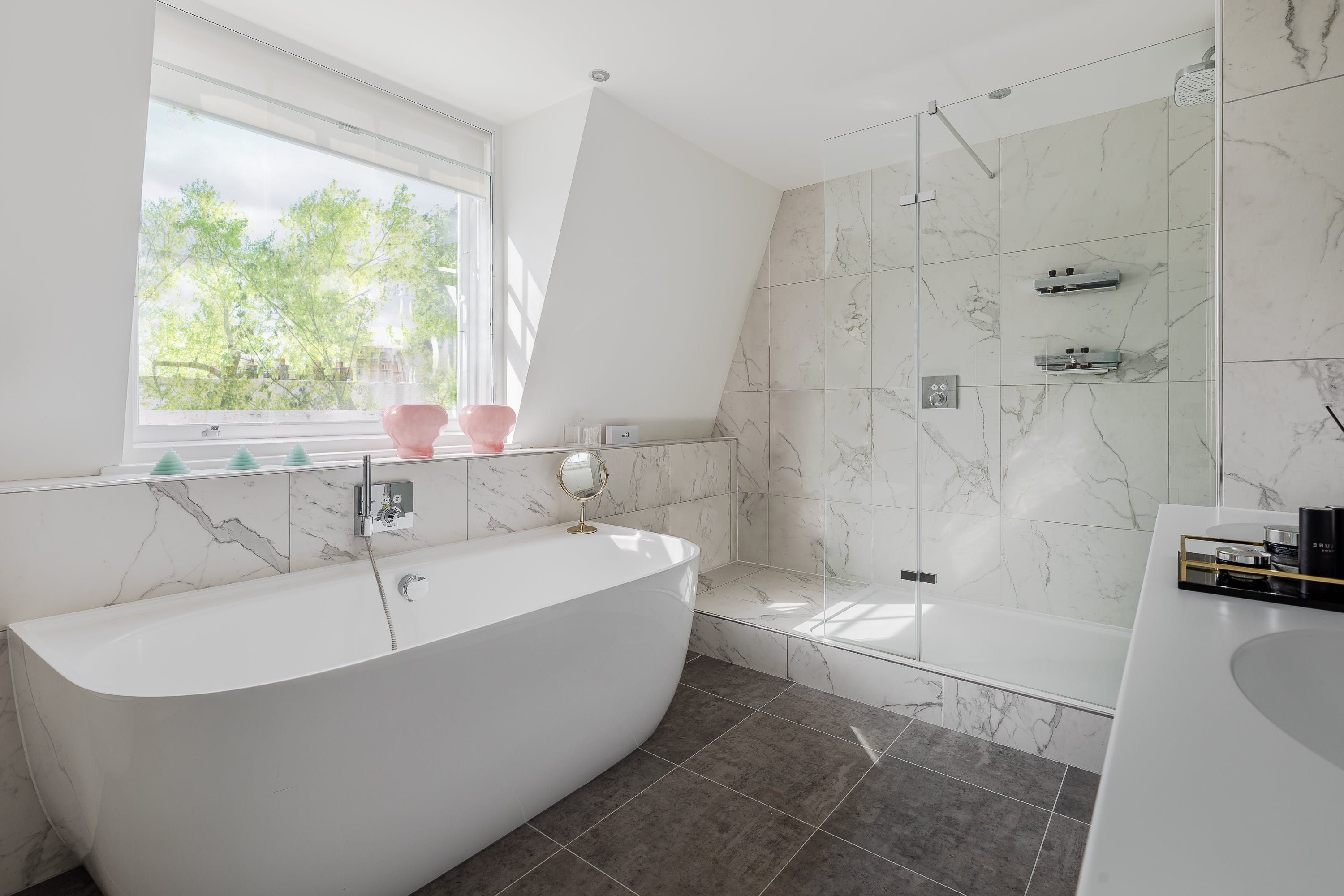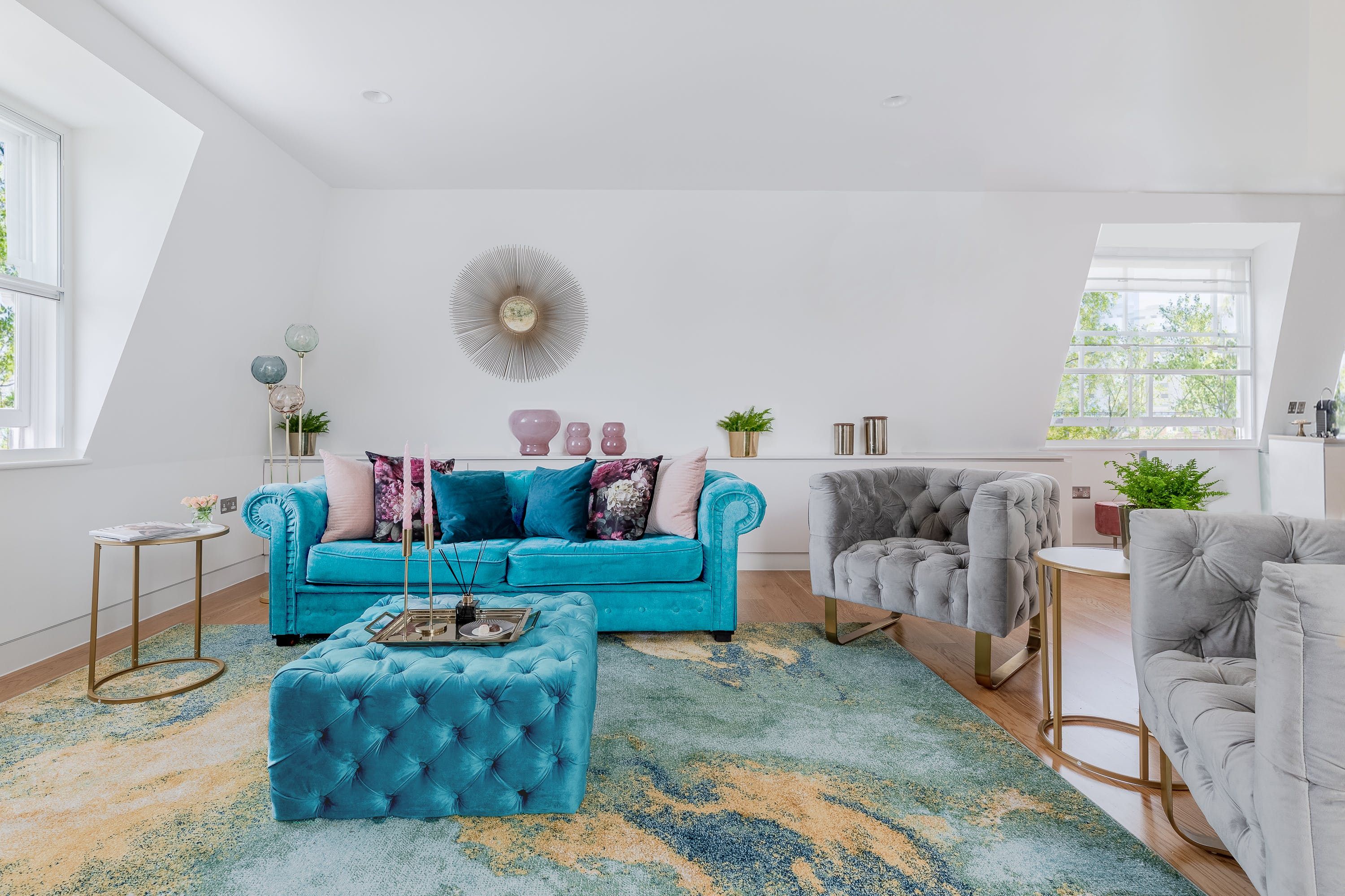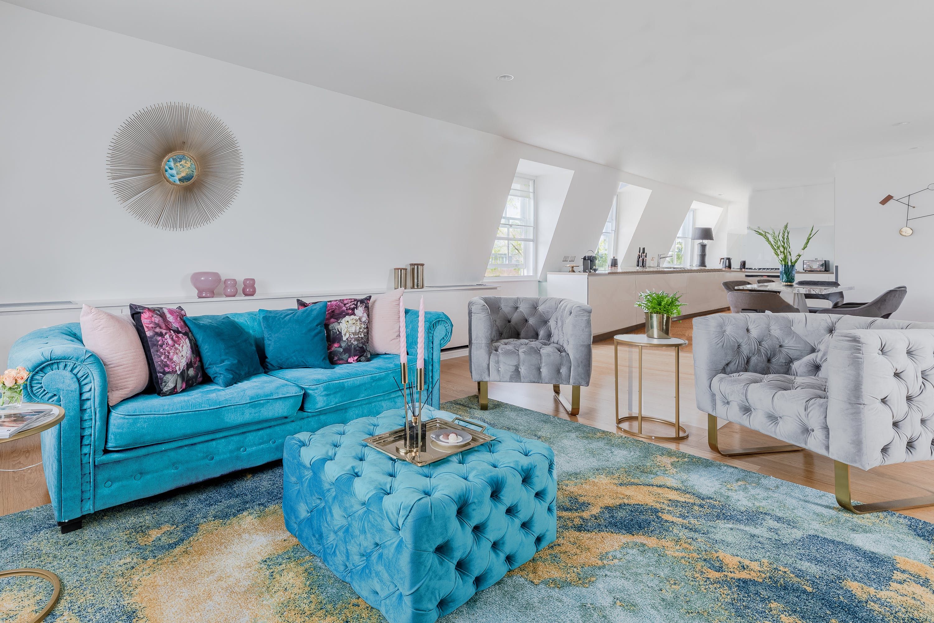 Back at this elegant home, relax on the turquoise velvet sofa with its many cushions and go through your purchases. Later, if you don't fancy eating out, whip up a salmon en croûte in the modern kitchen – we love the marble-topped dining table here. After a busy day, we can't think of anything better than a long soak in the bath – then head to bed in one of the luxurious bedrooms, all with plush velvet headboards and seating areas.