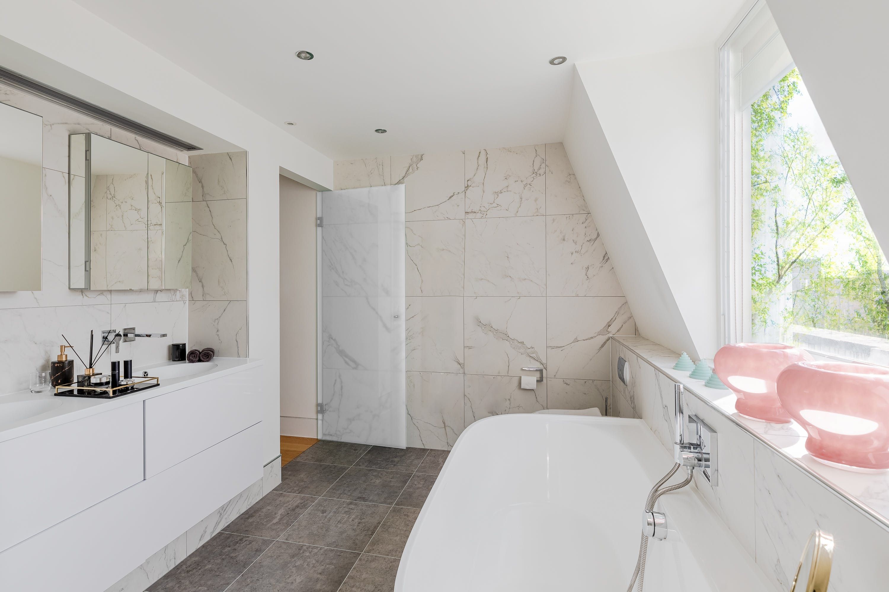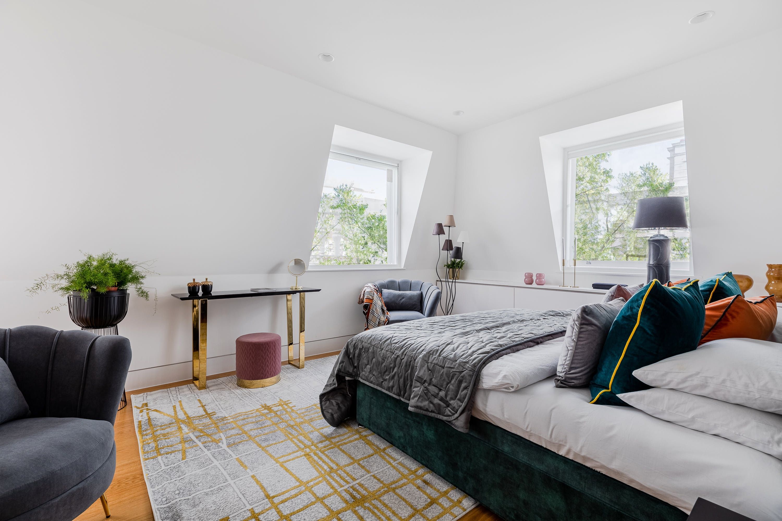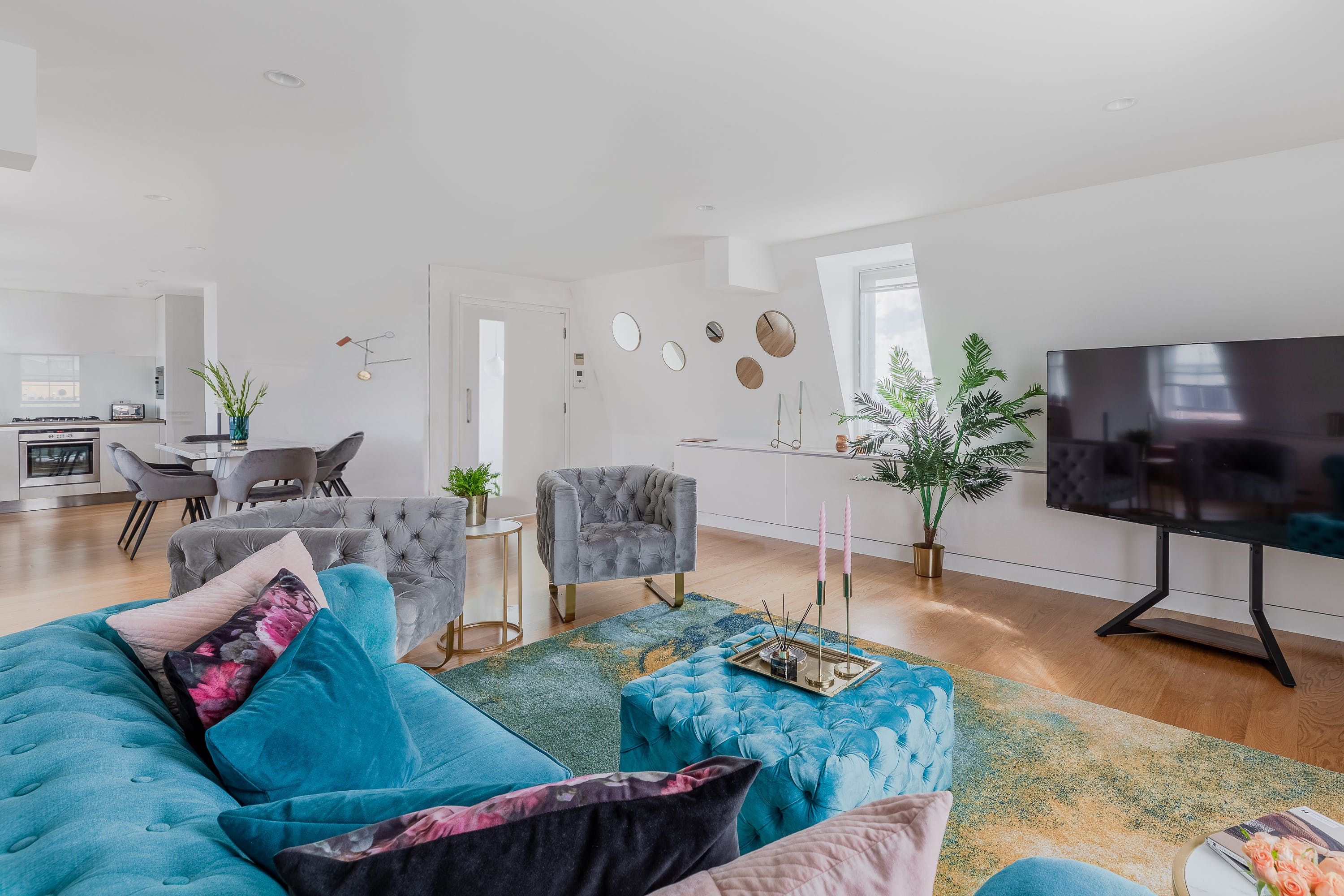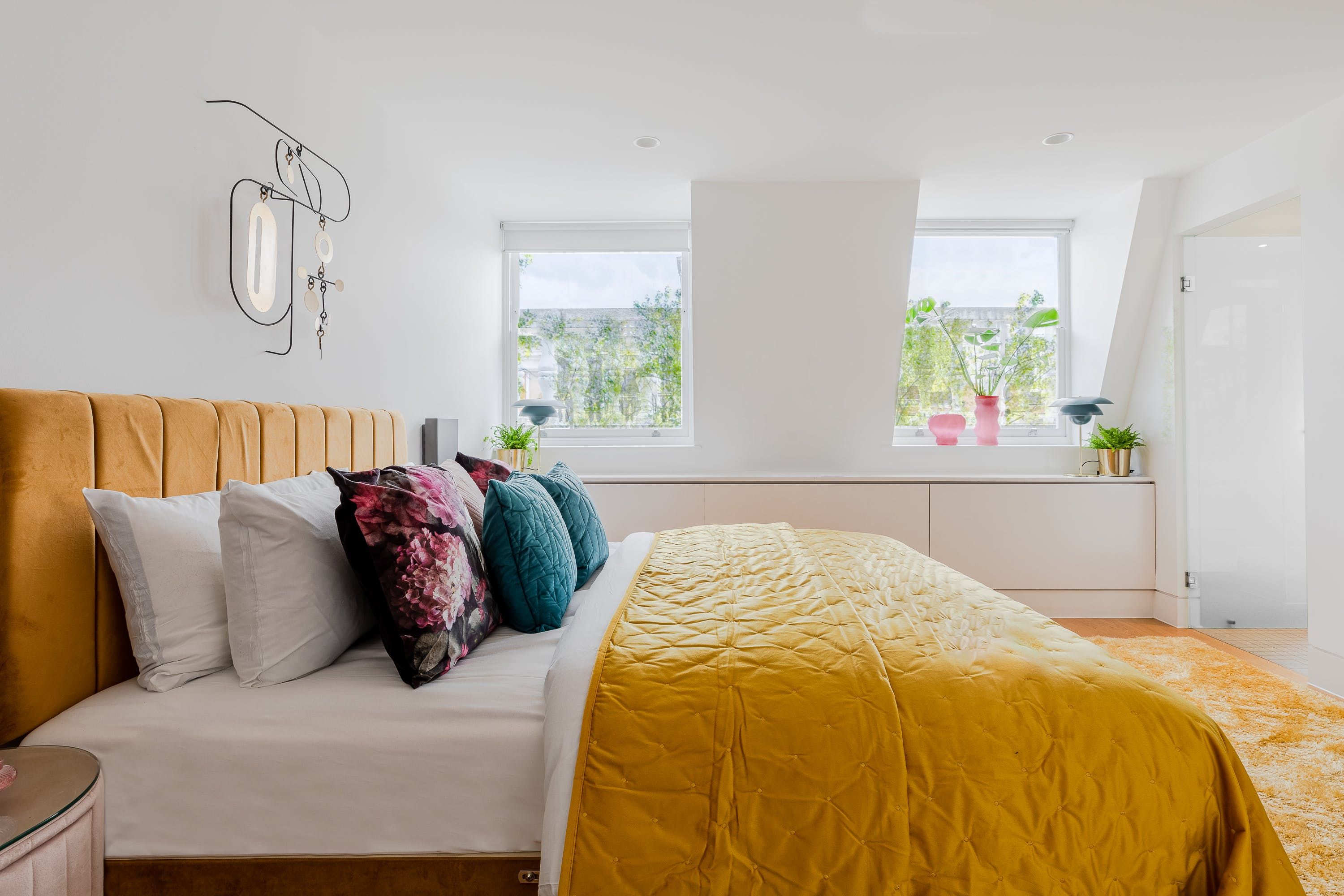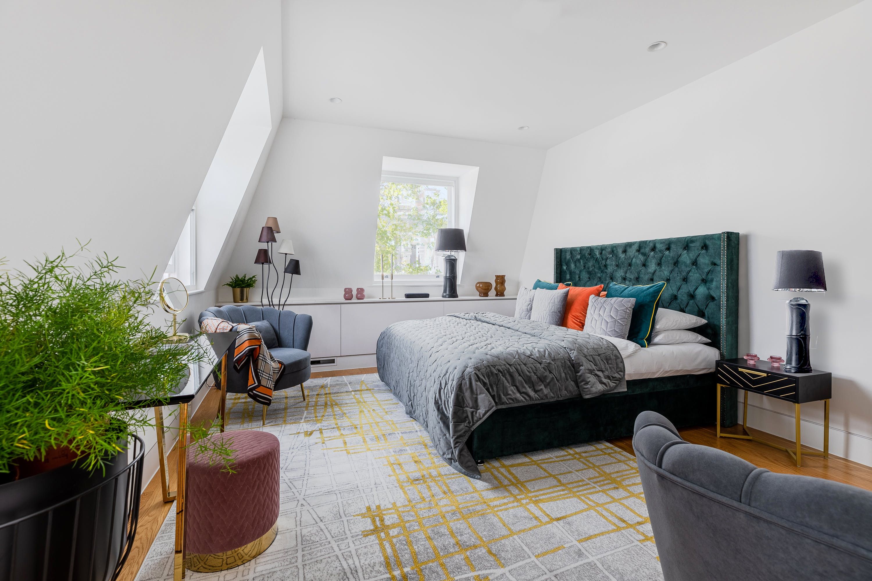 Back at this elegant home, relax on the turquoise velvet sofa with its many cushions and go through your purchases. Later, if you don't fancy eating out, whip up a salmon en croûte in the modern kitchen – we love the marble-topped dining table here. After a busy day, we can't think of anything better than a long soak in the bath – then head to bed in one of the luxurious bedrooms, all with plush velvet headboards and seating areas.