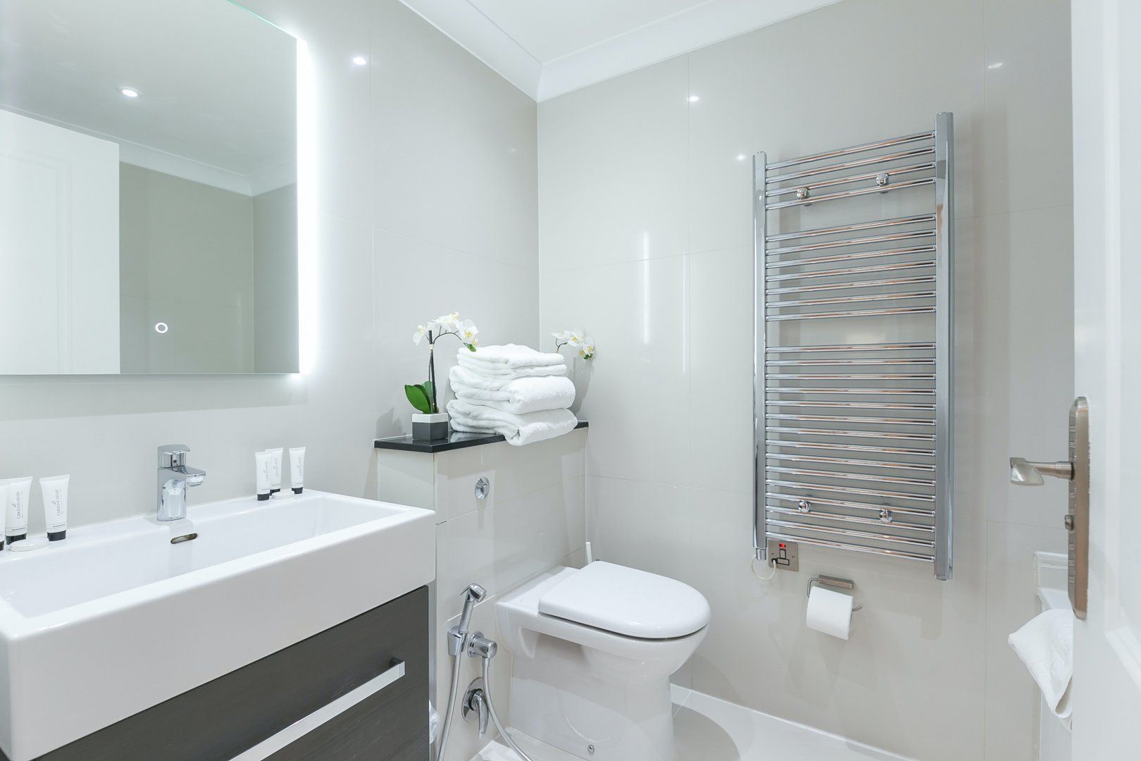 You’ll find this sleek, modern apartment in the centre of Bayswater, where the streets are lined with eateries selling global cuisine and the main train station (a five-minute walk away) can have you in central London in fifteen minutes. If meandering walks through greenery are more your thing, Hyde Park is less than ten minutes away on foot. At the apartment itself, high ceilings and sash windows give it an elegant, 19th-century feel with an updated colour scheme of muted stone greys and calming white. Enjoy lounging about in the refined living room with family, where tasteful wallpaper and luxe furniture add to the hotel feel. When bedtime falls, sleep sound in the stylish bedrooms, ready to explore the city tomorrow.