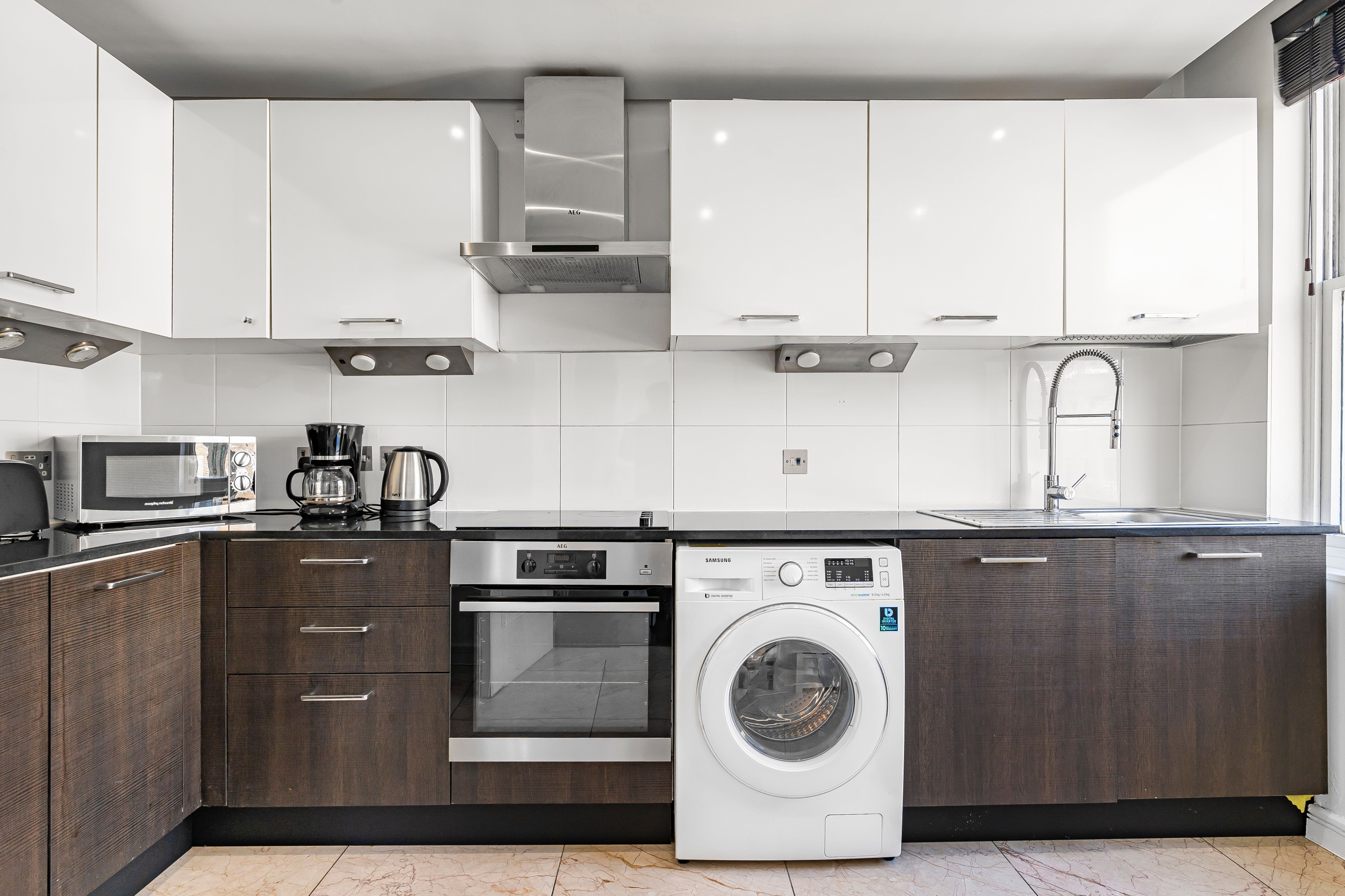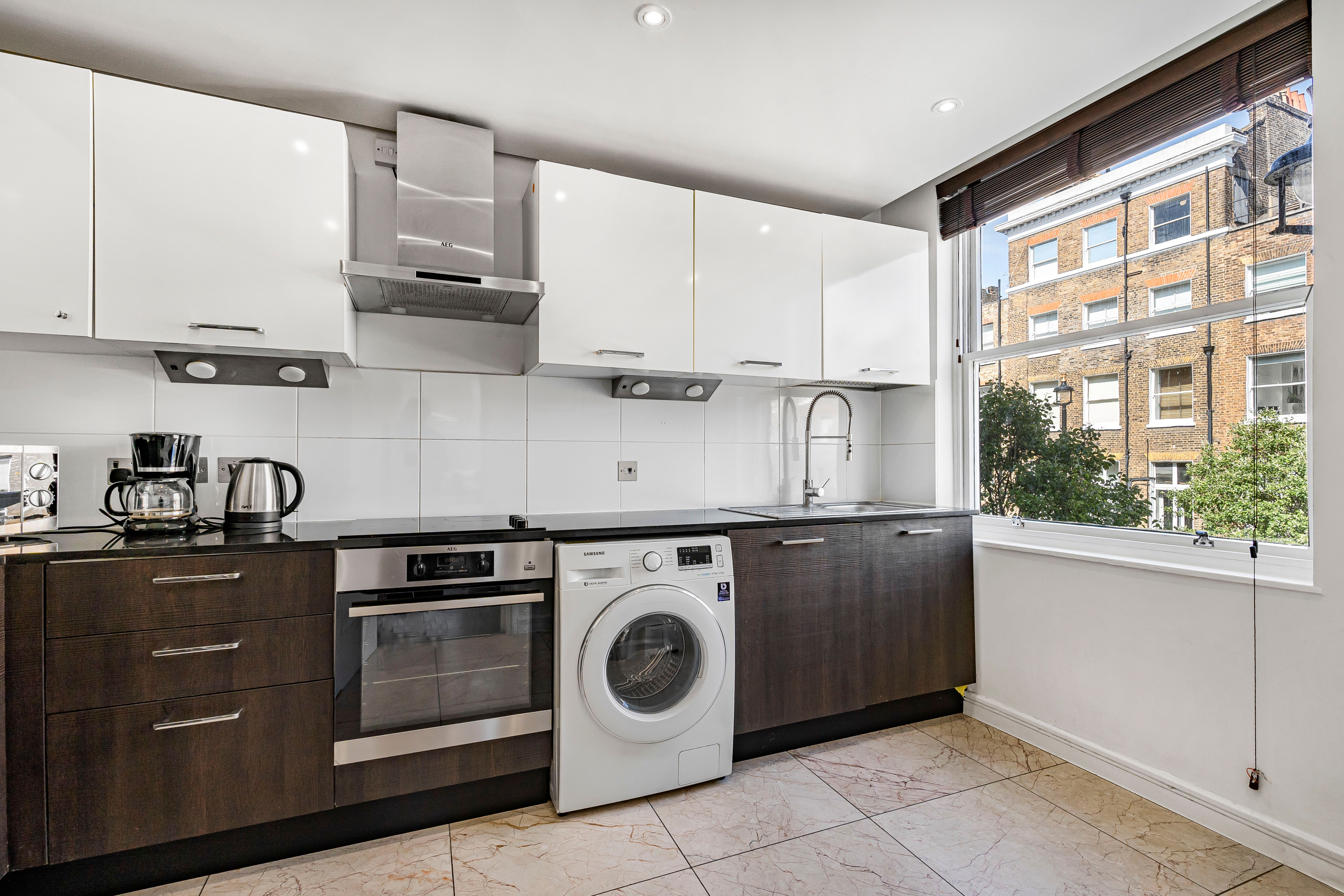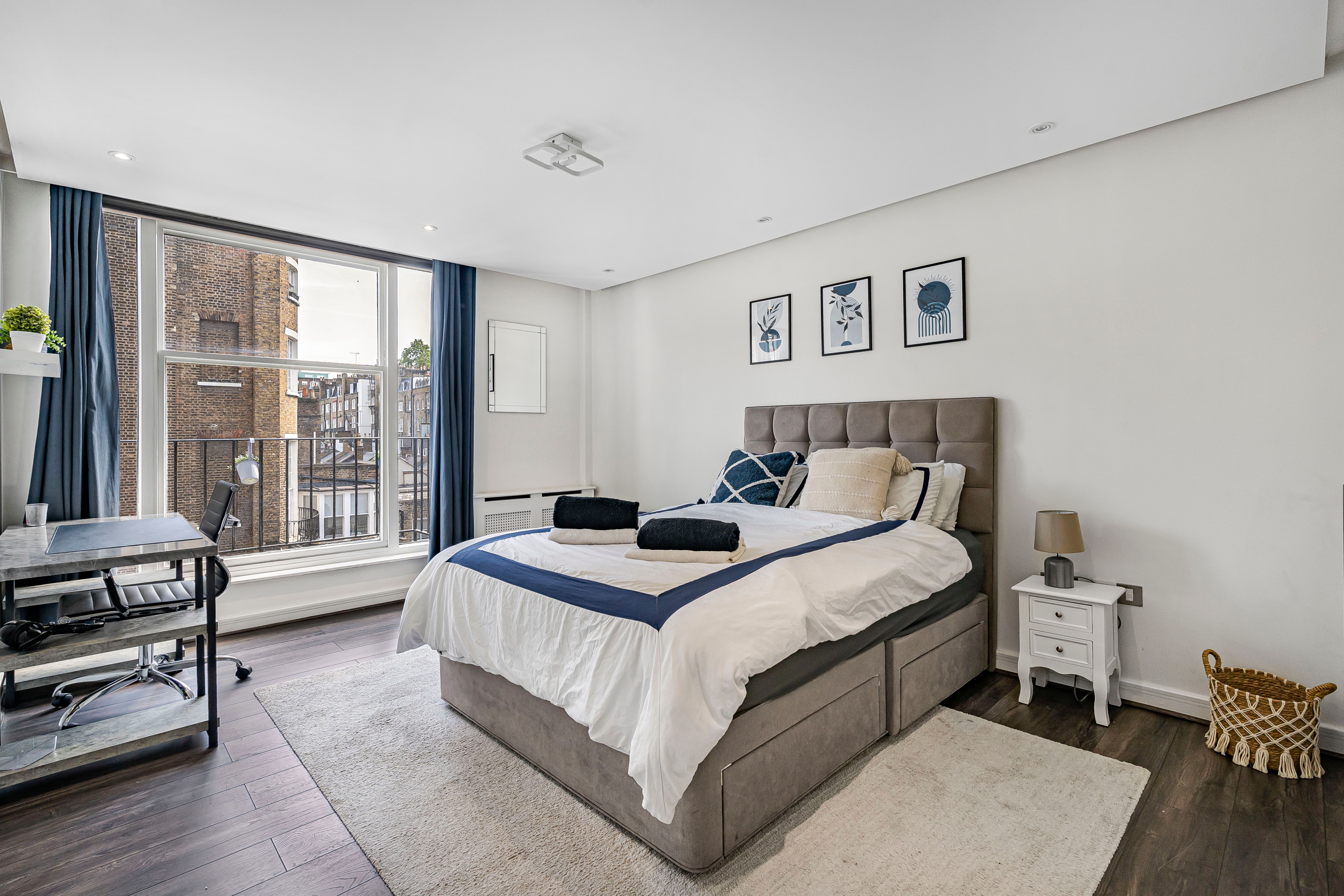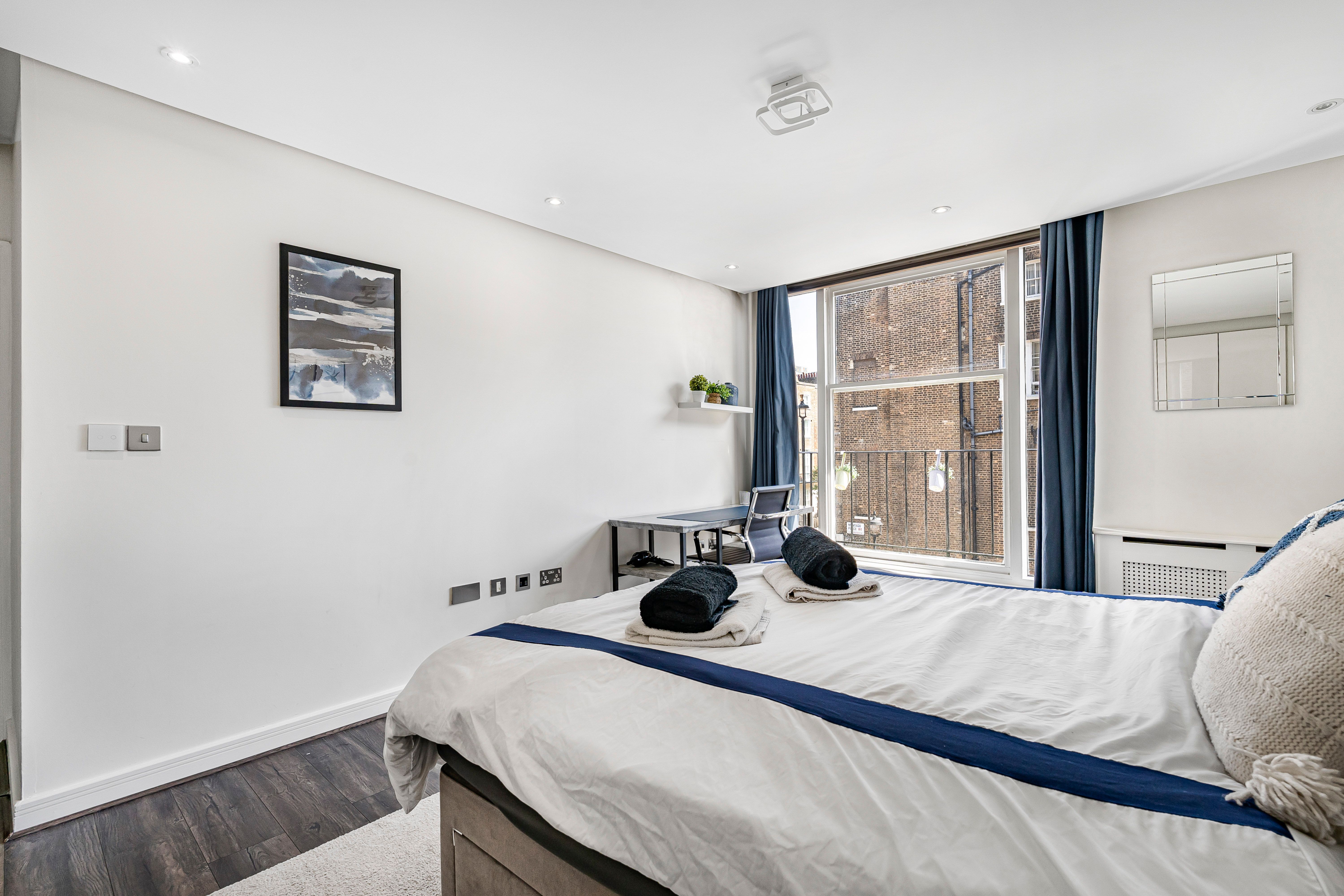 Location is everything in London. This apartment is based in Marylebone, mere moments from the best dining and shopping in the city – Selfridges, Oxford Street, and Bond Street are all within walking distance. You’ll also be close to Regent’s Park, ideal when you want a break from London’s hustle and bustle. On your arrival, you’ll stroll along a street lined with Georgian buildings, hinting at the elegance within. We love how bright this home is, with its tall windows and open-plan living and dining layout. At full occupancy, two guests will sleep on a sofa bed here. Everyone else will benefit from the calm, attractive bedrooms, one of which leads to a private balcony and has a desk for remote working.