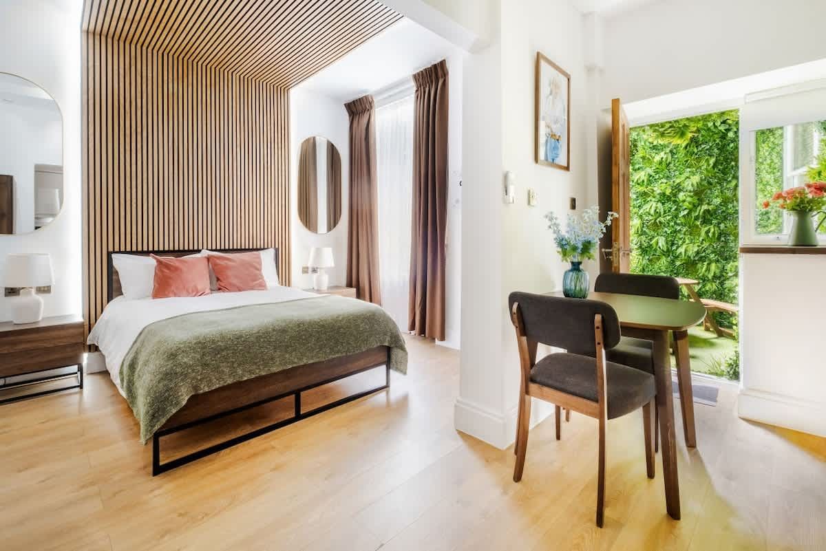 It's not every day you stumble across a central Marylebone studio apartment with a private outdoor space to boot. It's worth noting this is studio living, so there's no living space apart from the alfresco terrace, and the kitchen is pocket-sized. But thanks to some clever zoning, there's a cosy dining nook that doubles up nicely as a workspace. Step out from this smart Georgian apartment building, and in five minutes flat, you can stroll along Marylebone High Street or explore Regent's Park. Need to get somewhere fast? Regent's Park Station is just two minutes from your door.