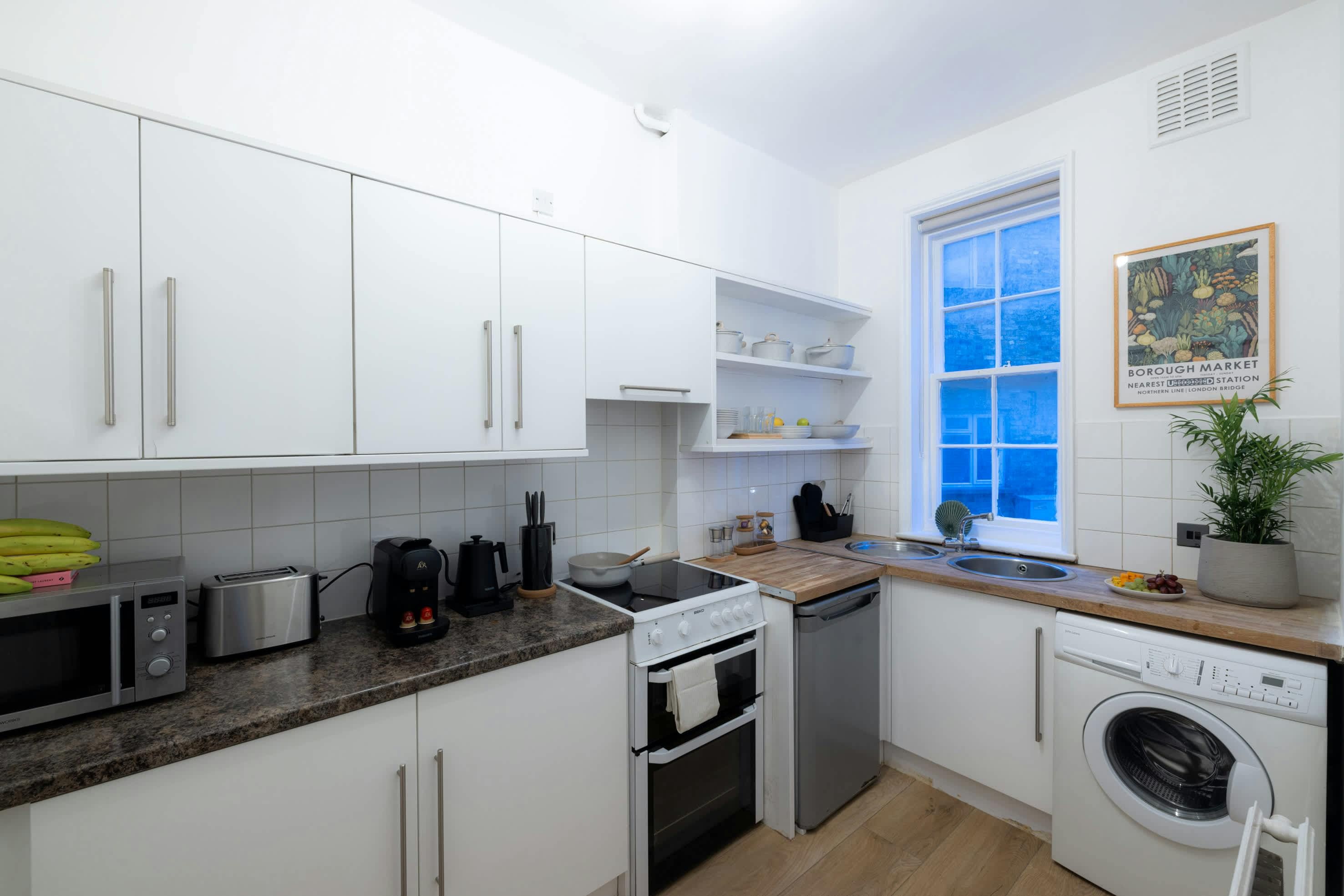 Located in Mayfair, this modern apartment drops you into the heart of the action. Sure, the bedrooms and kitchen are a little on the cosy side, but you’ll find all the key ingredients for a comfortable stay in the city here. And location-wise, you’re in for a treat. Mere steps from Oxford Street, you can indulge in a spot of retail therapy with ease. Fancy a spot of sightseeing? You can walk to Piccadilly Circus, Leicester Square and Buckingham Palace – there’s something for everyone here.