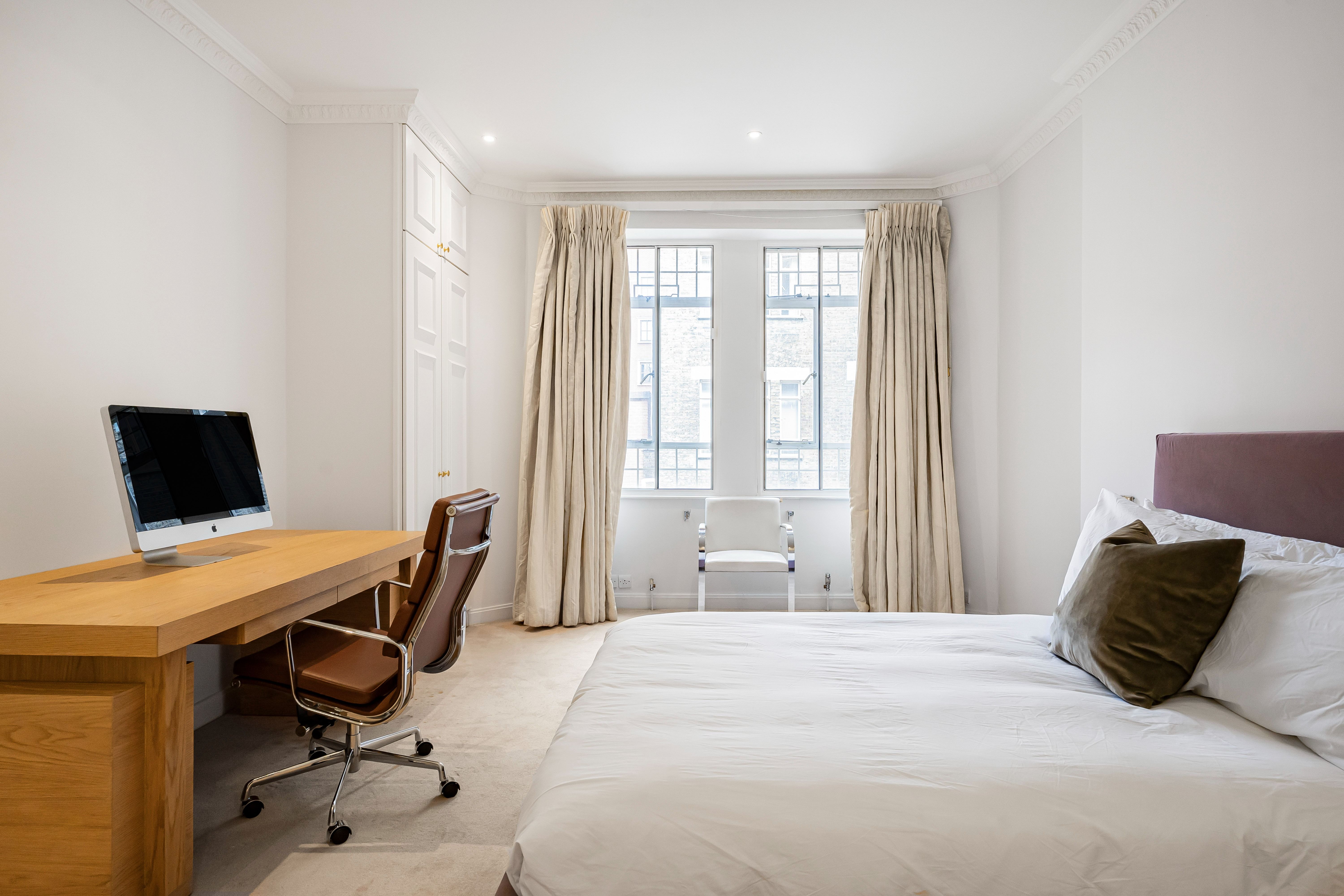 Set in prestigious Mayfair, this elegant home is the perfect blend of comfort and location. You’ll be just steps from Green Park, Buckingham Palace, and the neighbourhood's many Michelin-starred restaurants and private members’ clubs. Inside, light pours through tall windows, highlighting lofty ceilings, curated art, and a grand mahogany dining table. The bedrooms offer plenty of storage, with one featuring a home office setup that’s perfect for remote work or study. At full capacity, one guest will sleep on the sofa bed in the living room. While the kitchen and bathrooms are a little dated, the stylish main living space and unbeatable location more than make up for it.