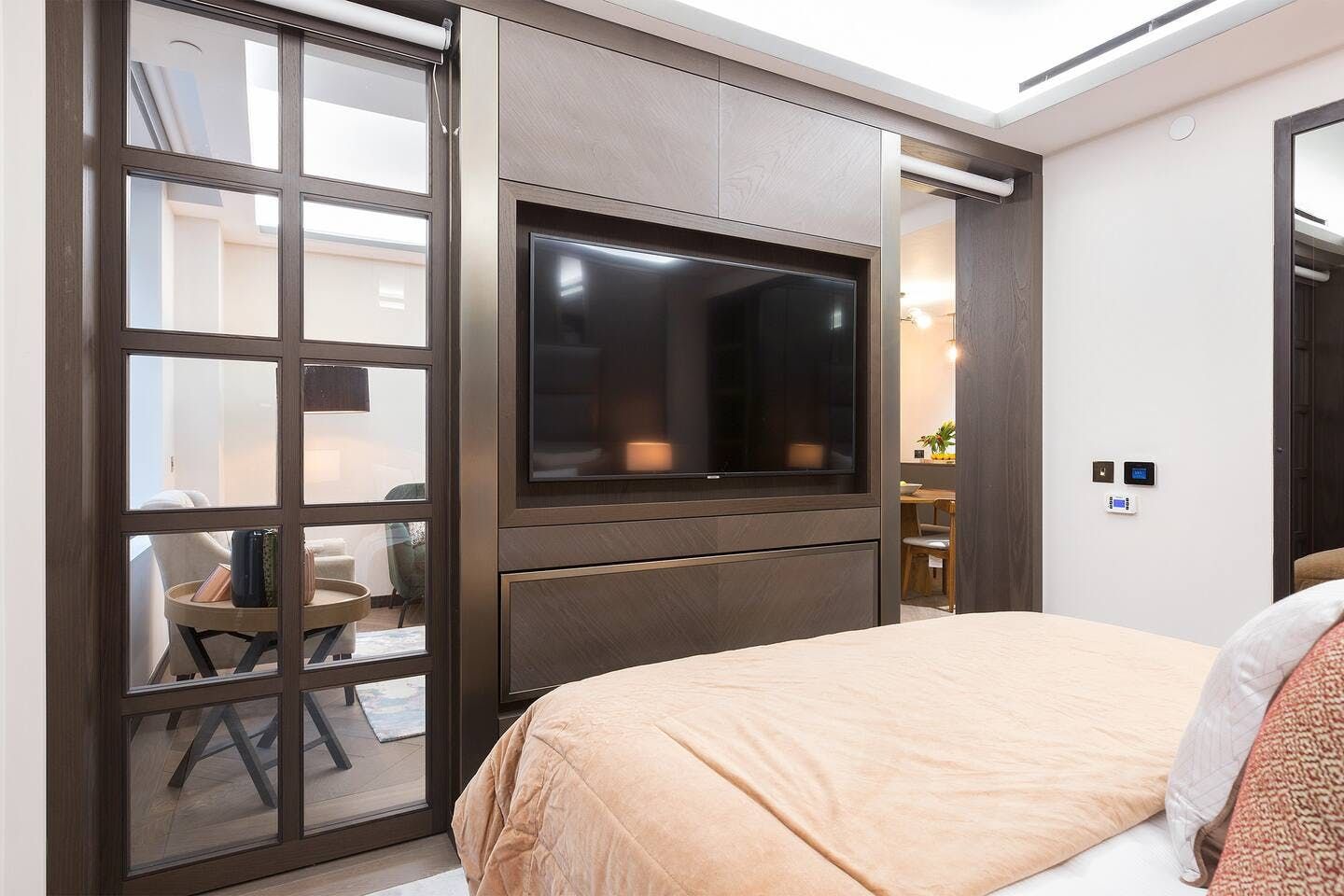 Earthy tones, crisp white and soothing greens create a warm and welcoming vibe in this contemporary flat in Soho. Set on the corner of the prestigious Golden Square in the heart of the city’s most bustling area, you’ll feel instantly soothed and recharged in this urban chic pad. Compact yet comfortable, it has everything you need to visit London in style. After enjoying breakfast in the modern kitchen, head out to explore the neighbourhood’s eclectic mix of high-end boutiques, international restaurants and trendy bars right on the doorstep. Stroll over to leafy Hyde Park for peaceful walks, indulge in some retail therapy on Carnaby Street or neighbouring Regent Street and grab tickets for a memorable West End show. After a long day of sightseeing, the large rain shower offers the perfect space to unwind before settling into the plush bed for a cosy night in with your favourite series.