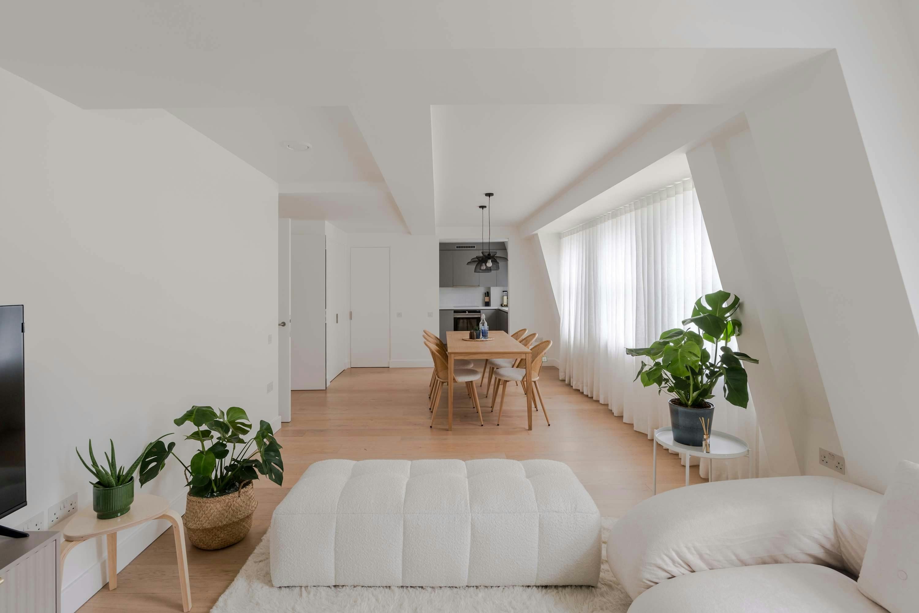 This conveniently located apartment is a sophisticated London base, situated between Marylebone Village and Fitzrovia. Great Portland Street Tube station is a two-minute walk away, you can stroll to Regent’s Park in no time, and you’ll have countless excellent restaurants to choose from nearby. The apartment is chic and comfortable, with a fully-equipped kitchen and a contemporary open-plan living and dining area, where you can spend time together in between shopping and sightseeing. At full occupancy, one guest will sleep on a sofa bed in this space.