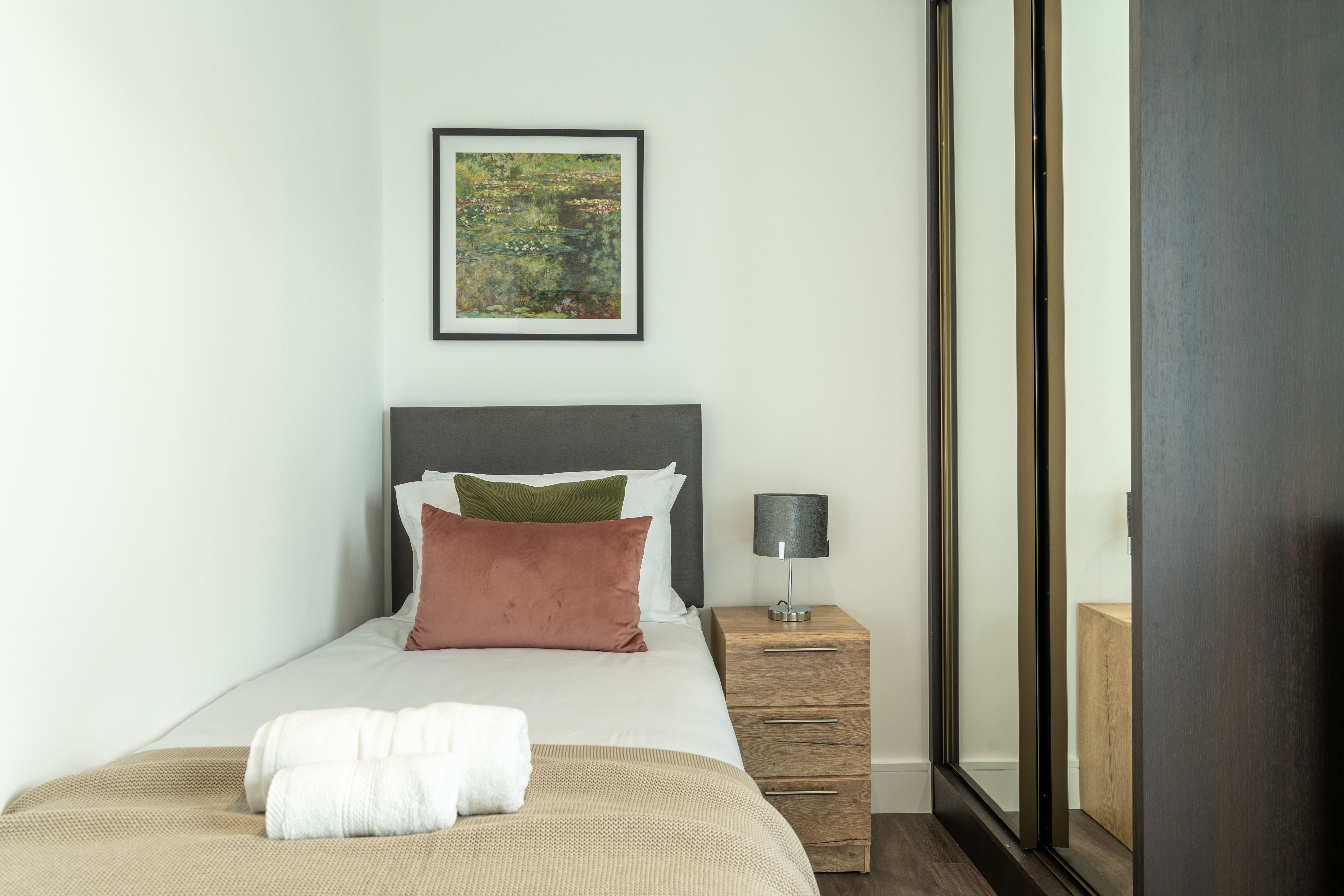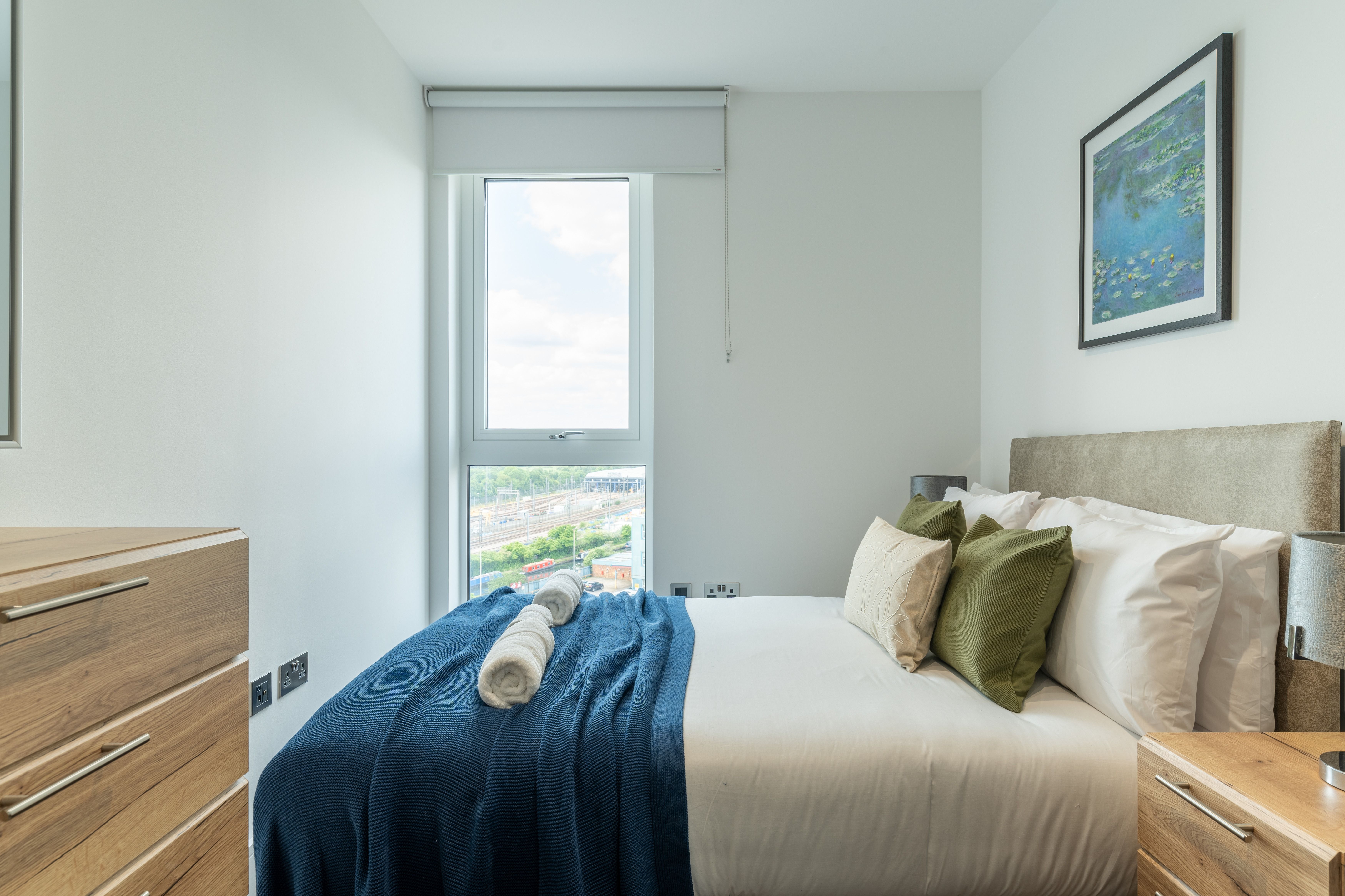 A charming home-from-home, this apartment is a great choice of base in London. It’s in Willesden, a short walk from Willesden Junction Tube station, so you’ll have easy access to the rest of London. We love the Monet-inspired style of this home – you can look forward to a restful vibe and soft tones. The open-plan living area and fully-equipped kitchen are where you’ll spend most of your time, unless you’re sipping coffee on the balcony. Ideal for business or leisure, stays long and short, this attractive space is comfortable and convenient.