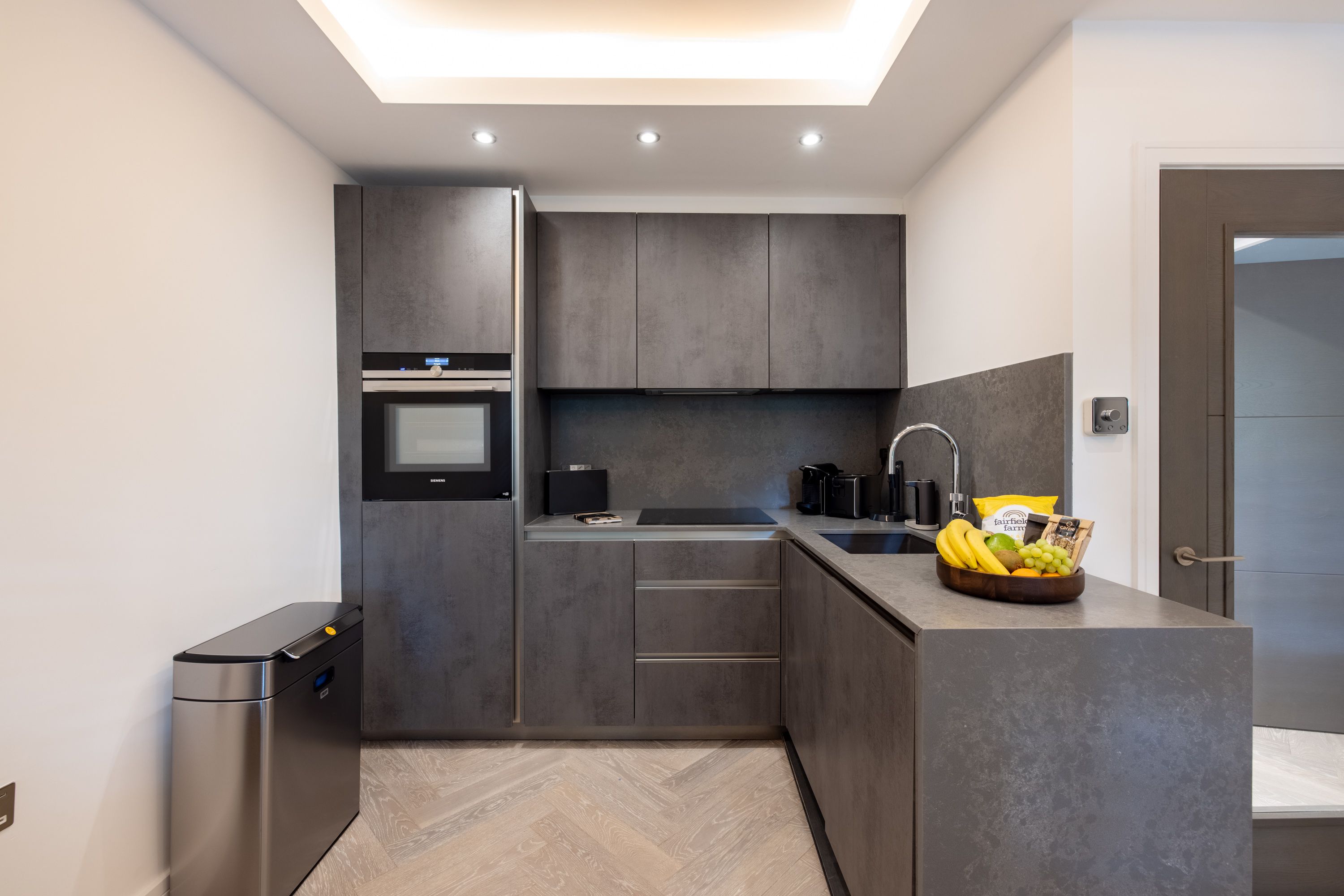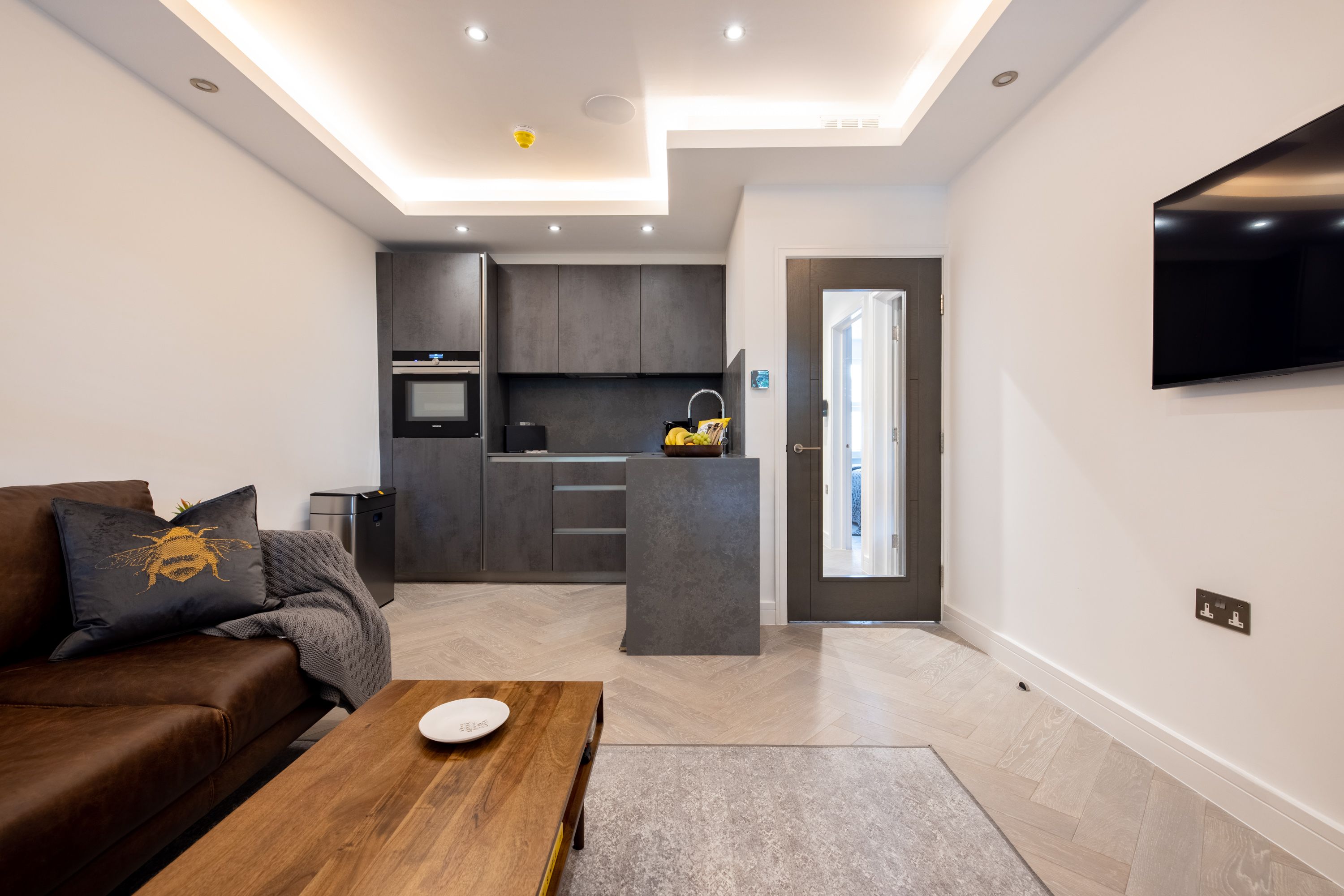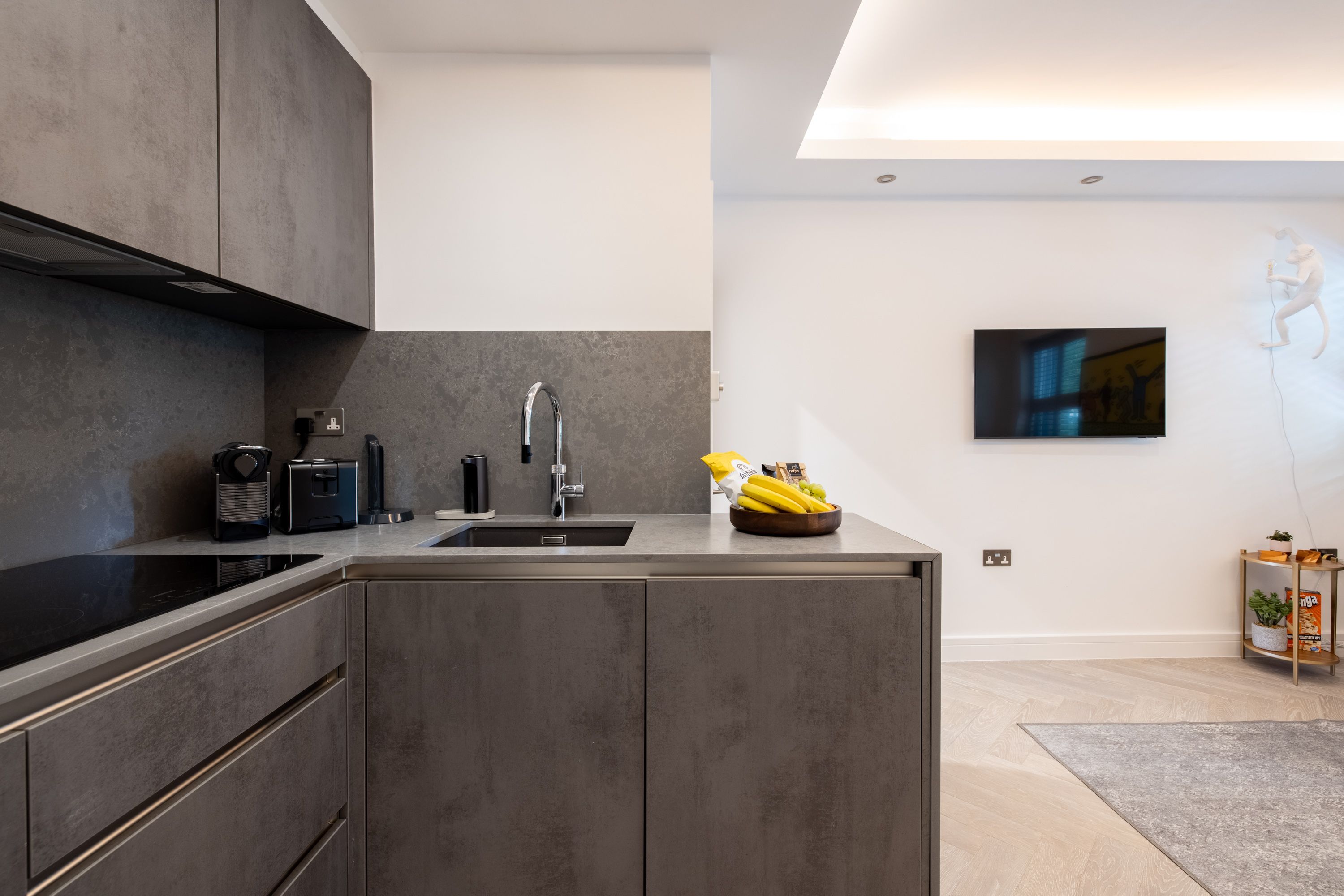 It's no meant feat creating a sanctuary of calm in the middle of a bustling capital city, but this apartment on Brompton Road does just that. Effortlessly chic and ultra-modern, the living space is an appealing and relaxing area to unwind after a day wandering the streets below. A lesson is less, this stylish apartment benefits from minimalist furnishings, abstract adornments and artwork that makes for a playful spot to catch up with friends or look through your new purchases. Speaking of, you're located in London's highbrow shopping epicentre with Harrods a four-minute walk from your doorstep. When – all shopped out – you do return to your new pad, you'll love the sleek black kitchen that will make home-cooking a delight. And if you've got to work while you're here, enjoy working-break strolls through leafy Hyde Park – an eight-minute walk away. Come evening, Knightsbridge tube station – four minutes from the apartment – is your gateway to everything the big smoke has to offer.