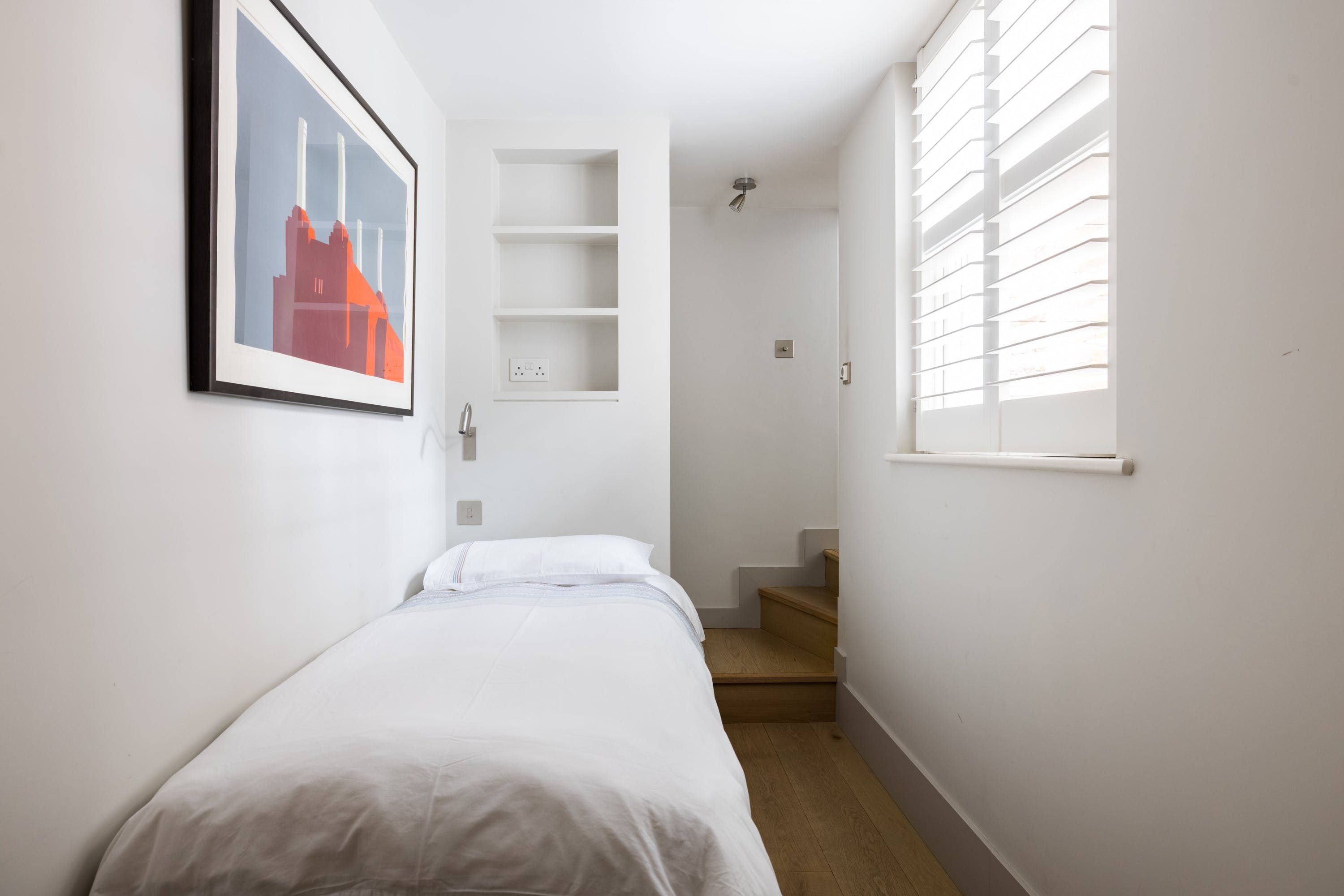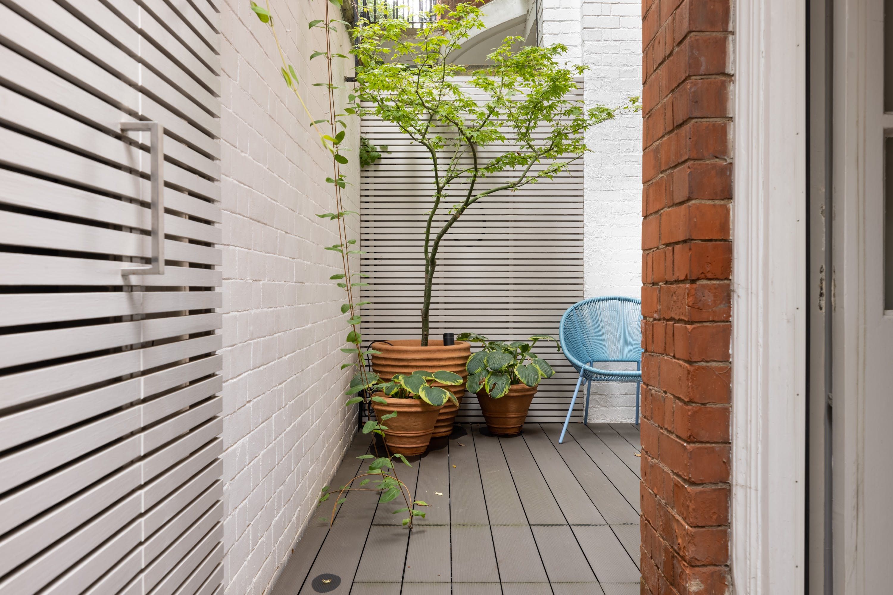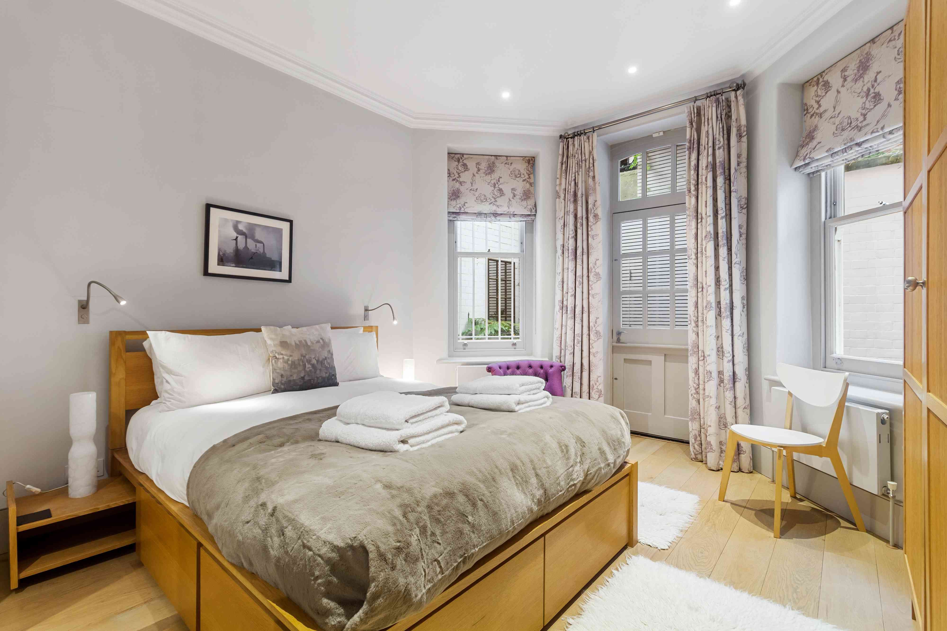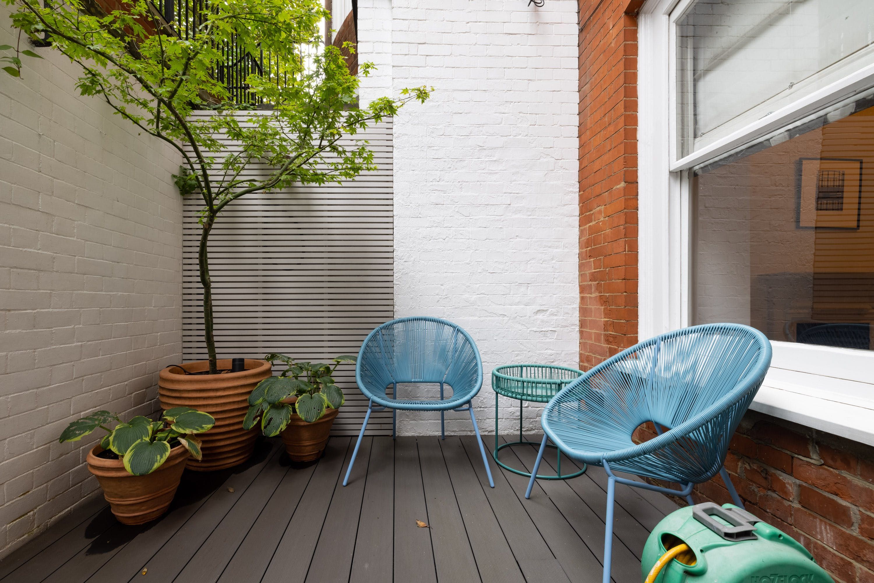 This plush city bolthole sits in one of London’s most sought-after neighbourhoods. You’re right next to the boutiques and trendy cocktail bars of Chelsea and the luxury shops of Sloane Street are five minutes away on foot. At Sloane Square, a three-minute walk, you’ll find a tube station that can whisk you to all corners of the city in minutes. The apartment itself retains its charming Georgian sash windows and original fireplaces. Apart from that, it’s all sleek modernism with vibrant contemporary art on the walls and a striking quartz breakfast bar in the kitchen. Each piece of furniture, coffee table book and faux fur throw feels like it’s been hand-picked and carefully considered. The secret bonus is a little outdoor terrace, which catches the sun in the morning – a real boon this close to the city centre.