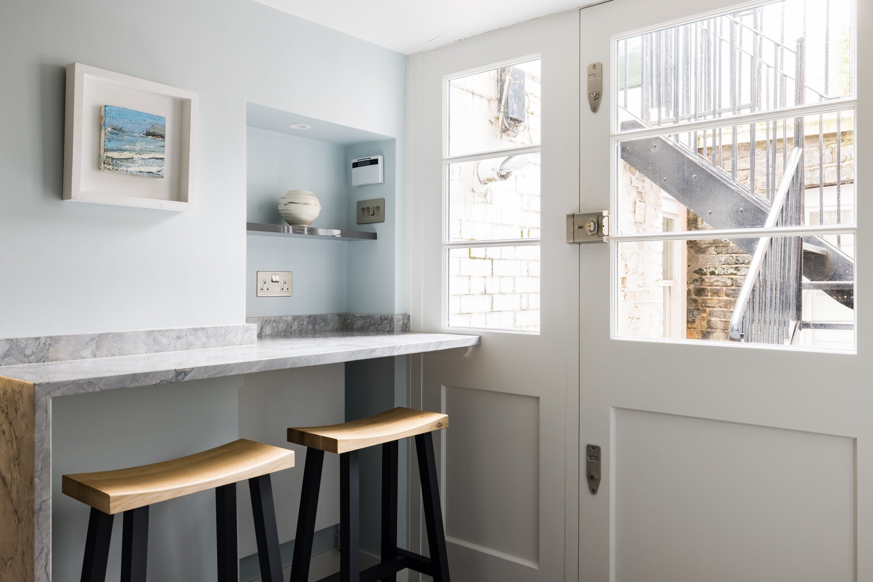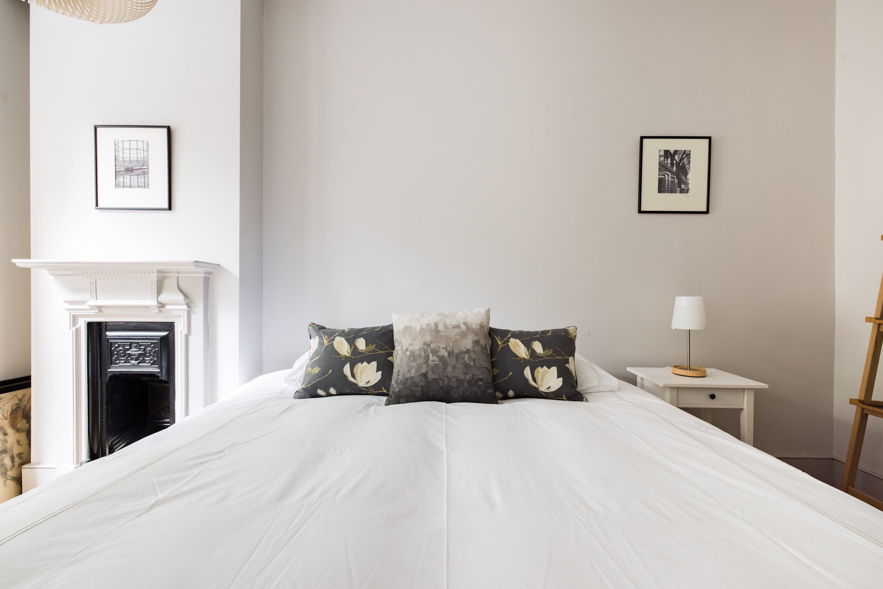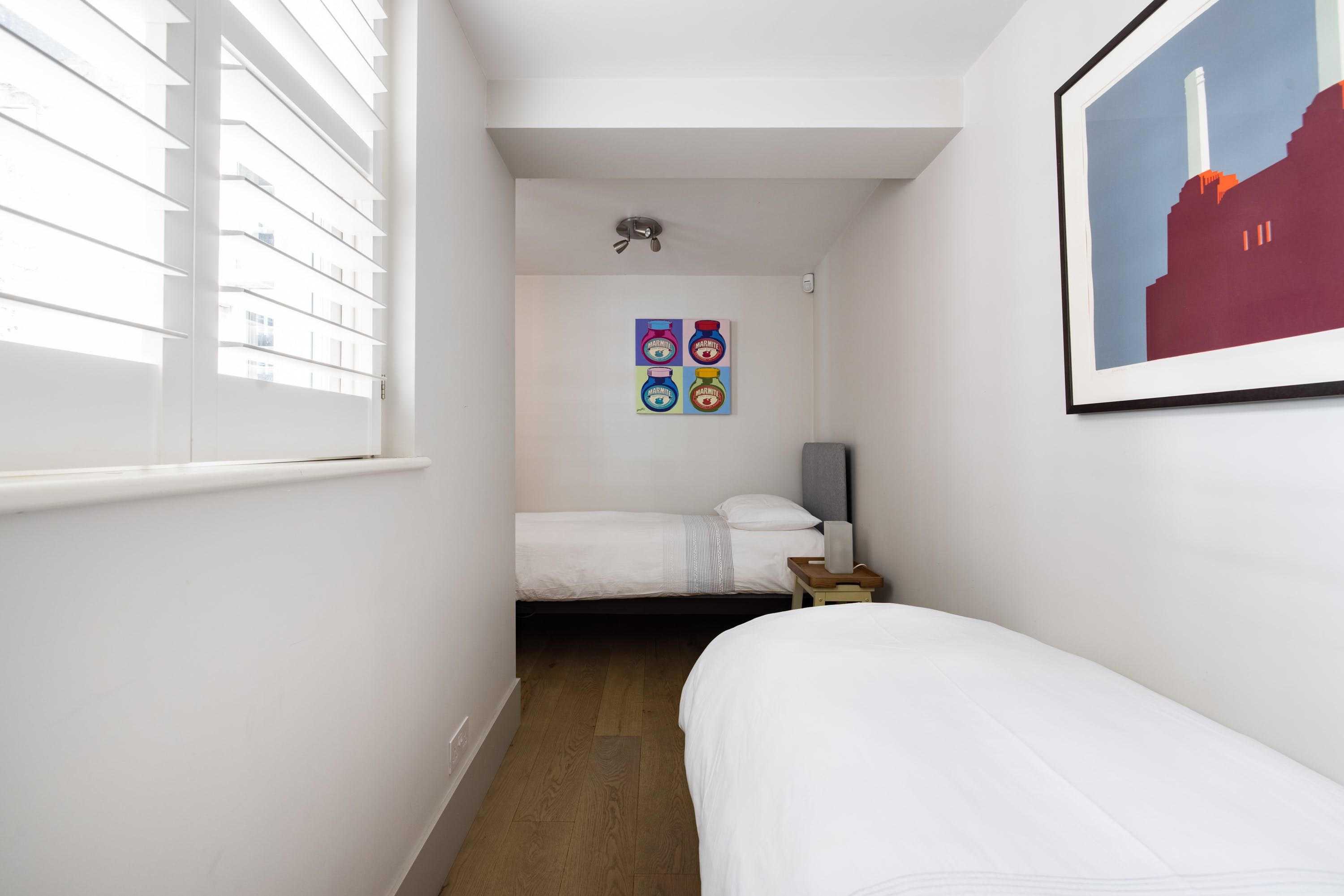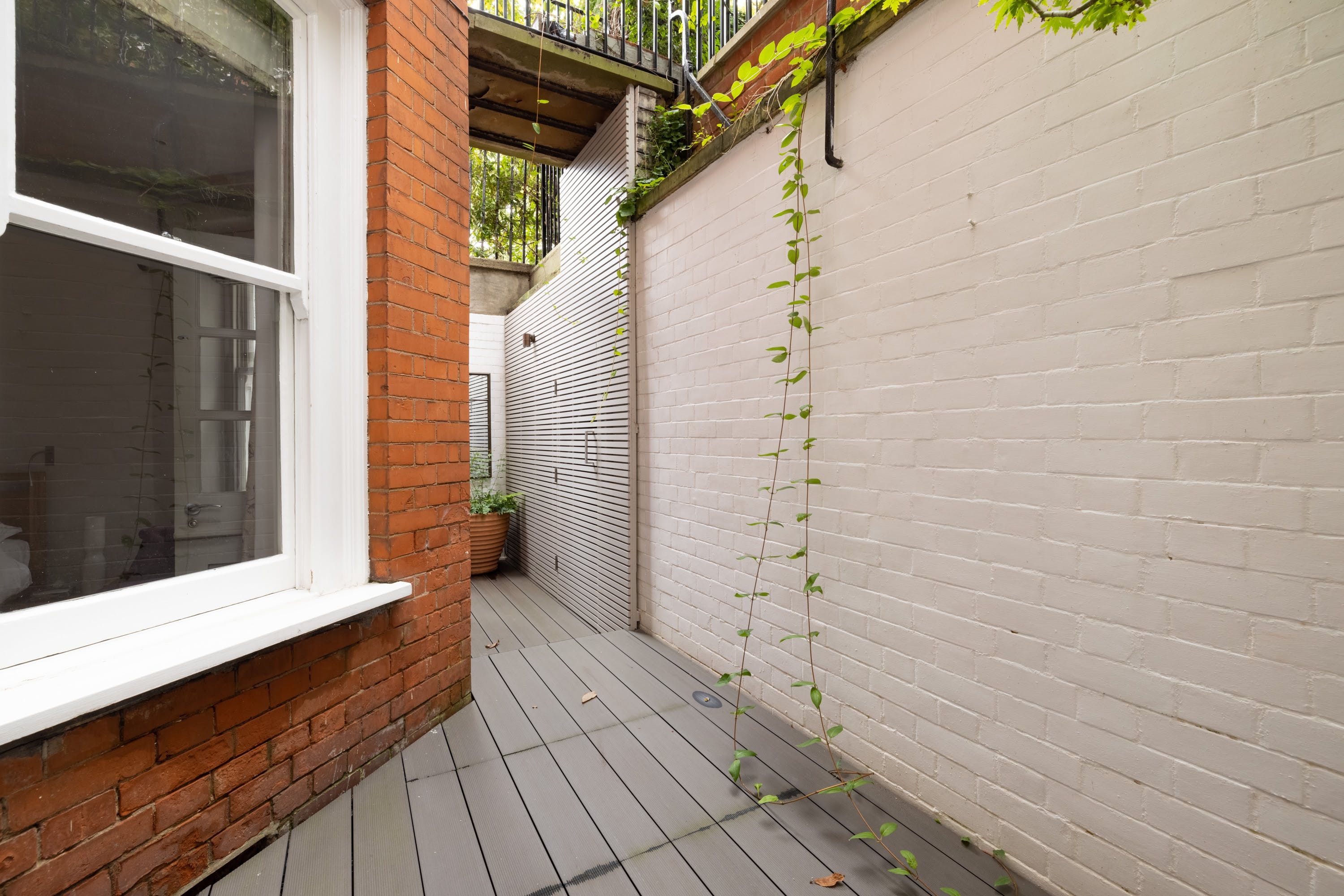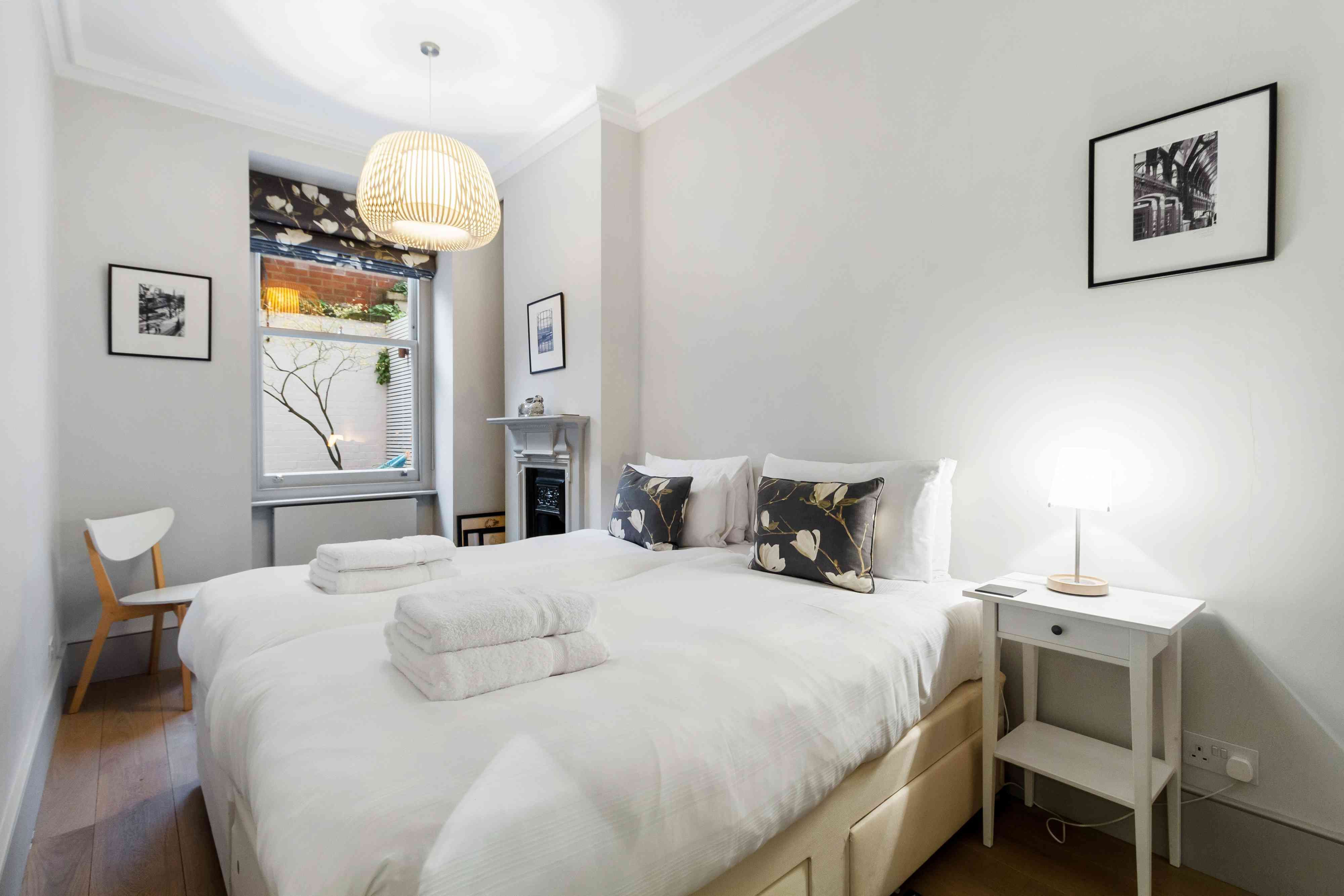 This plush city bolthole sits in one of London’s most sought-after neighbourhoods. You’re right next to the boutiques and trendy cocktail bars of Chelsea and the luxury shops of Sloane Street are five minutes away on foot. At Sloane Square, a three-minute walk, you’ll find a tube station that can whisk you to all corners of the city in minutes. The apartment itself retains its charming Georgian sash windows and original fireplaces. Apart from that, it’s all sleek modernism with vibrant contemporary art on the walls and a striking quartz breakfast bar in the kitchen. Each piece of furniture, coffee table book and faux fur throw feels like it’s been hand-picked and carefully considered. The secret bonus is a little outdoor terrace, which catches the sun in the morning – a real boon this close to the city centre.