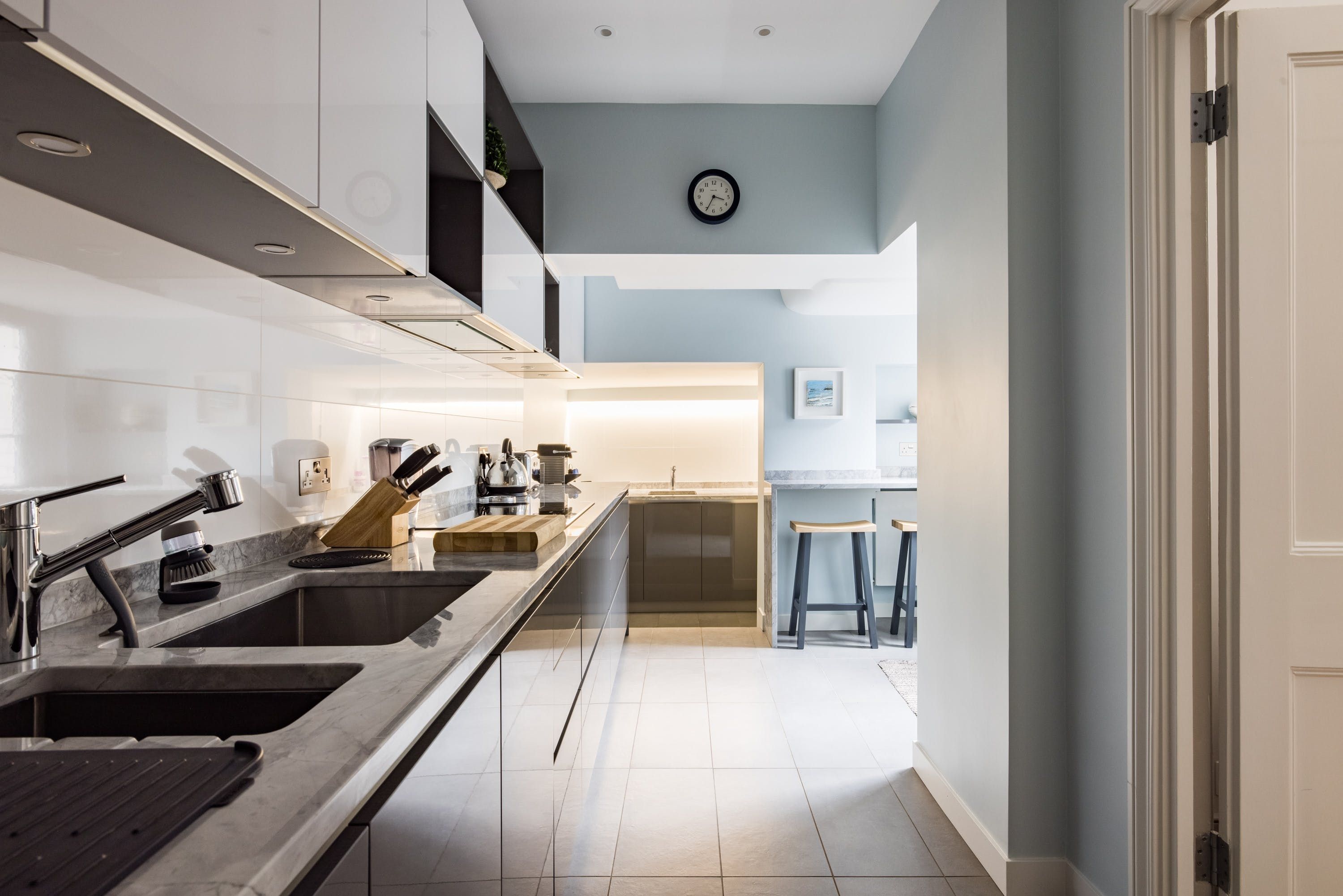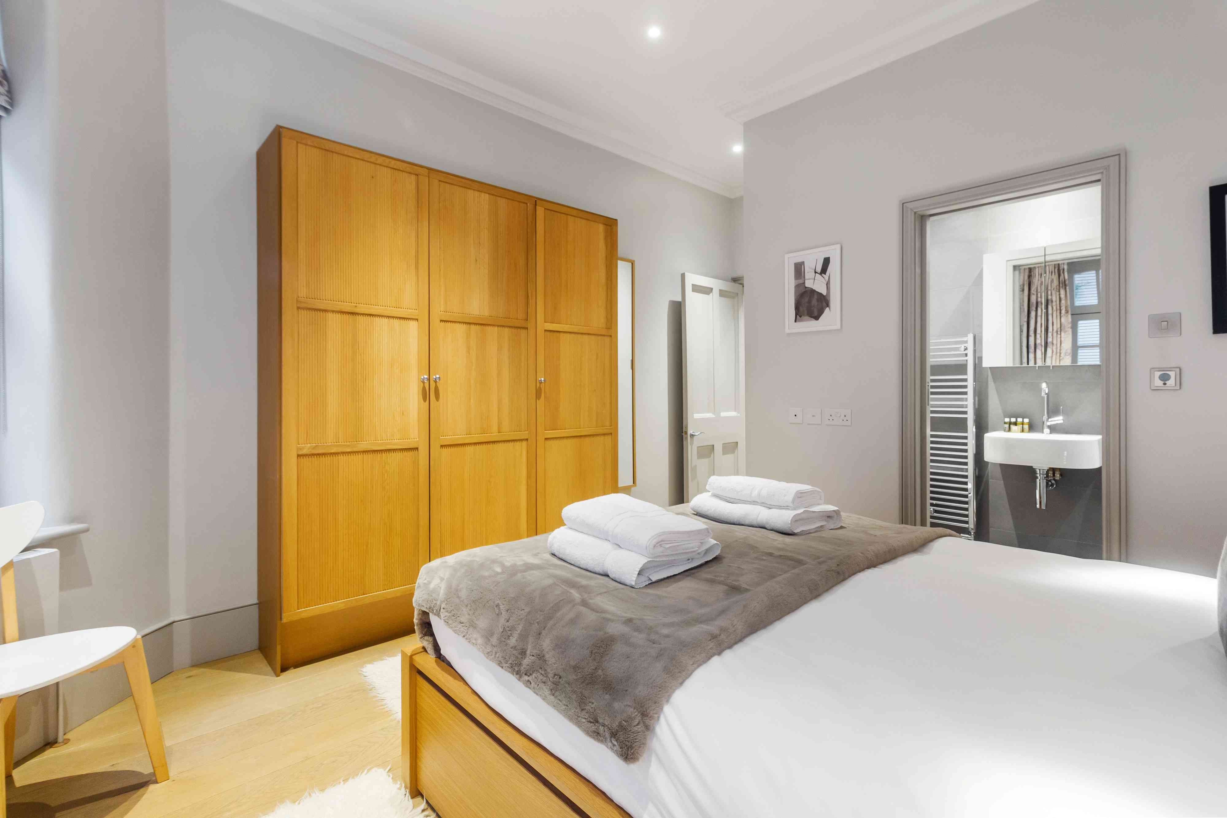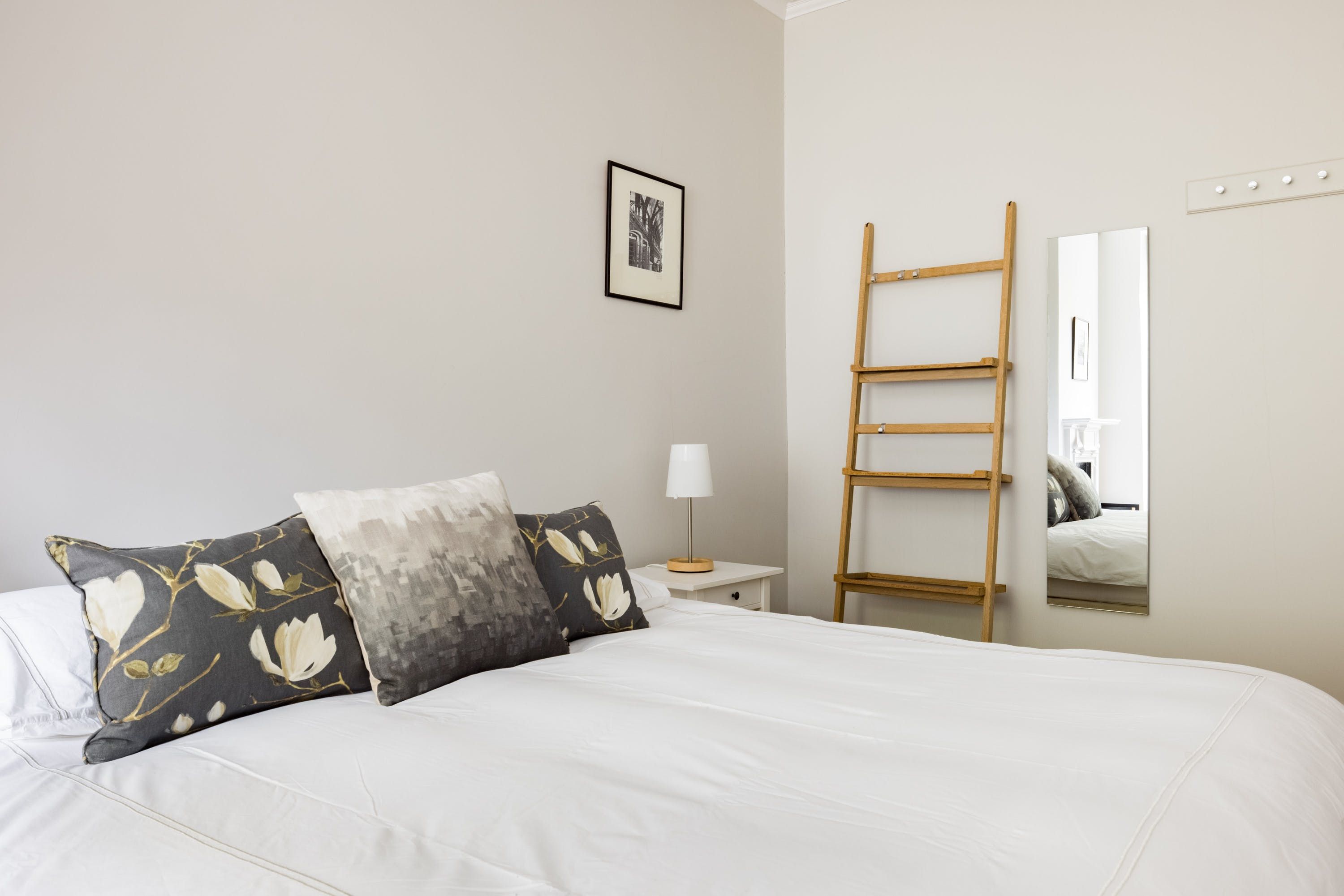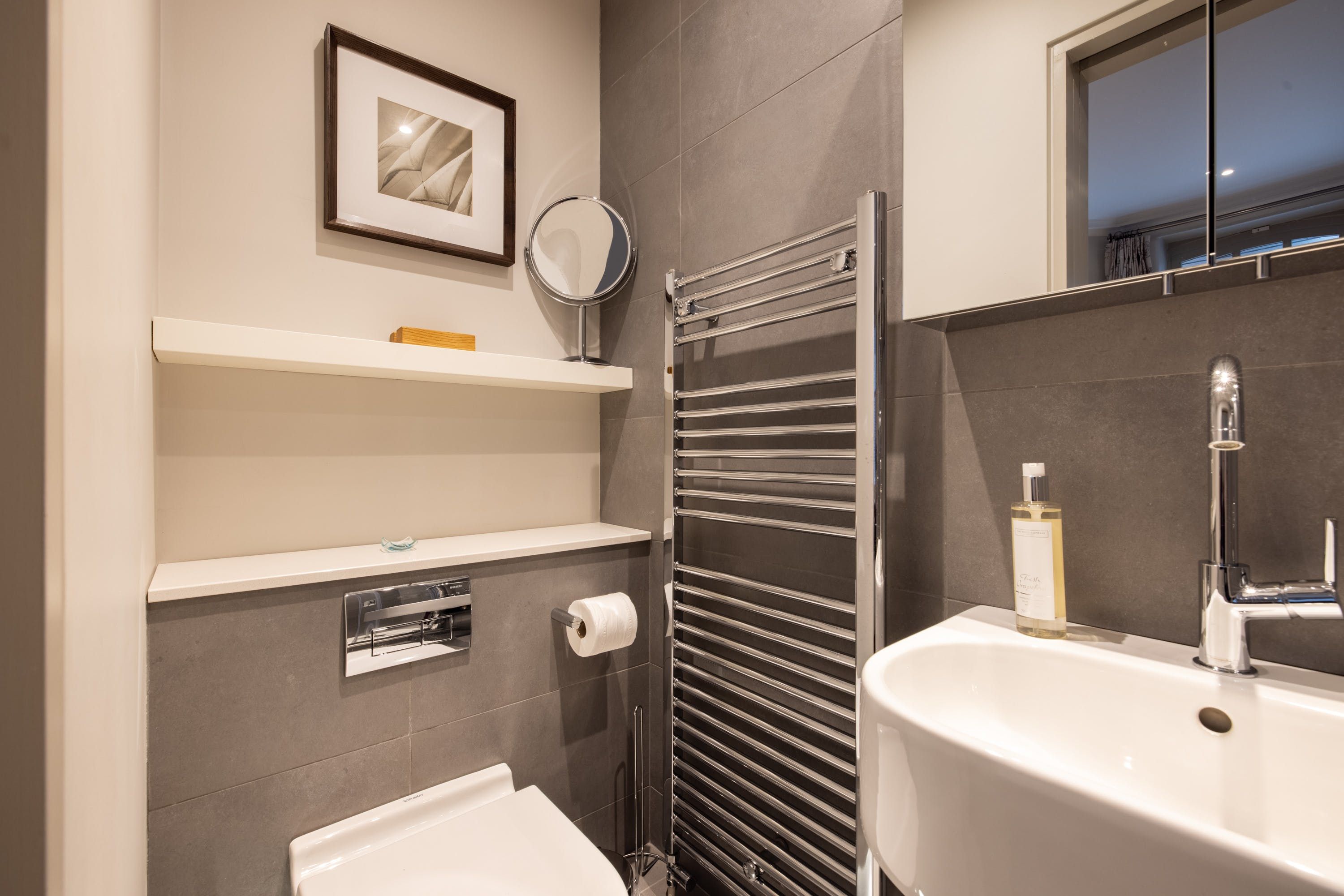 This plush city bolthole sits in one of London’s most sought-after neighbourhoods. You’re right next to the boutiques and trendy cocktail bars of Chelsea and the luxury shops of Sloane Street are five minutes away on foot. At Sloane Square, a three-minute walk, you’ll find a tube station that can whisk you to all corners of the city in minutes. The apartment itself retains its charming Georgian sash windows and original fireplaces. Apart from that, it’s all sleek modernism with vibrant contemporary art on the walls and a striking quartz breakfast bar in the kitchen. Each piece of furniture, coffee table book and faux fur throw feels like it’s been hand-picked and carefully considered. The secret bonus is a little outdoor terrace, which catches the sun in the morning – a real boon this close to the city centre.