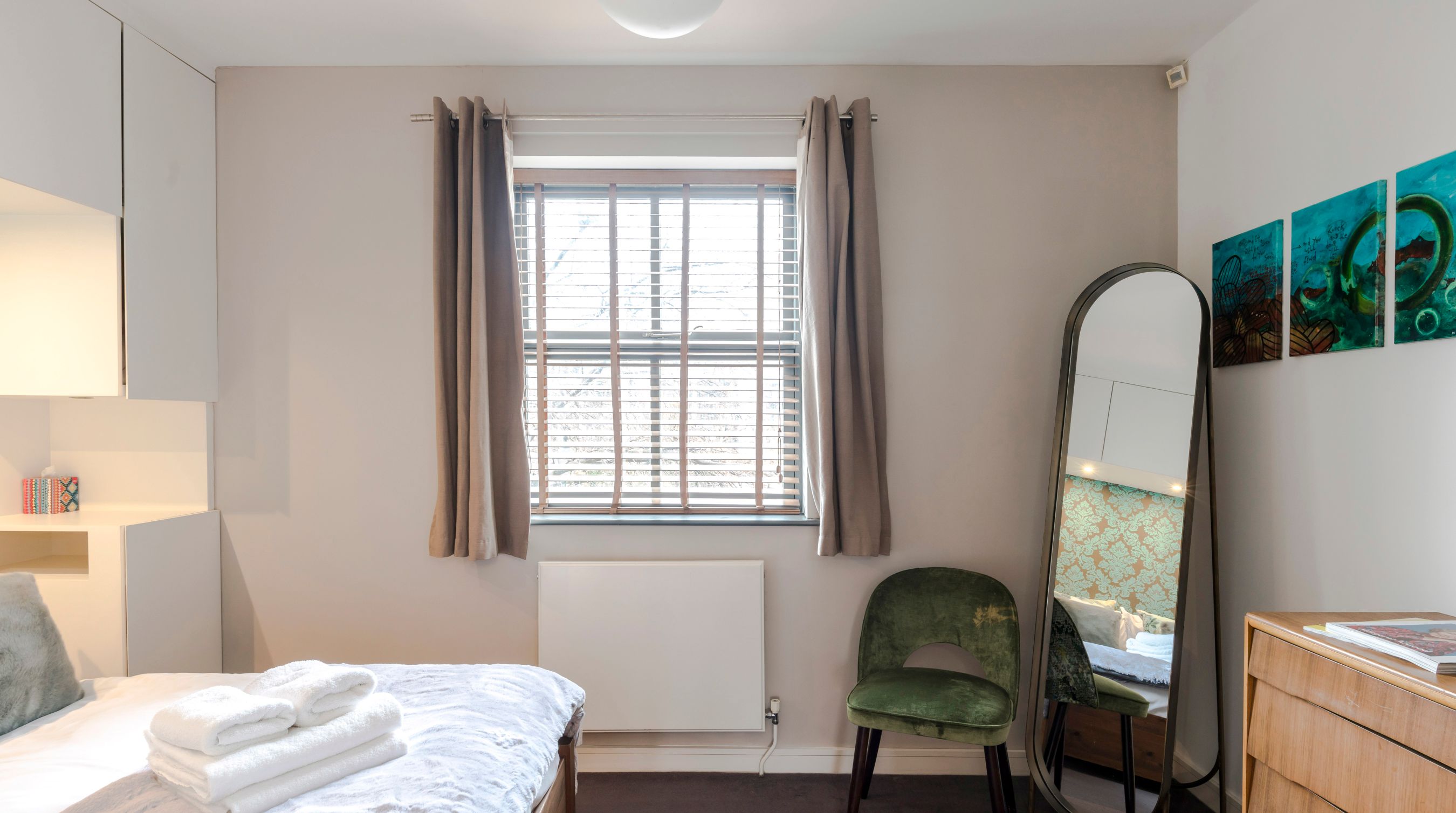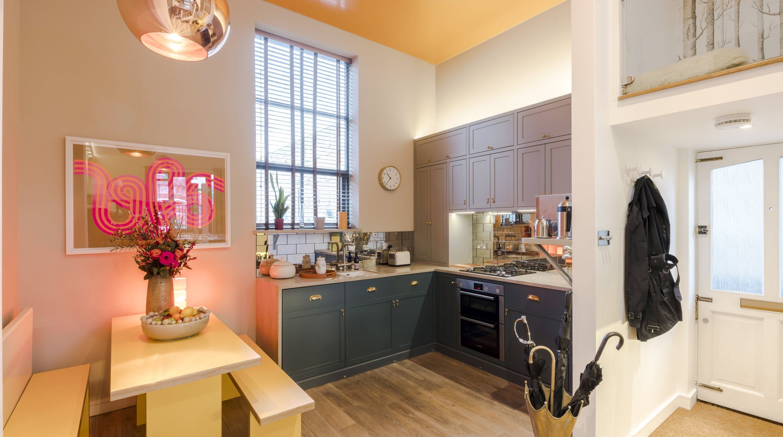 With its eclectic interiors, impressive views and central location, this apartment appeals on so many fronts. Starting outside, you'll find yourself in the epicentre of London's iconic sights, with a bevvy of quintessential pubs and high-end restaurants around you, we'd be spoilt for choice come dinner time. For daytime touristy trips, take just a ten-minute walk to Tower Bridge and be at St. Paul's Cathedral in eighteen minutes by tube. With so much to see and do, you'll need a cosy place to retreat to after wandering the city. Fortunately, we really love the modern playfulness and vibrancy of this industrial-chic apartment. Stepping in to look around the decor, you'll notice colourful wallpapers, neon lights and tasteful adornments – it's clear your host has a keen eye for detail. Reflecting the area's industrial edge, the living space is cleverly designed across two levels with sleek glass bannisters, light wood and high ceilings. If you're working from home during your stay, we could think of no better place for powering through than the super-stylish and clutter-free office space. Those after a gentler start will find the cosy corner to be perfectly suited for morning coffee and catching up on literature. Last but not least, the home boasts an incredible view of The Shard that's too good to miss.
