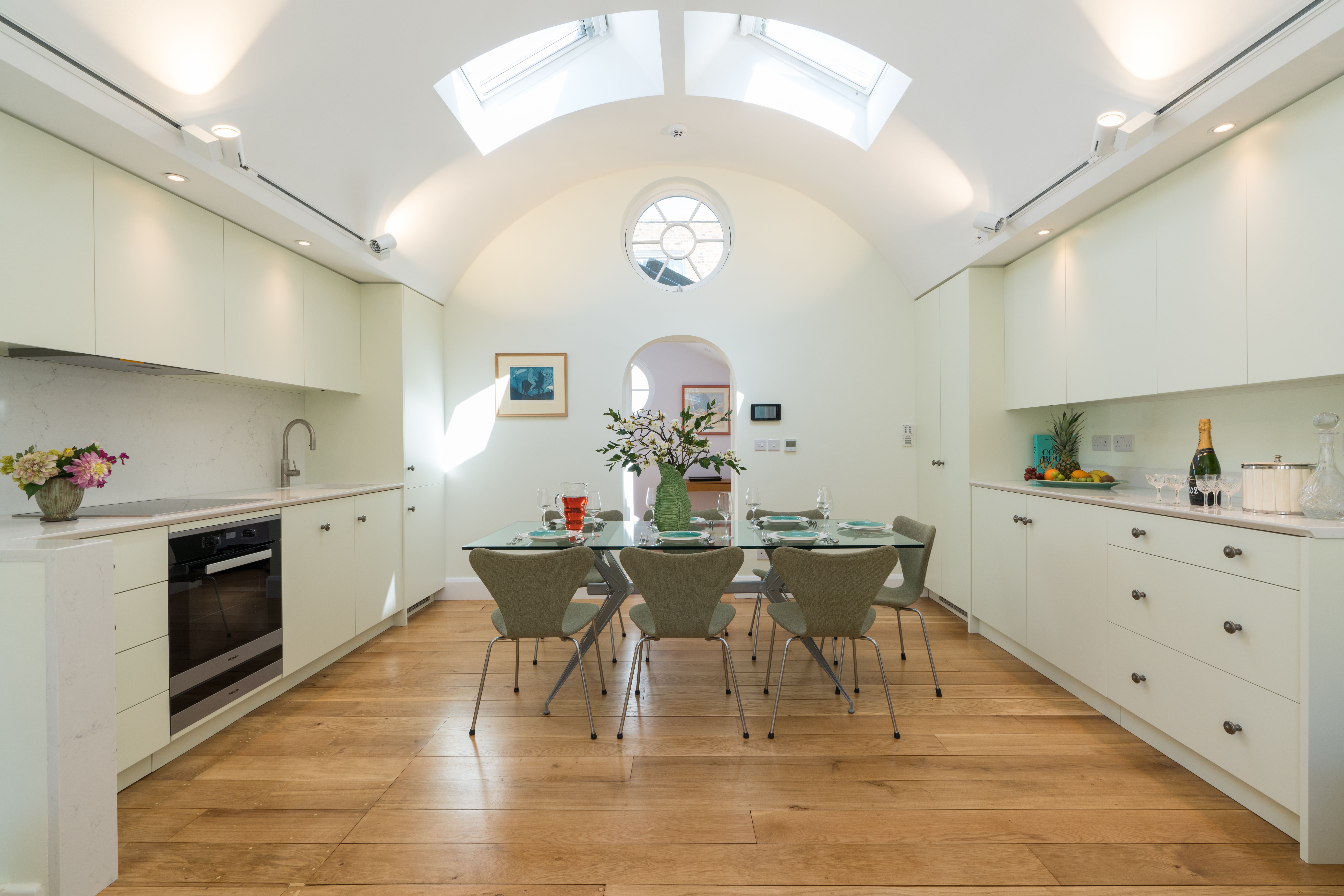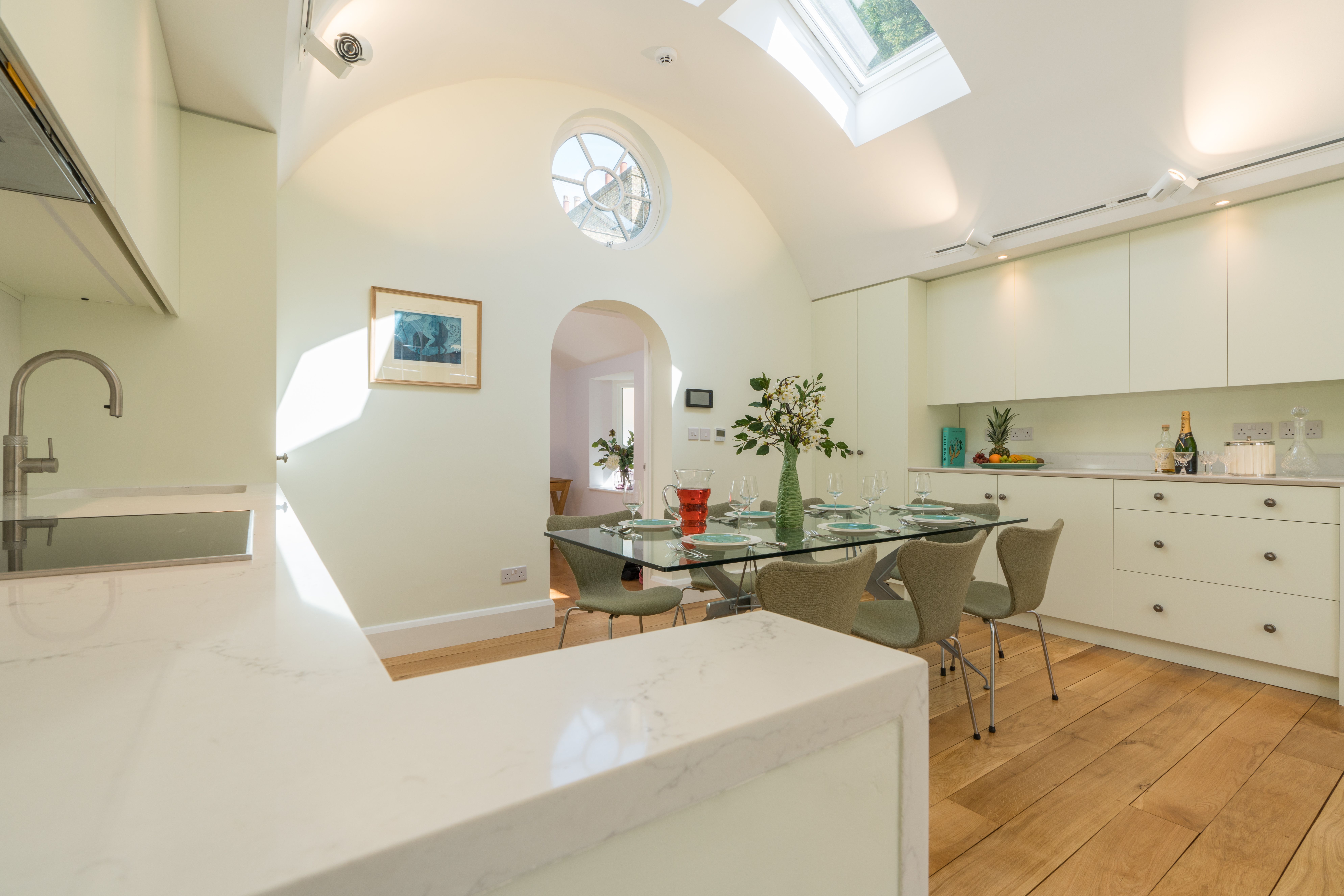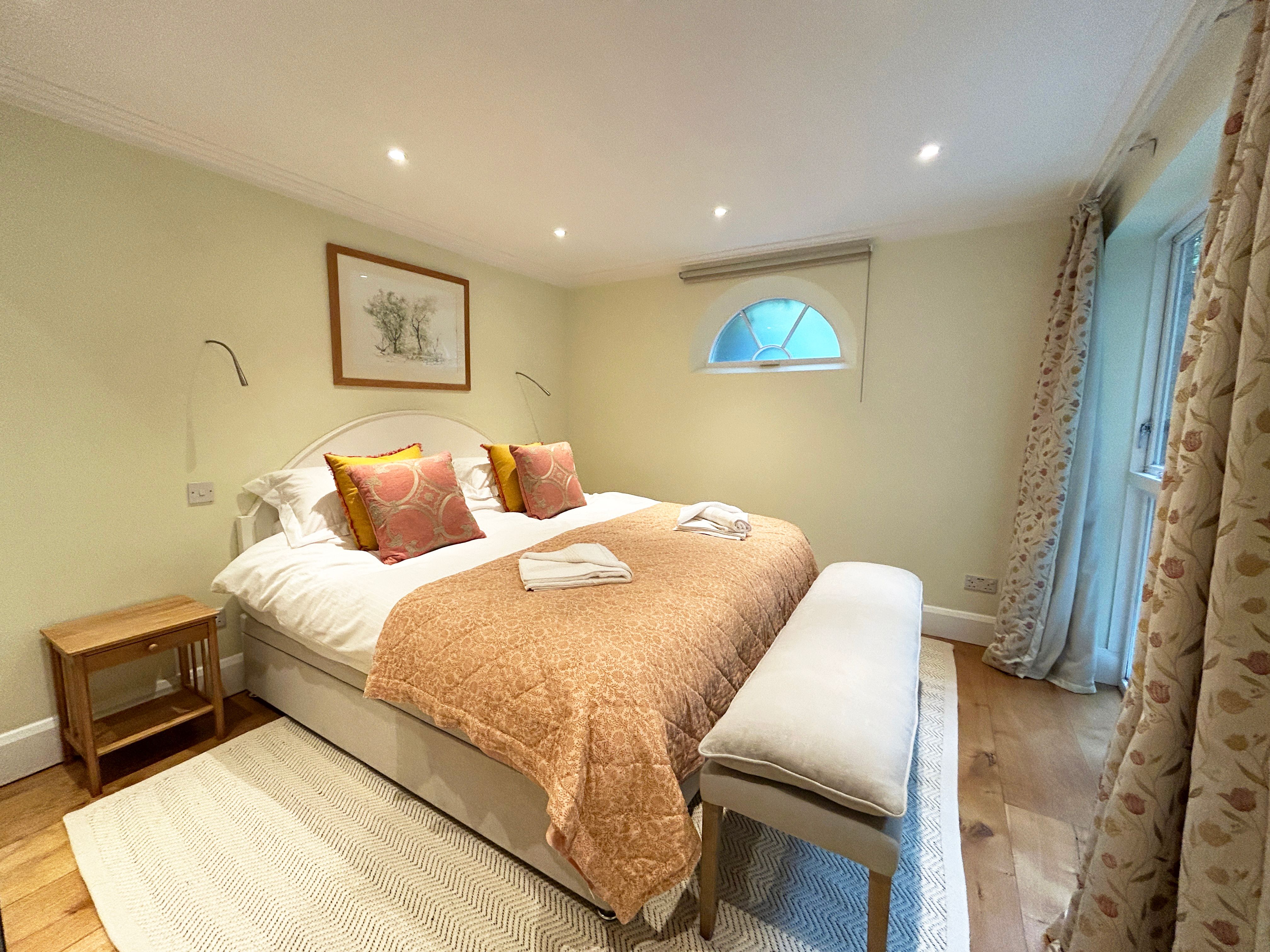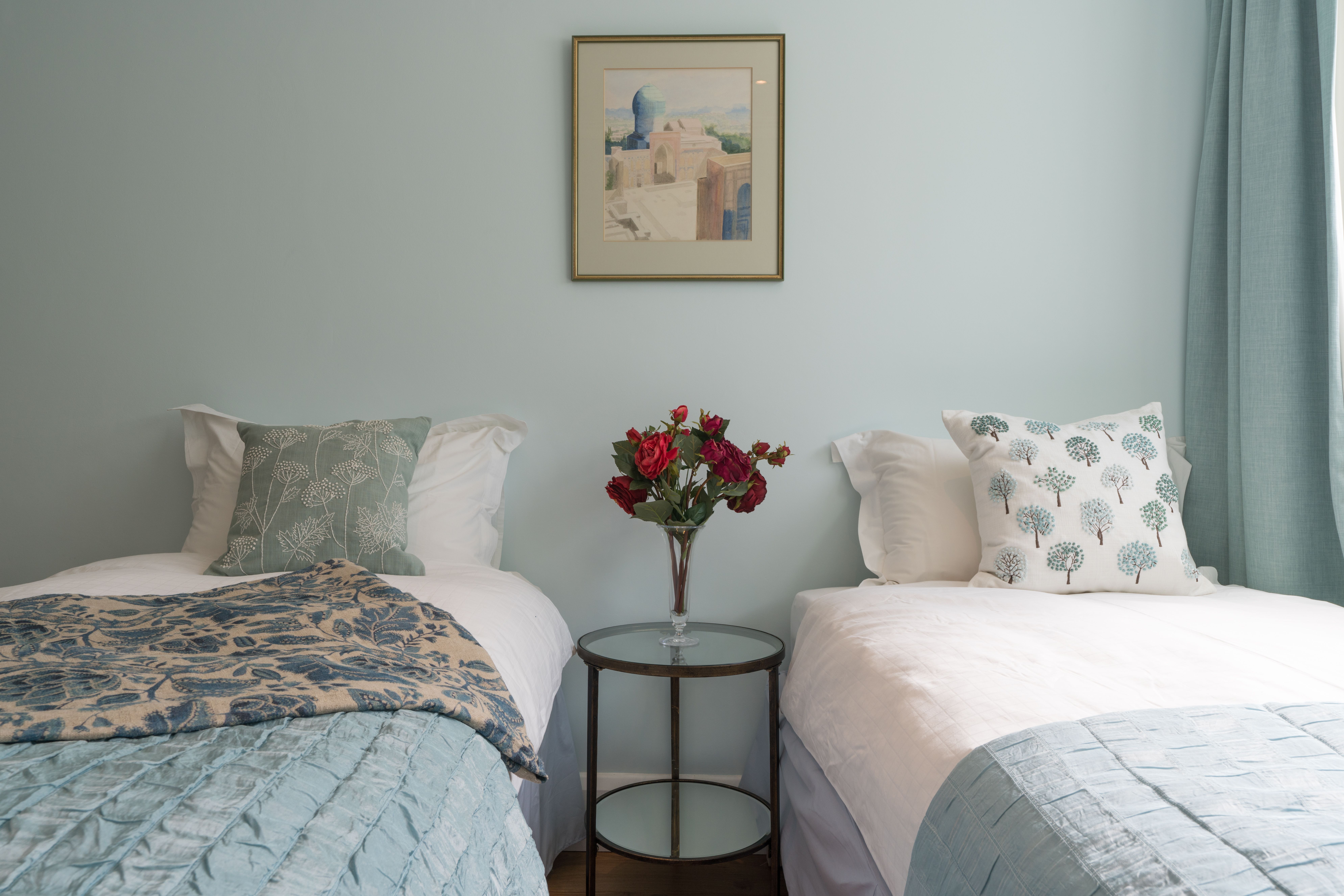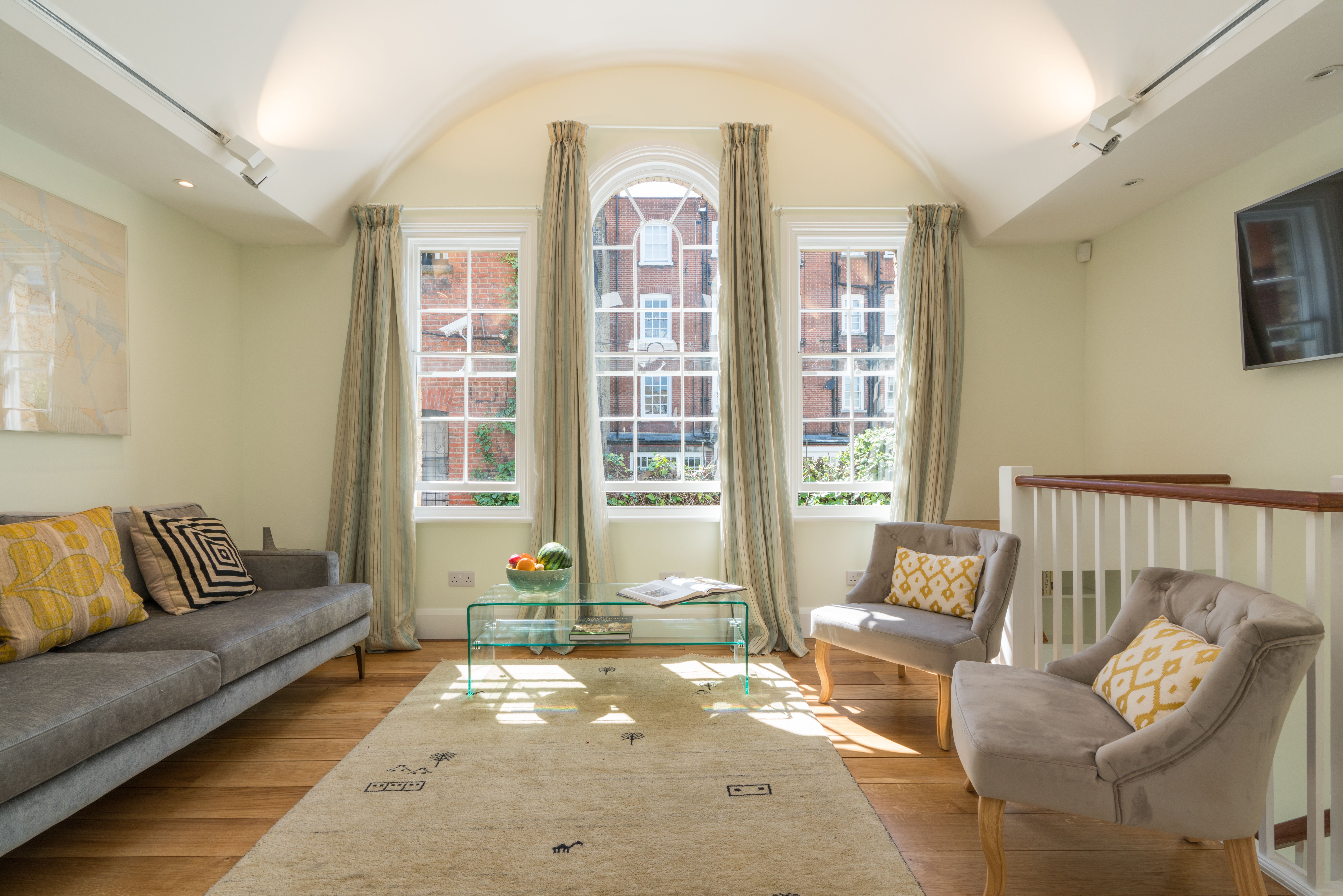 You'll find this home in a quiet residential mews on the border of Notting Hill and Bayswater. It’s wonderfully located in a peaceful spot close to the designer shops of Westbourne Grove and the Portobello Road antiques market. Kensington Gardens and Hyde Park are just at the end of the road. The house is bright and comfortable, with an open-plan living and dining space with vaulted ceilings and tall windows. Bedroom one opens to a petite patio, and bedroom two has a small desk for those working remotely during their stay.