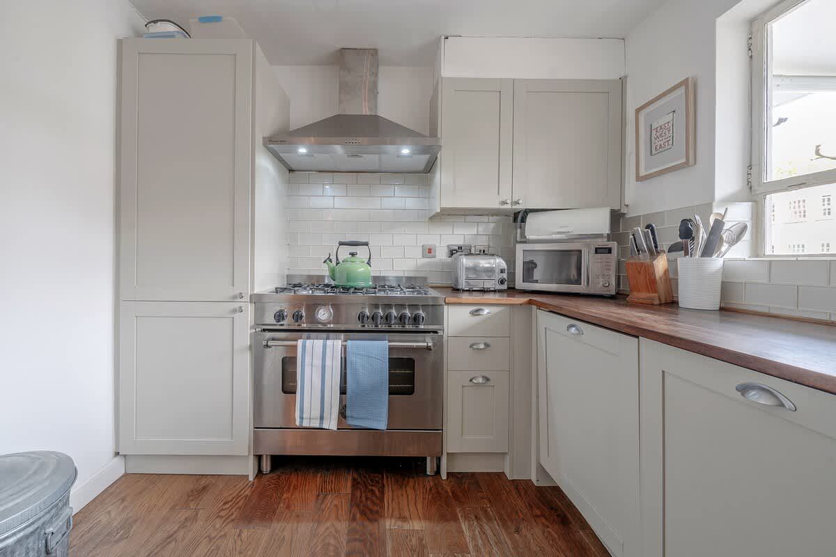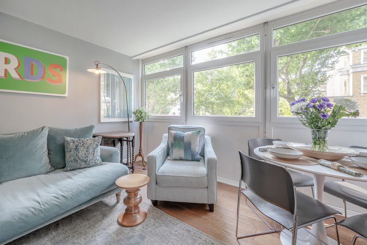 Mere minutes away from a tube station and right in the heart of one of London’s most coveted postcodes, this two-bedroom apartment is the ideal spot for a quiet getaway in leafy Notting Hill. Its hardwood floors, wide windows and cosy furnishings make it a hit for those seeking comfort, as do the two plush double beds. But the real magic is in the location – to the west, you can shop to your heart’s content at Westfield London, one of Europe’s largest shopping centres, and to the east lies Kensington Gardens and its eponymous Palace, a great spot for sightseeing and casual strolls.