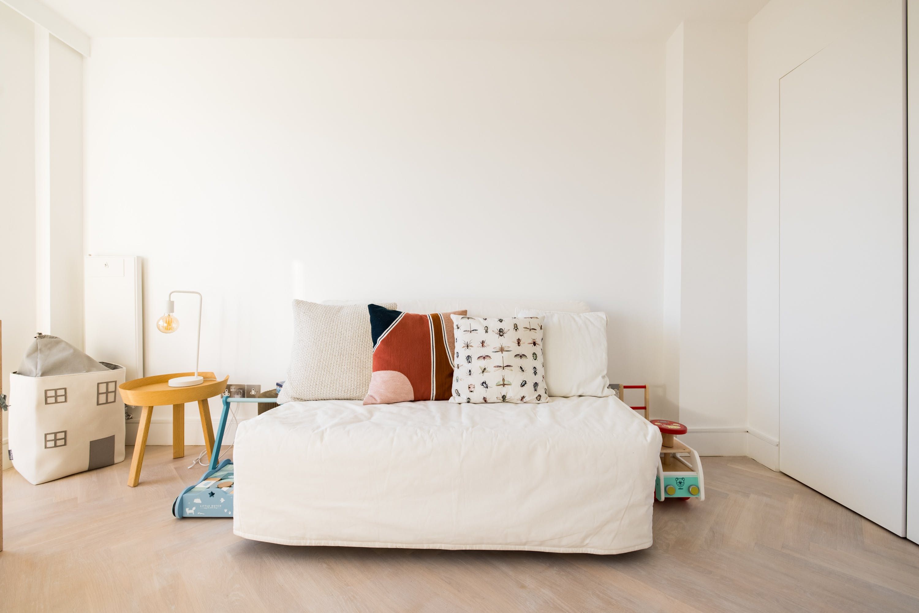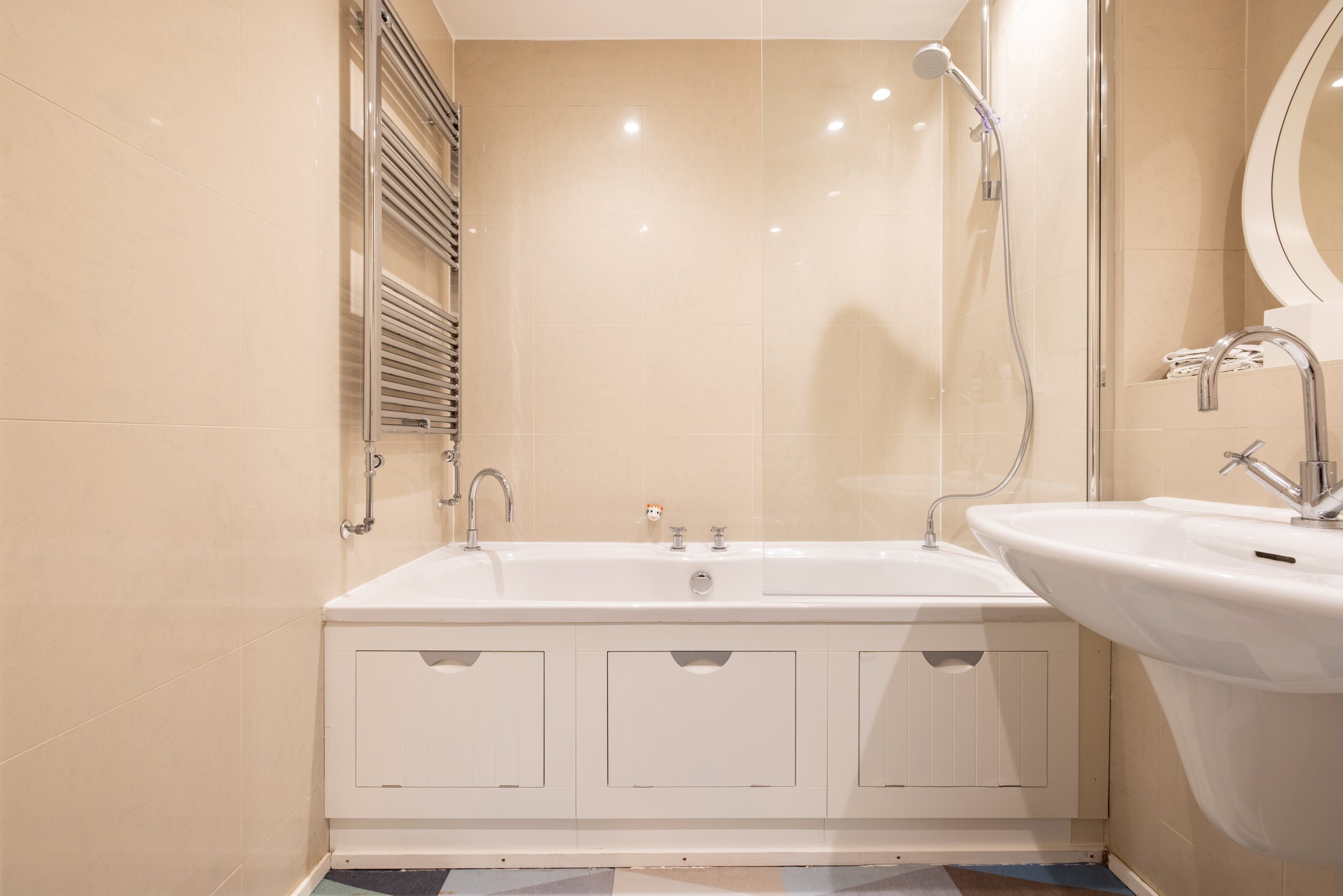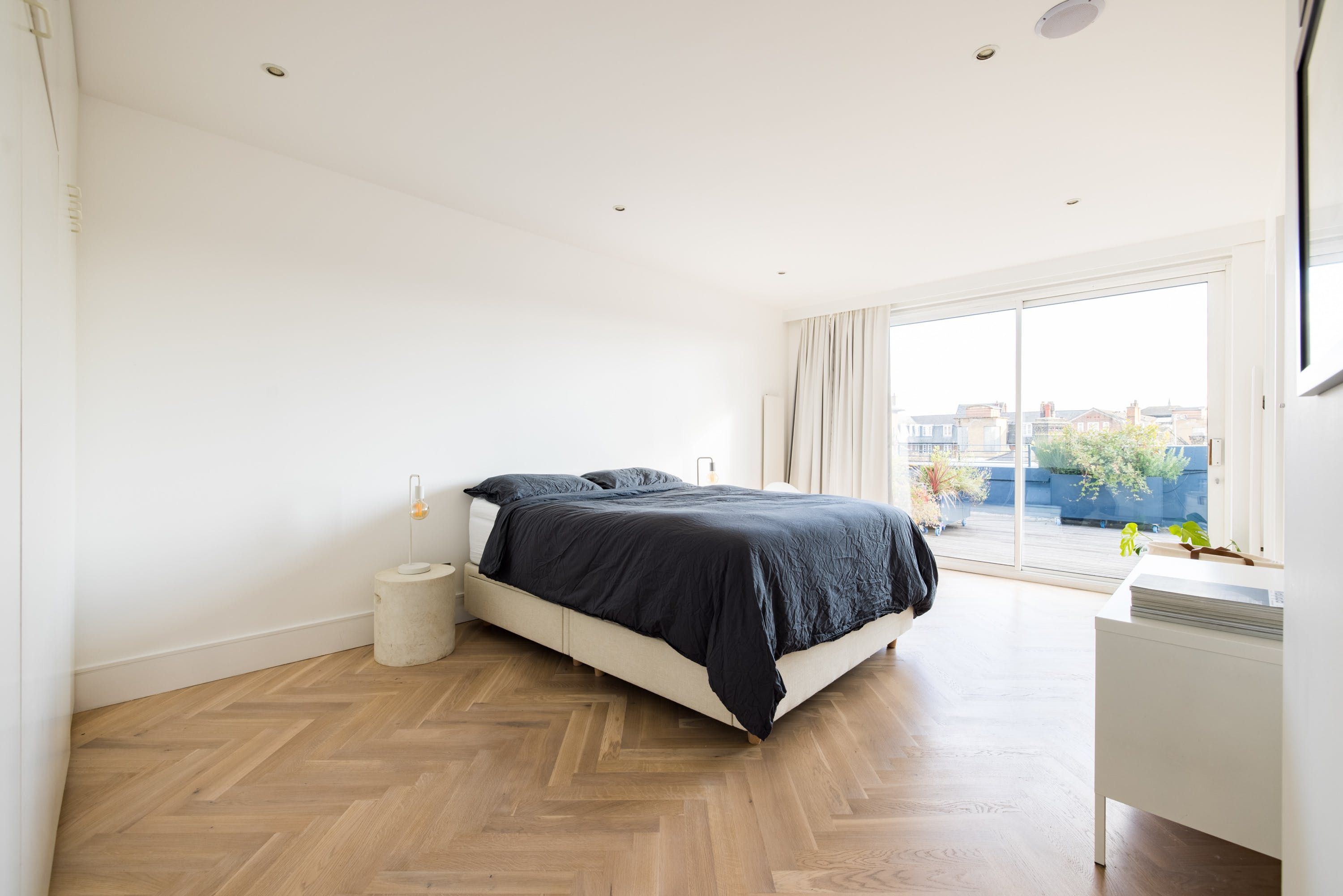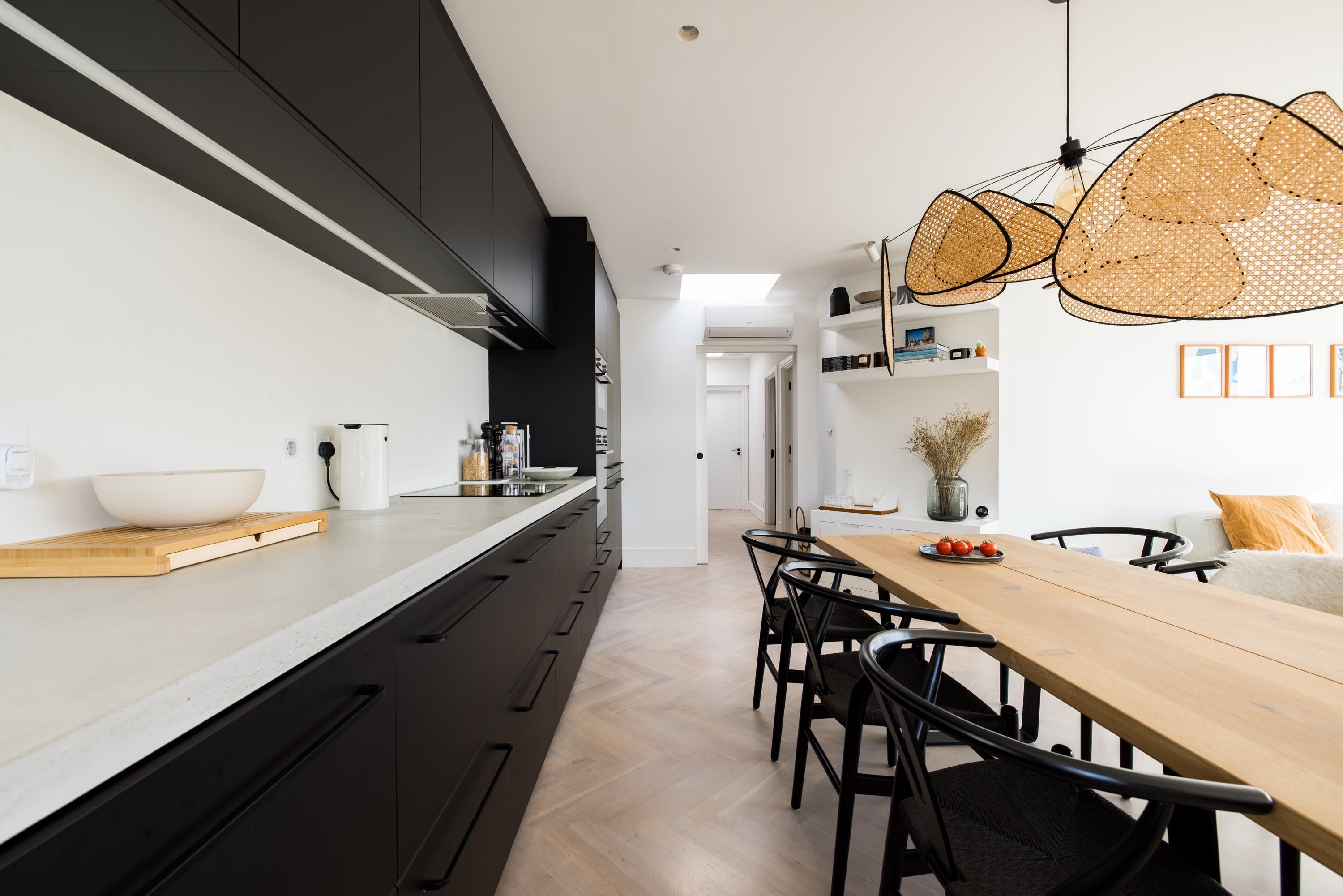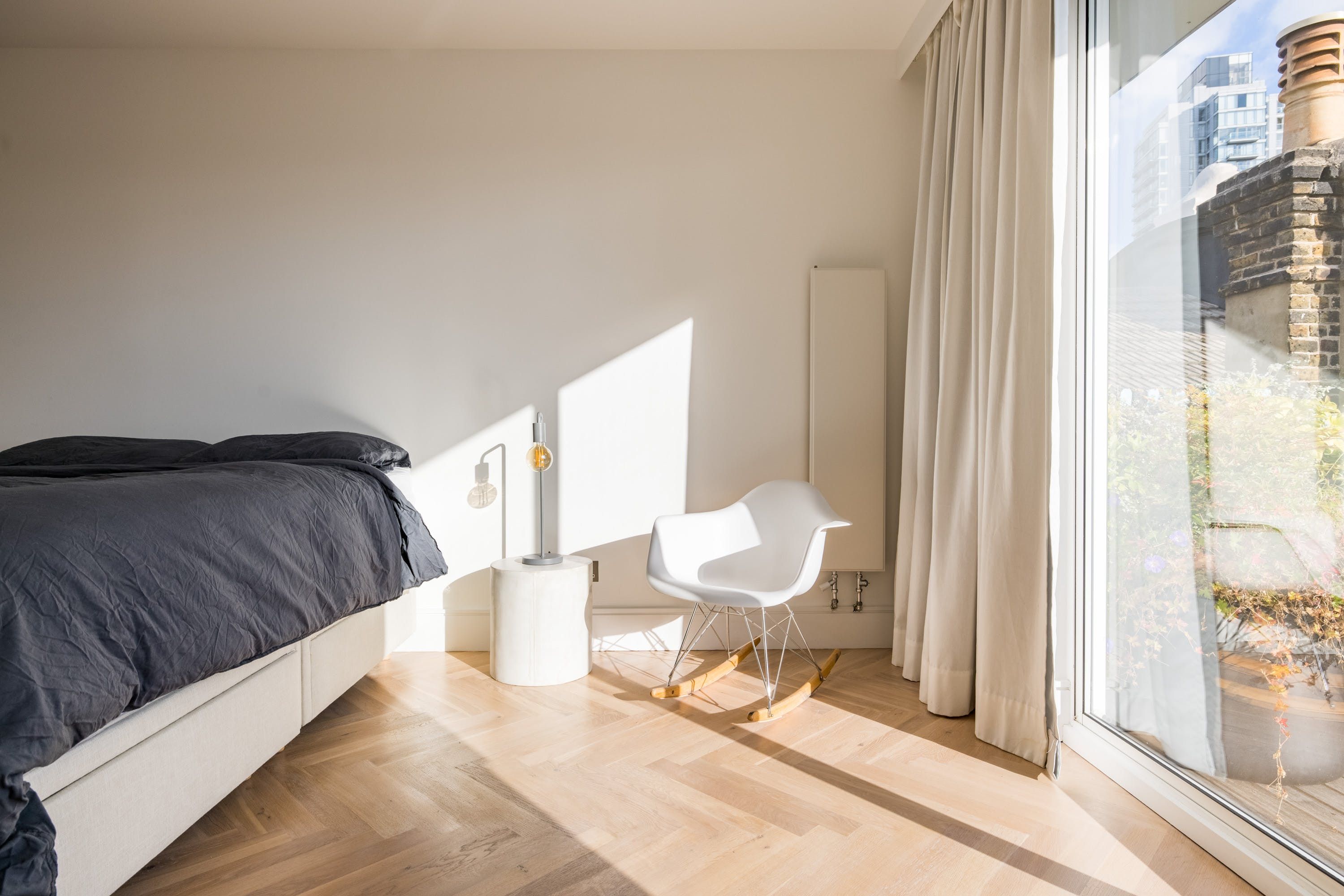 A chic home in a tucked-away London location, this stylish Deptford pad boasts a spacious decked terrace and a modern interior with lots of soothing beige and brown tones. Light pours in through the sliding glass doors that extends the living space out to the beautiful rooftop deck, for added luxury and comfort. Whether you're inside or outside, it's clear that the owners have an eye for design and detail. On chillier evenings, line up the projector overhead, knock up a few light bites in the modern black kitchen and enjoy a cosy movie night snuggled up on the cream sofa. From the pale parquet floors to the sleek nude surfaces, this home is a real cool customer. And while we love the aesthetic here, it's also a homely spot too, with a bedroom set up especially for kids. In fact, for a young family after a city-based bolthole that's near to the big sights, but removed from the intense crowds and clamouring tourists, this trendy apartment is perfectly suited. You're an eight minute train ride from New Cross to London Bridge, fifteen minutes to Shoreditch, and twenty-two minutes to the South Bank, full of hip bars and restaurants along the waterfront, and one stop on the DLR to the Cutty Sark, National Maritime Museum, and Greenwich Park where you can catch a boat into central London.