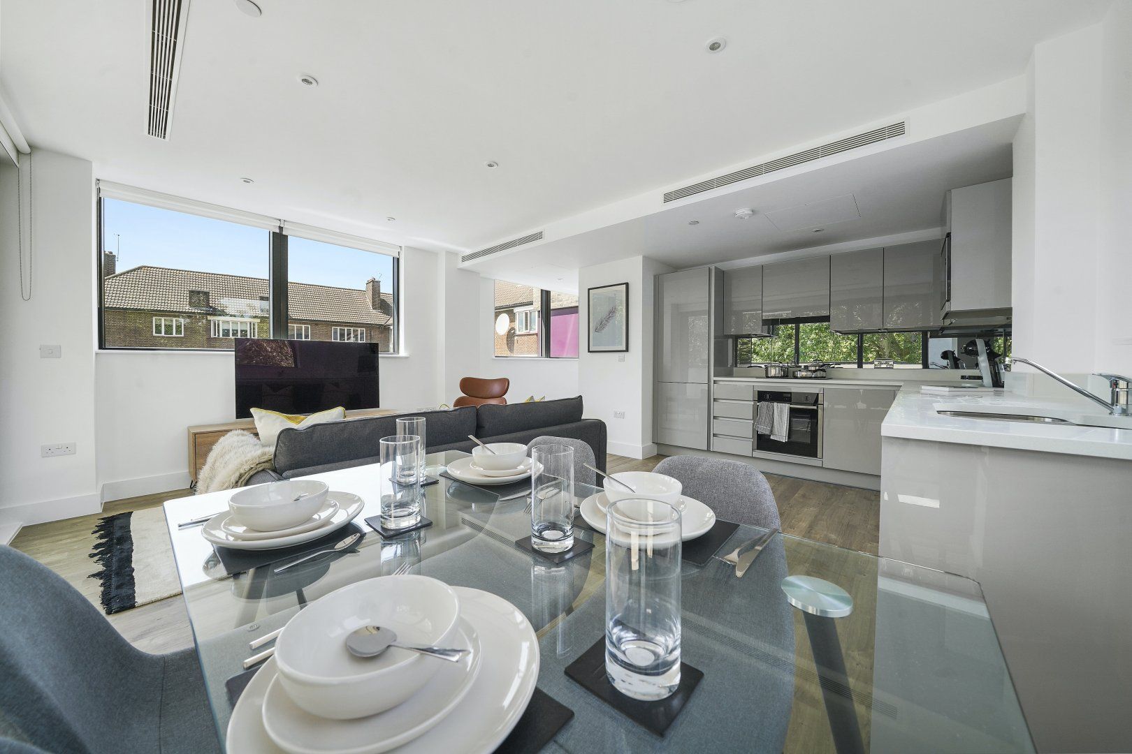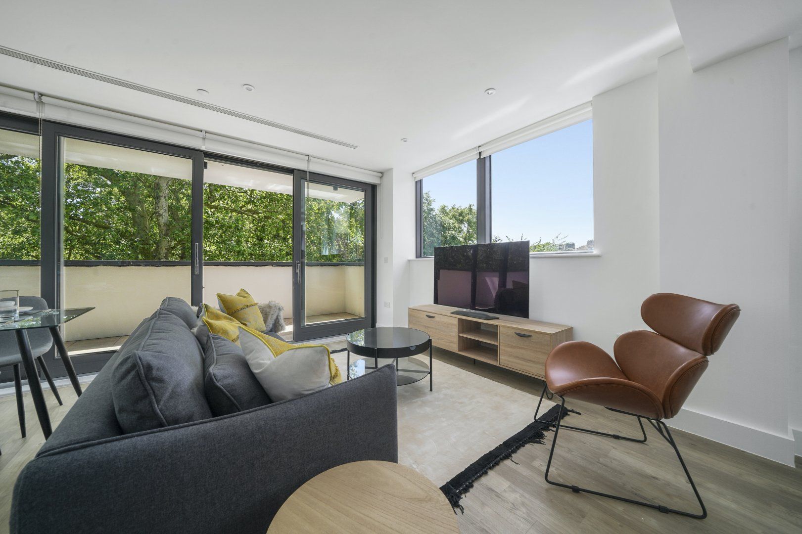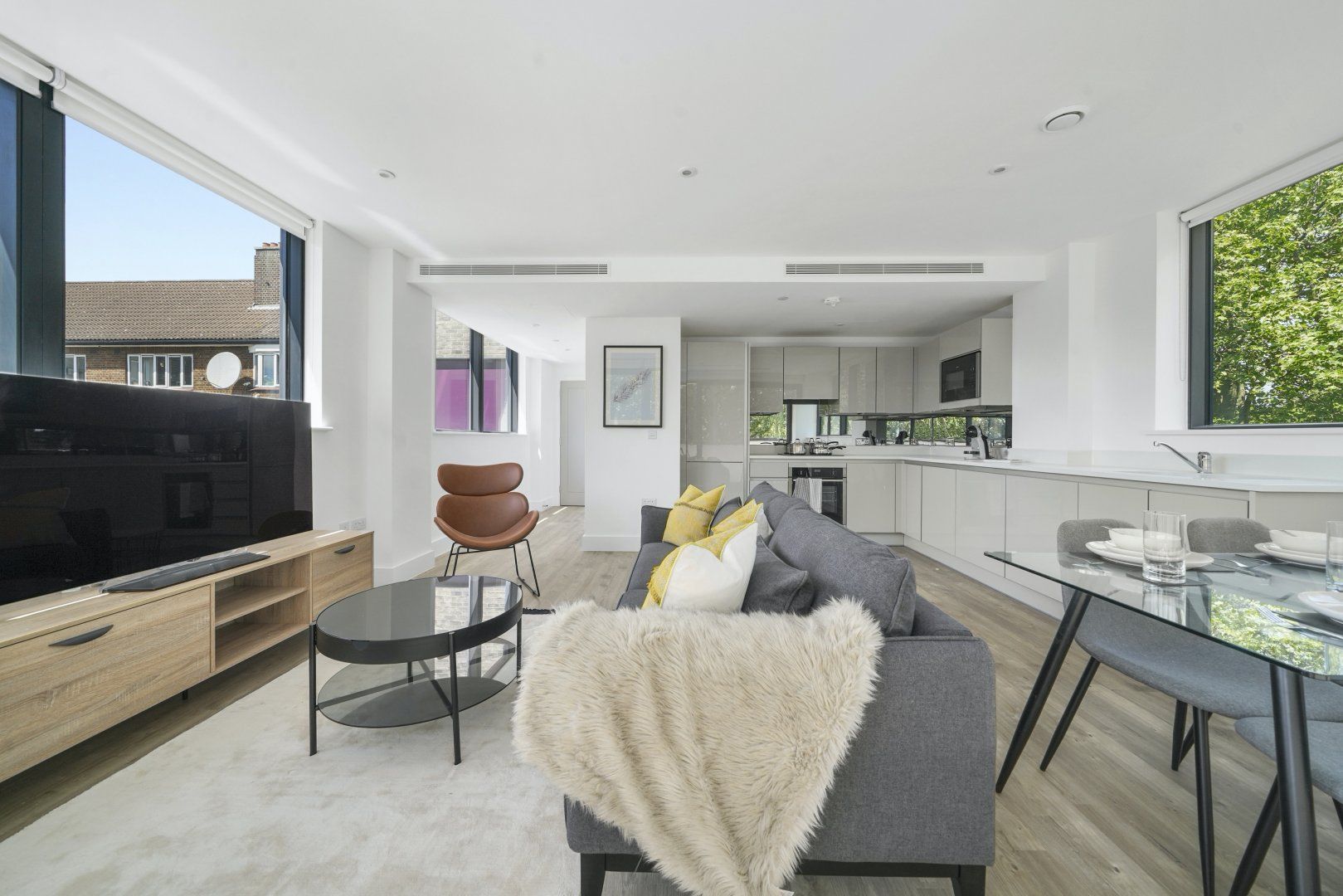 Bermondsey is a historic part of London on the shores of the River Thames – but this home is anything but traditional. Windows surround the open-plan living space, offering views over leafy Southwark Park. The furnishings are sleek and stylish, our favourites being the glass dining table and leather armchair – we can just imagine sitting here with a book. However, the best part of this house might be the private balcony. Enjoy a morning coffee here, admiring the views over the surrounding trees, and feel like you're a world away from the busy city streets. While you might be tempted by the endless array of restaurants in the city, on those nights when you fancy a home-cooked meal the kitchen has everything you'll need to rustle something up. Don't forget to explore the local area while you're here too – Maltby Street Market is a must-visit for delicious food, and there are plenty of riverside pubs where you can enjoy a drink as the sun sets.