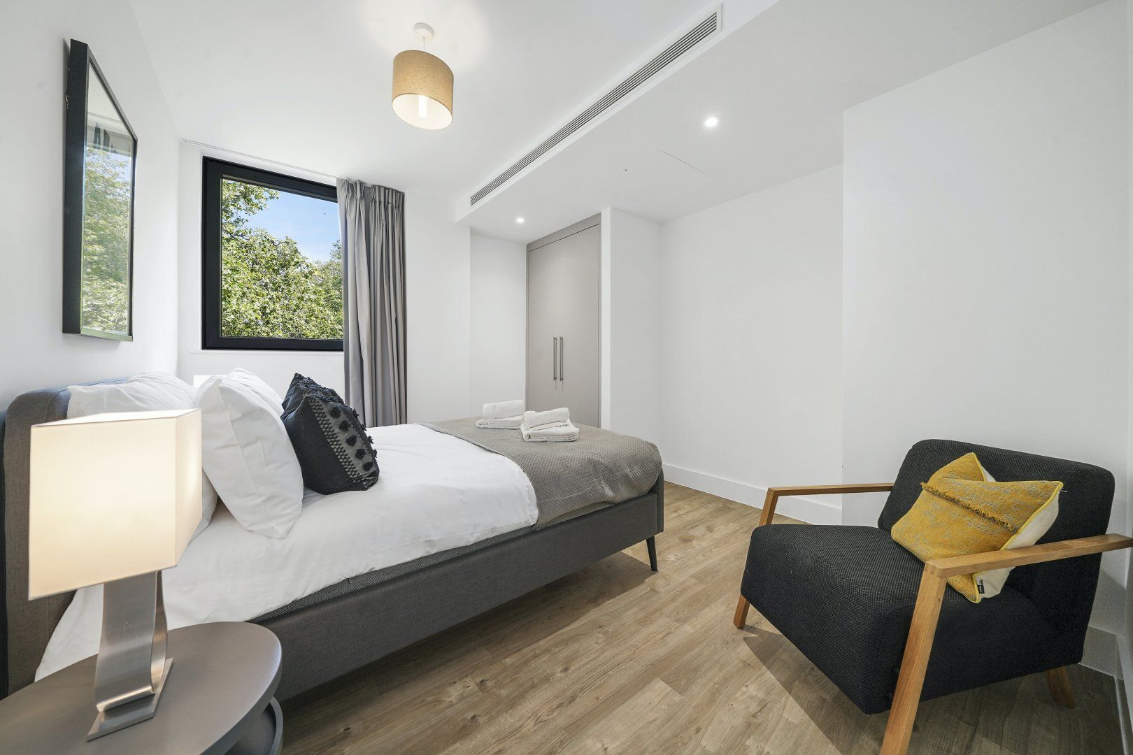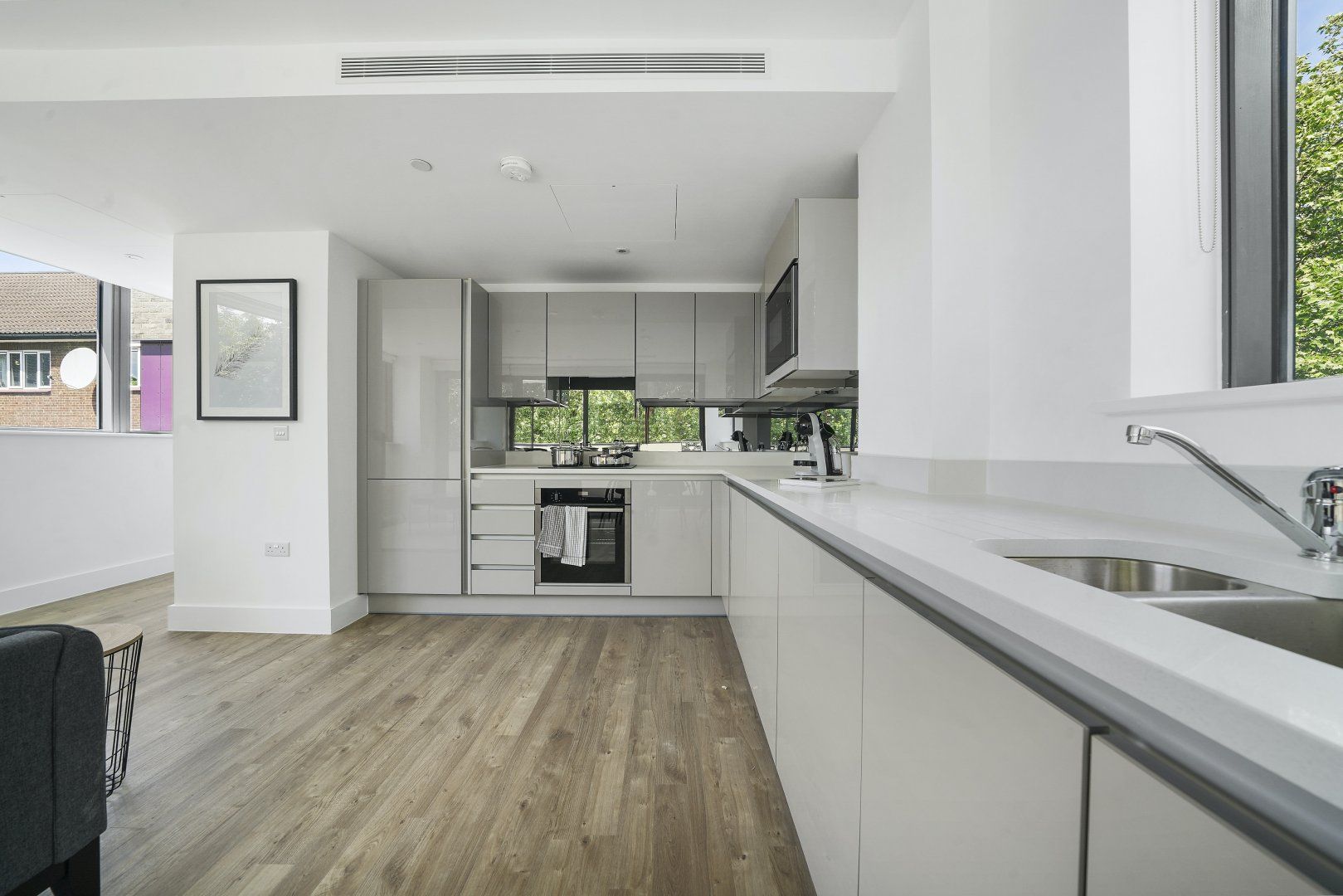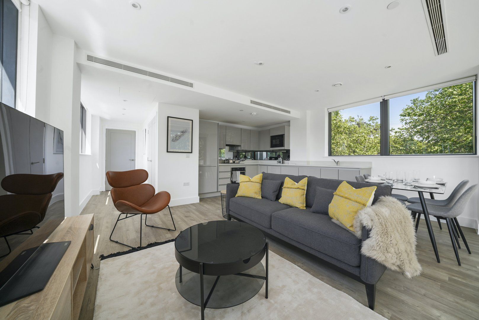 Bermondsey is a historic part of London on the shores of the River Thames – but this home is anything but traditional. Windows surround the open-plan living space, offering views over leafy Southwark Park. The furnishings are sleek and stylish, our favourites being the glass dining table and leather armchair – we can just imagine sitting here with a book. However, the best part of this house might be the private balcony. Enjoy a morning coffee here, admiring the views over the surrounding trees, and feel like you're a world away from the busy city streets. While you might be tempted by the endless array of restaurants in the city, on those nights when you fancy a home-cooked meal the kitchen has everything you'll need to rustle something up. Don't forget to explore the local area while you're here too – Maltby Street Market is a must-visit for delicious food, and there are plenty of riverside pubs where you can enjoy a drink as the sun sets.