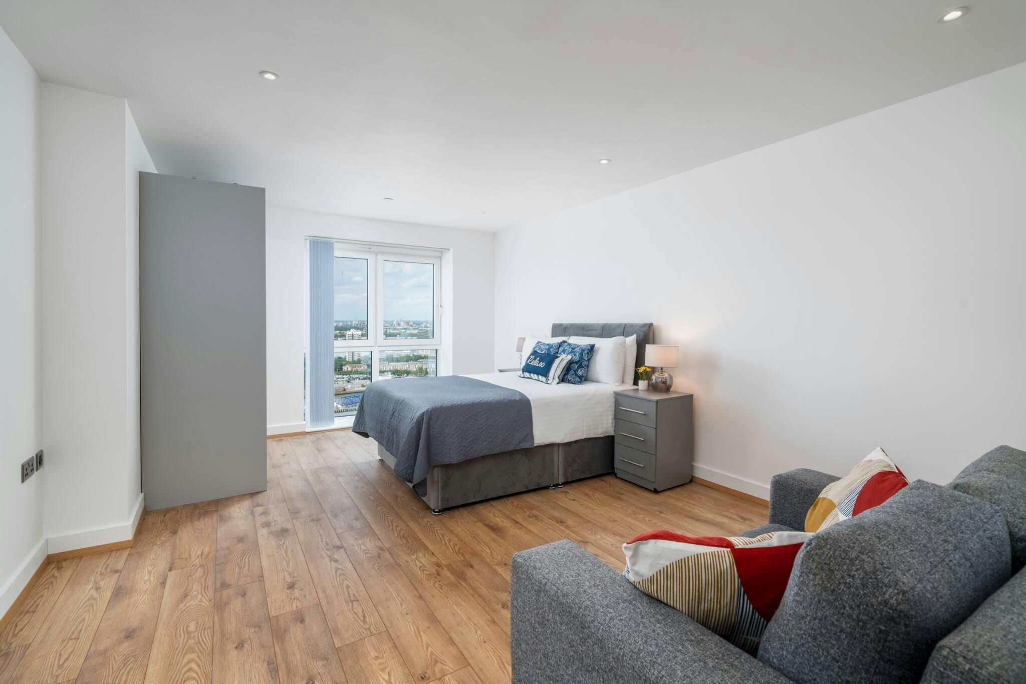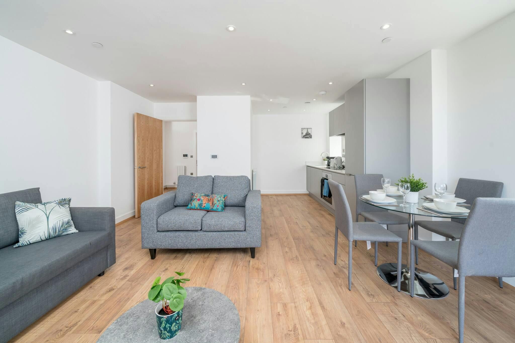 With views across the River Thames and a private terrace, this apartment is a great base for families and groups in search of a refreshing city stay. At full occupancy one guest will be sleeping on the sofa bed in the main bedroom, but you’ll have plenty of space to relax, socialise and switch off. Private parking is available and it’s less than a ten-minute walk to Woolwich Dockyard Station – ensuring smooth connections with the rest of the city. You’ll also find easy access to the O2 Arena and the Excel Centre.