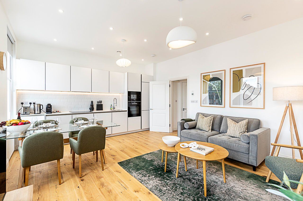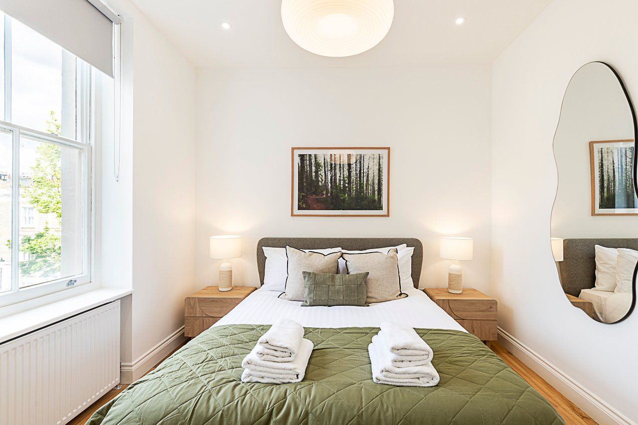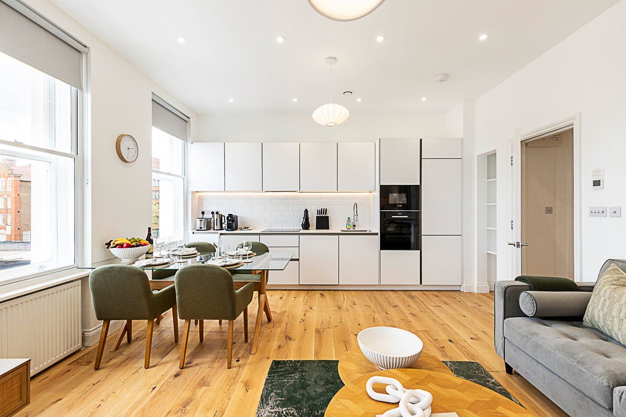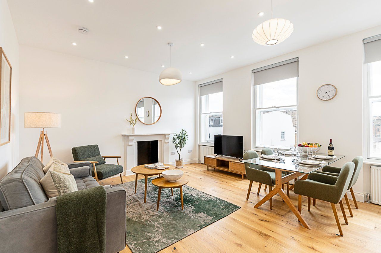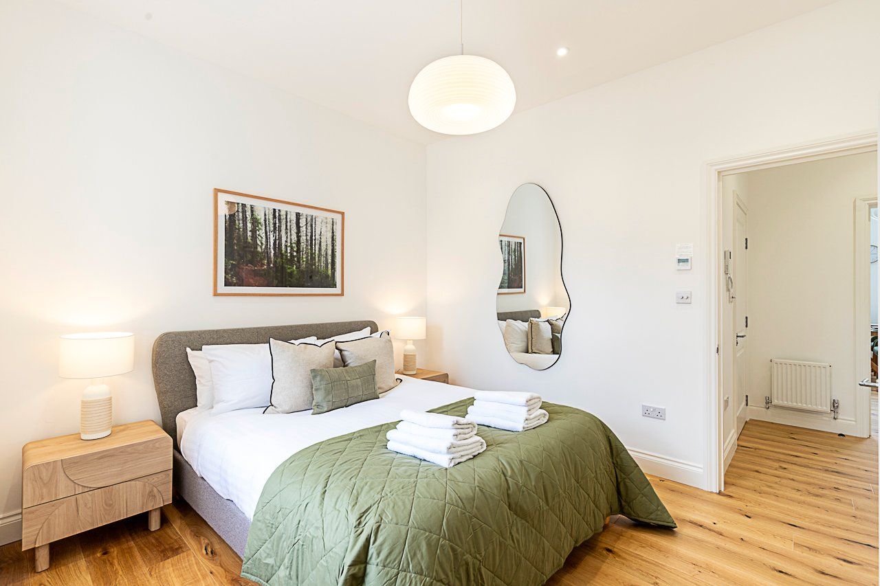 Contemporary with a hint of character, this apartment in Fulham makes a comfortable base for London explorers. The bright living space is where you'll spend most of your time – it features a cosy sofa (which doubles as a bed for guests three and four), a small but well-appointed kitchen, and a dining table that can be used as a desk. Even better is the private balcony – just the spot for a coffee or a glass of wine in the sunshine. When you're ready to explore, Fulham Broadway Station is a ten-minute walk away. Chelsea, with its high-end boutiques and delicious eateries, is also accessible on foot.