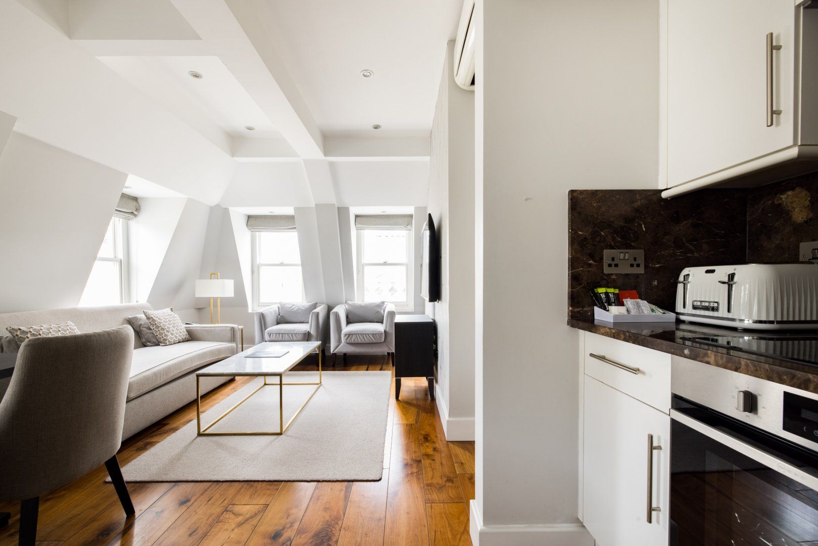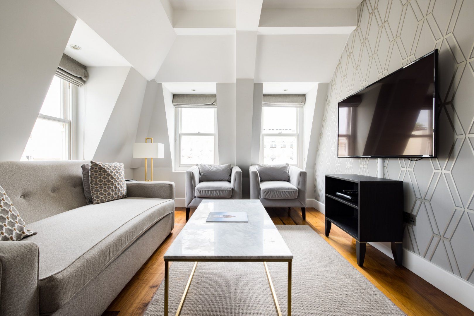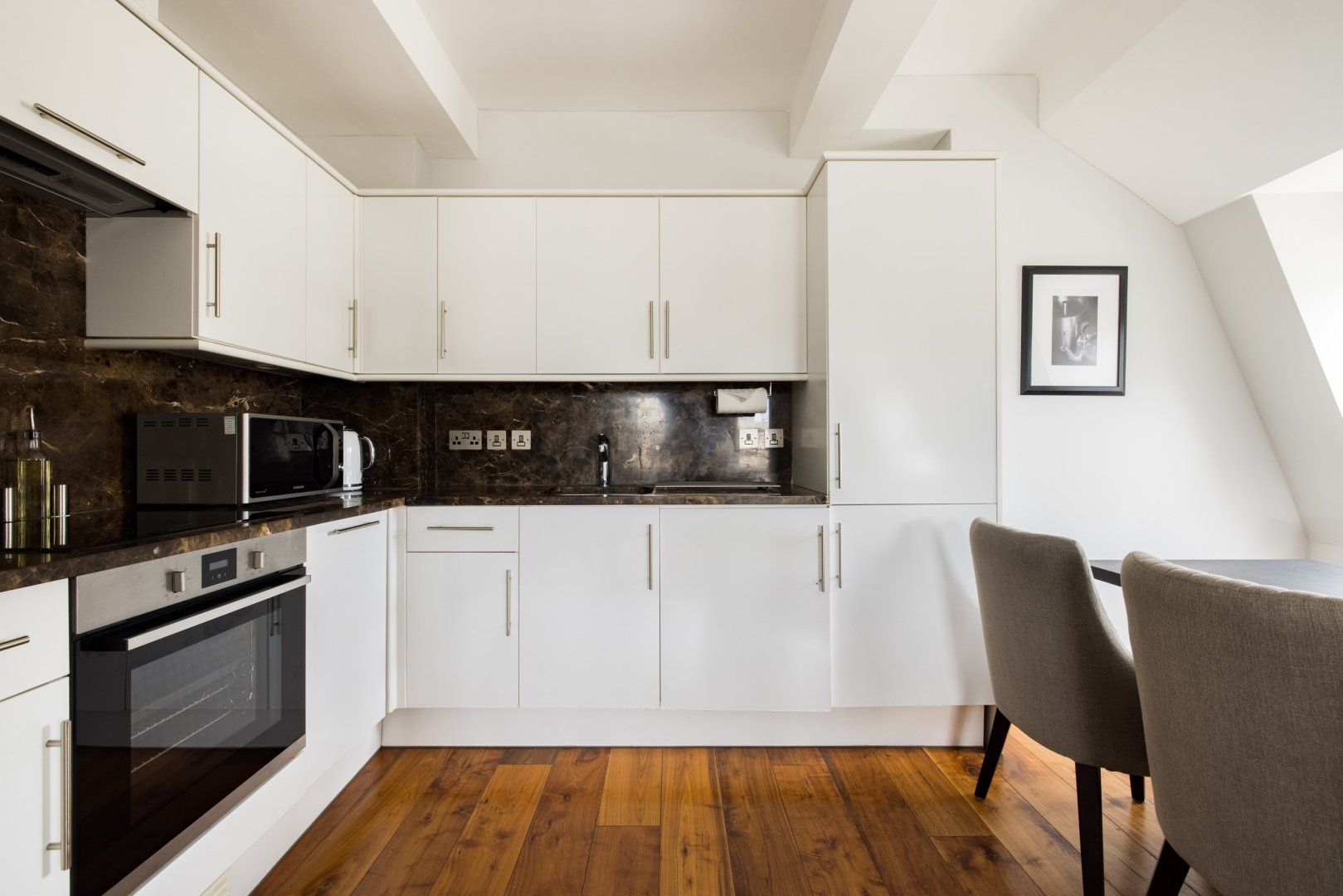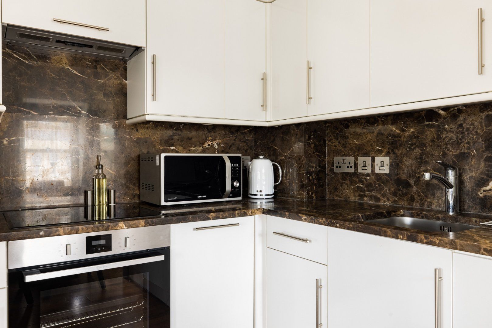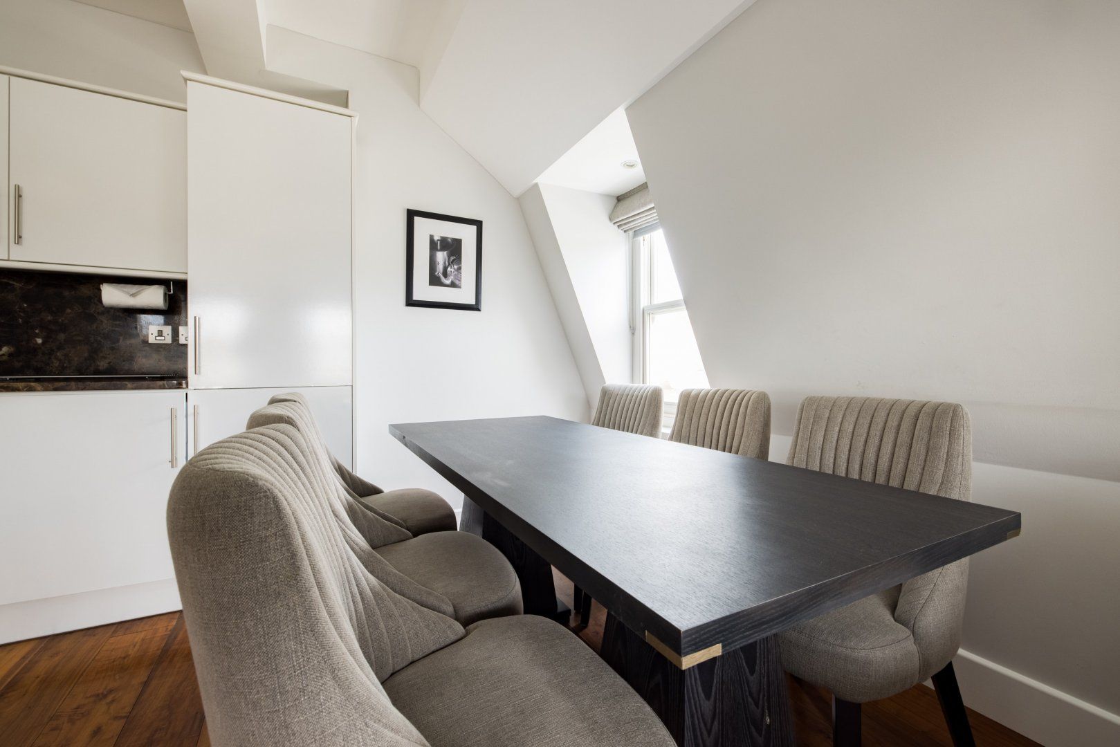 Perhaps you too, like the small bear from Peru, have arrived with your suitcase at Paddington Station. If so, you’ll be delighted to hear that your sophisticated apartment is only a five-minute walk away. Inside, it’s a modern blend of feature walls and monochrome, kitted out with everything you need, no matter the length of your stay. The living area has a luxe feel with the marble coffee table and dove grey sofas, while the black dining room and plush chairs make for elegant meals at home. The kitchen is suited to simple meals when you’d like to eat in. And at the end of the night, tuck yourself away in the comfortable bedrooms. Casual cafes and cosy eateries are minutes away but best of all, there’s a traditional pub a few doors down. For gentle strolls on a sunny afternoon, the picturesque canals of Little Venice are fifteen minutes away by foot, while Hyde Park can be reached in ten.