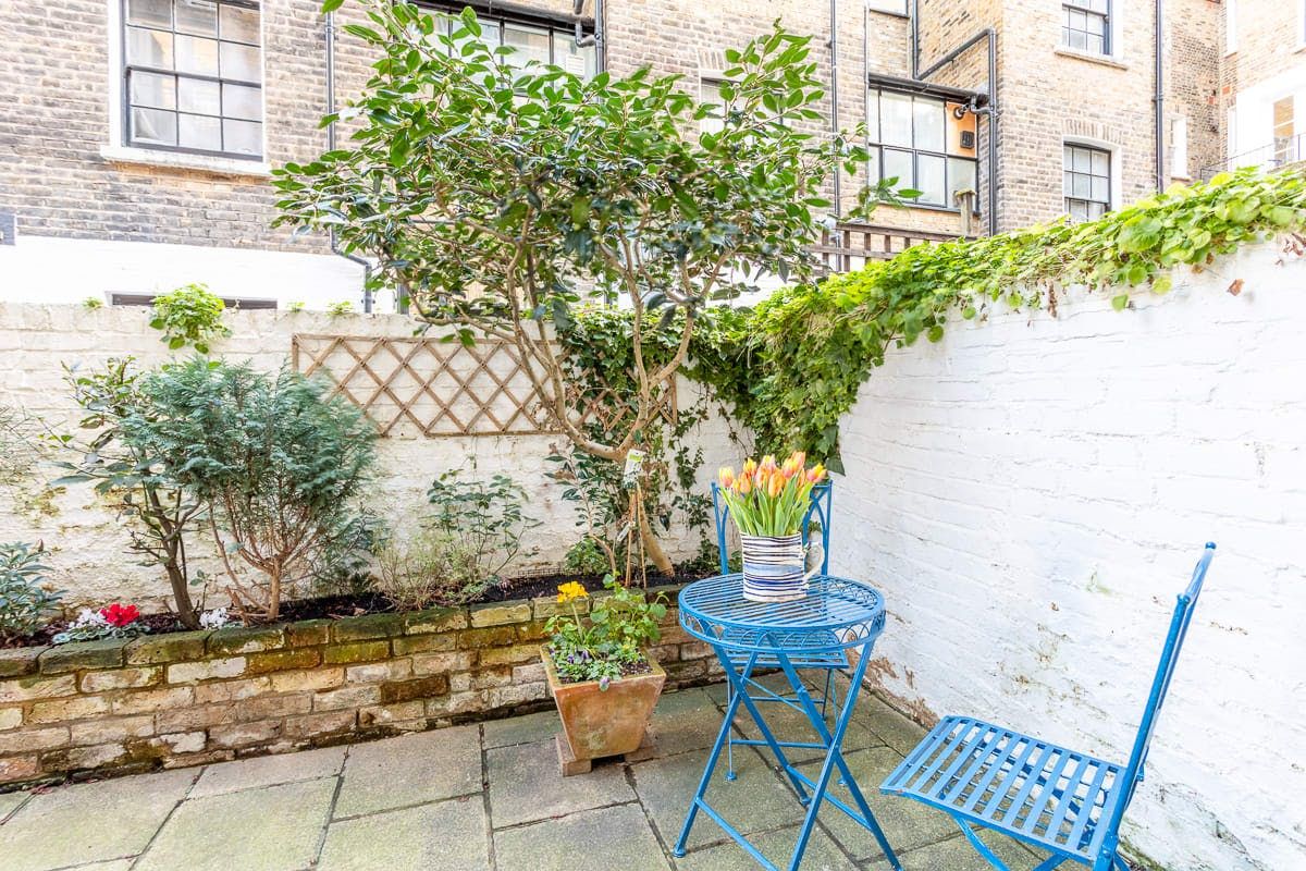 An elegant stucco-fronted exterior reveals a two-bedroom apartment with plenty of period charm that's sure to help you settle quickly into your new surroundings. Thanks to its lower ground floor location, the flat benefits from that all-too-rare of London amenities – outdoor space. The quaint courtyard is lined with trees, potted plants and a table and chairs – perfect for a mid-afternoon cuppa or an aperitif at the end of the day. Elsewhere, a compact kitchen includes everything you could need to whip up delicious meals at home, while both bedrooms benefit from comfortable mattresses and direct access to the outdoors.