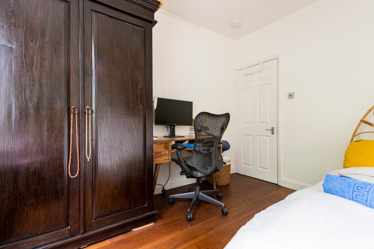Located in the heart of East London, surrounded by parks and less than thirty minutes from Tower Bridge, this home is conveniently placed. Better still, you'll find the Bethnal Green Tube station is a four-minute walk away, connecting you to trendy Shoreditch in moments. The apartment has been thoughtfully curated with an abundance of houseplants and quirky furniture to create a homey space. That said, you should expect some of the host's personal belongings to be present during your stay. Later, head up to the shared rooftop terrace with a bottle of wine and take in skyline views over the city – it's our favourite spot to unwind after a busy day.