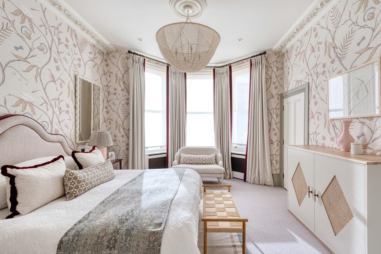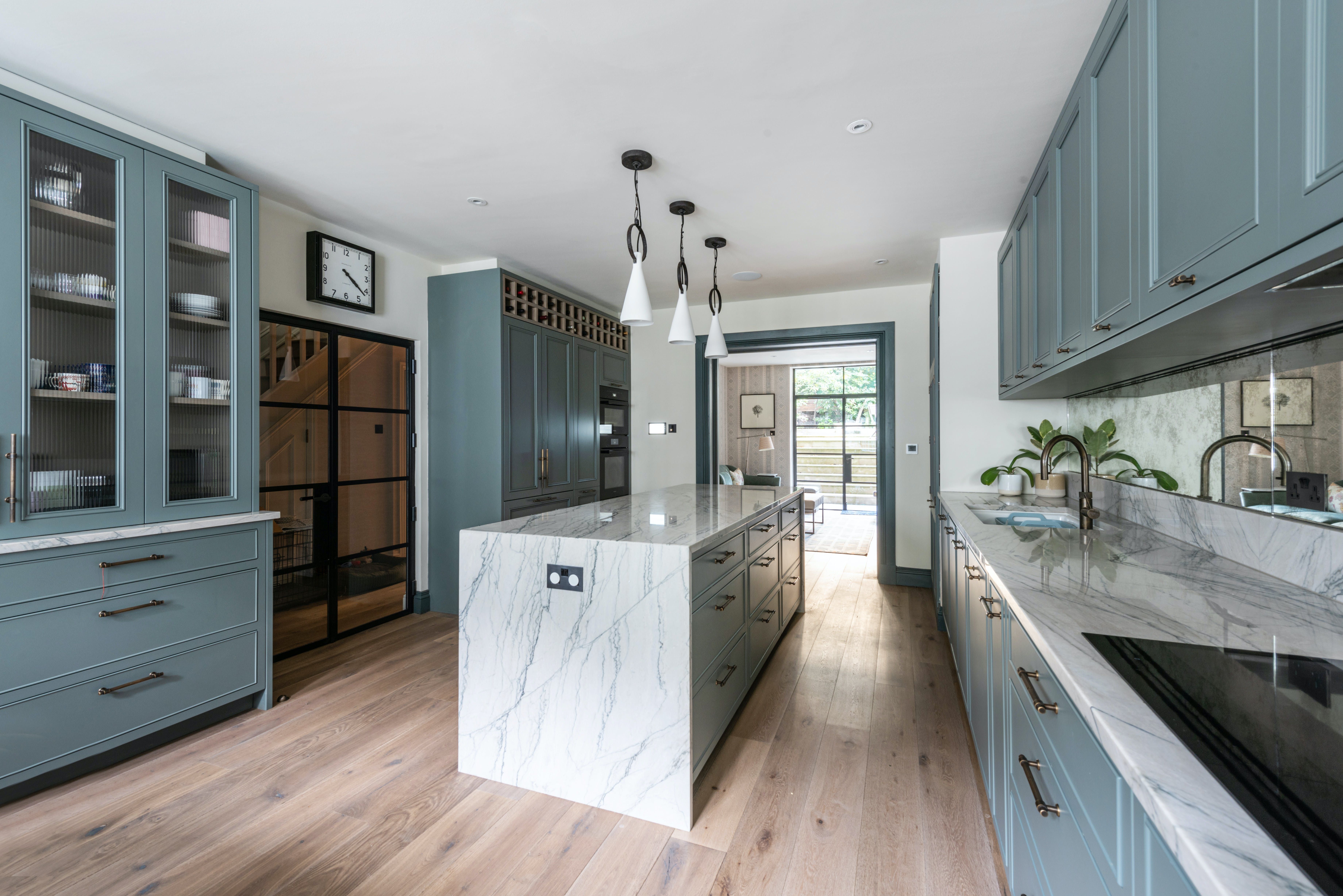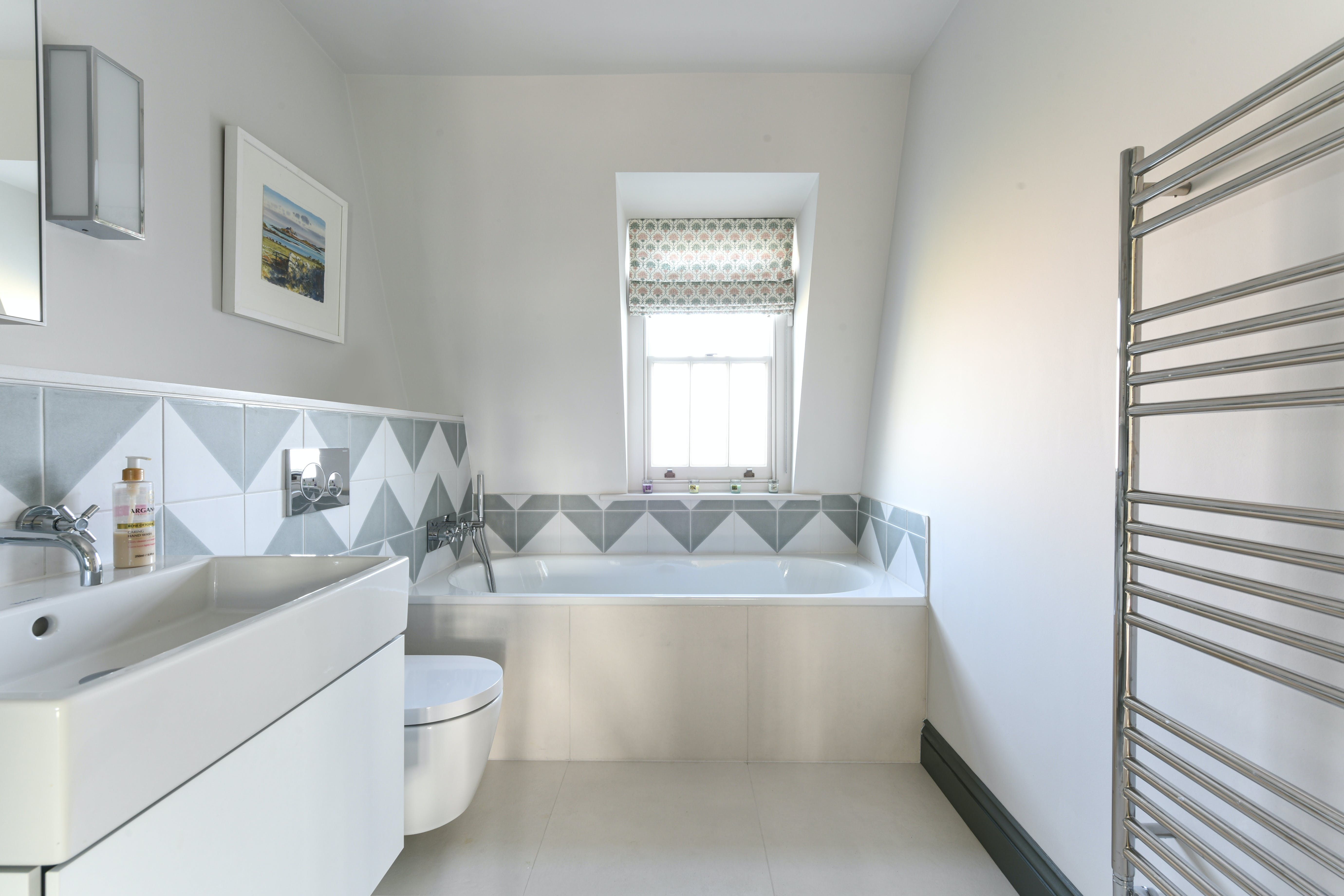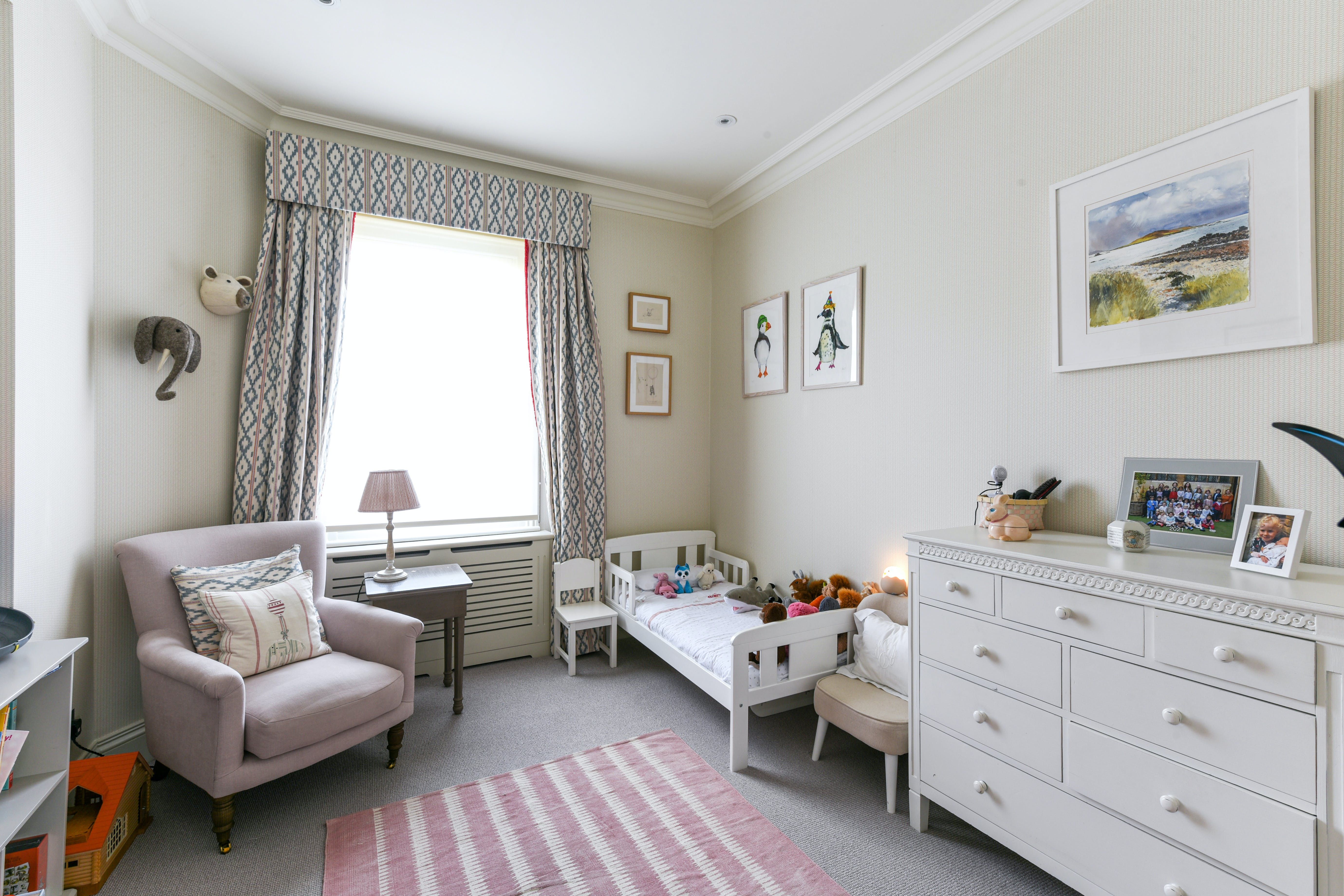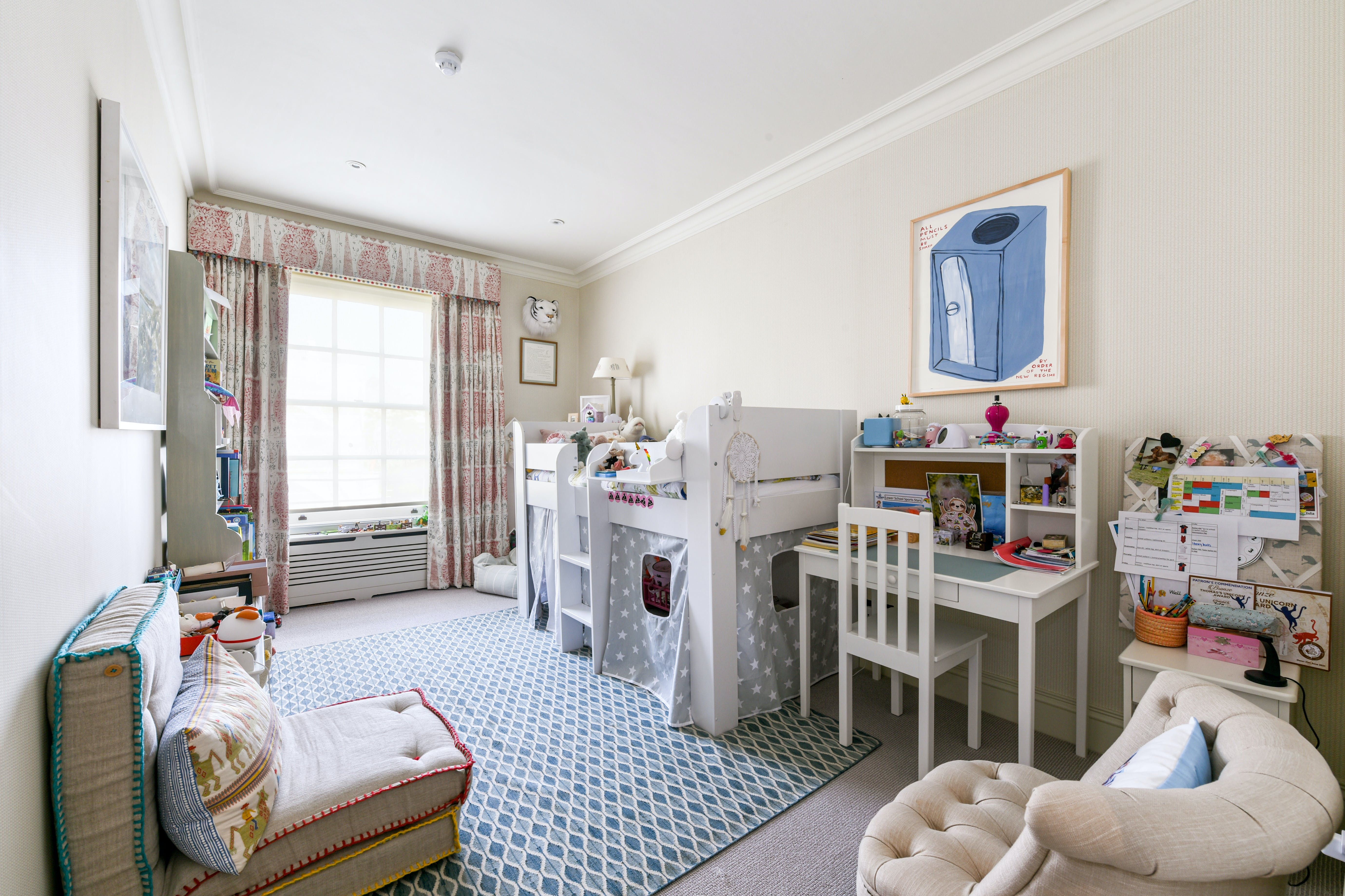 The upper floors share in the home’s eclectic style, with eye-catching wallpapers and furnishings in each room. On the first floor you’ll find the master bedroom, complete with a 6ft-wide super king bed, walk-through dressing room and ensuite. The second floor houses three bedrooms, all of which share a full-sized family bathroom, while on the third floor are another two bedrooms and bathrooms.