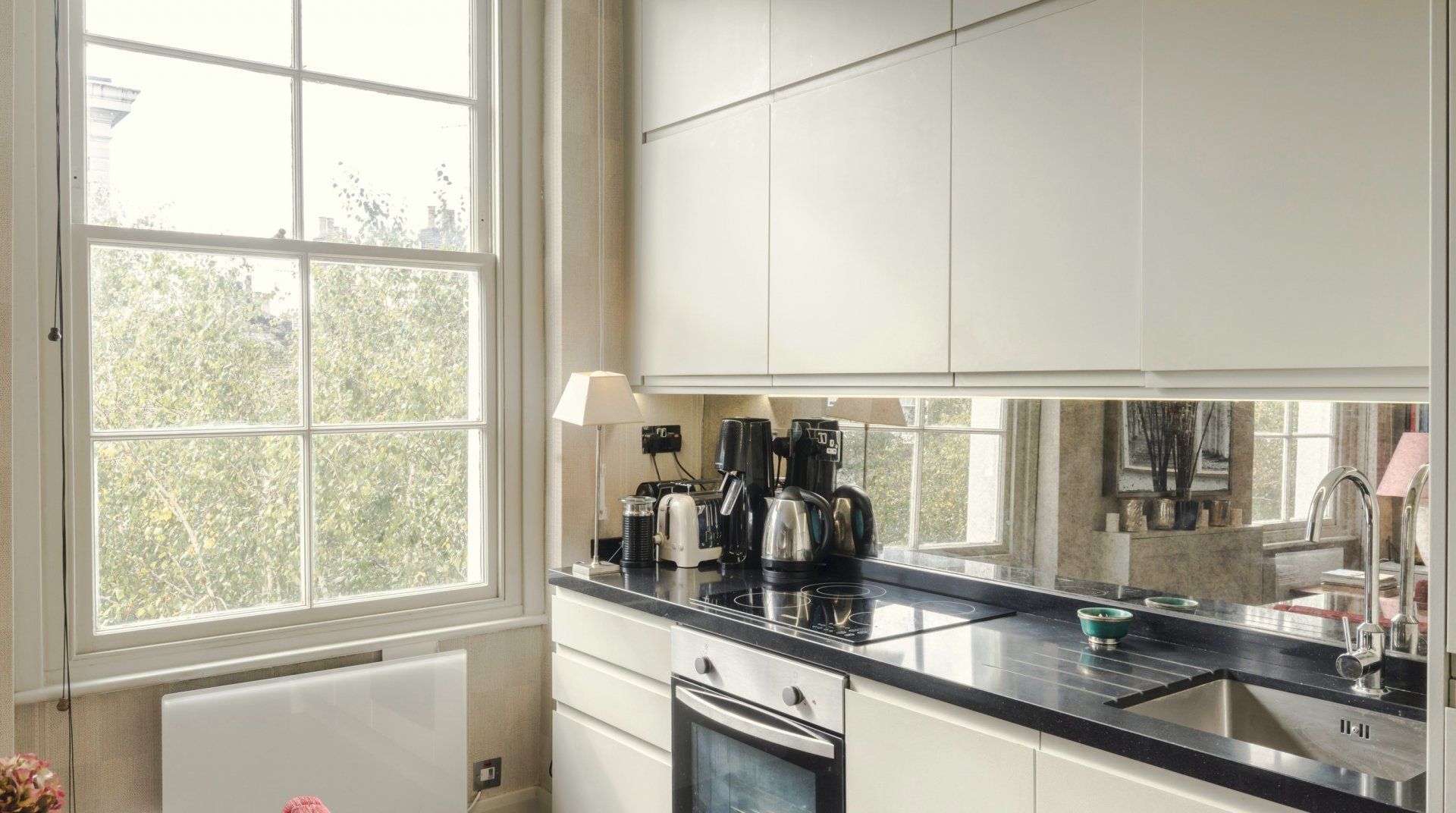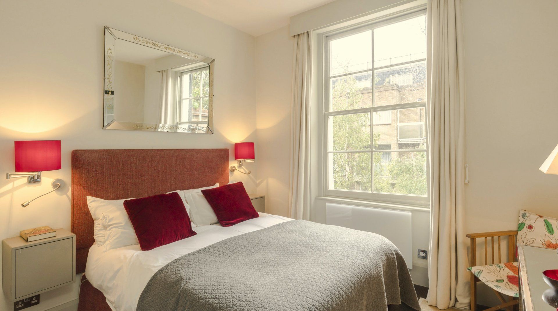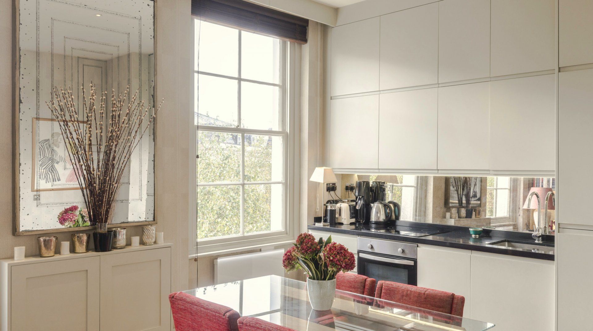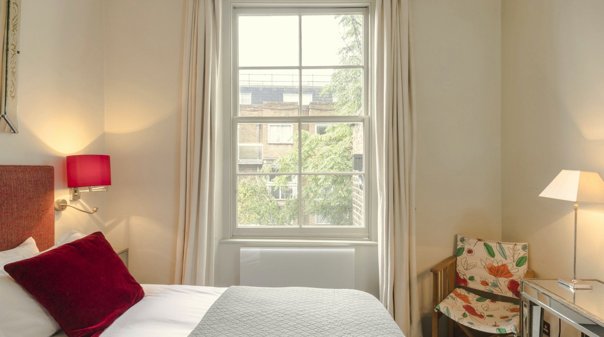 Immersed in the Notting Hill vibe, this apartment is within minutes of Portobello Market and the brunch paradise along Westbourne Grove. The facade is typical of West London on a tree-lined street, and inside it’s a romantic retreat perfect for a couple or solo traveller. Book-filled shelves surround the sofa in the living room, where the sash windows throw beams of sunlight across this cosy reading nook. The home has been decorated to perfection, with magenta and rose-red, velvety accents against a deep grey backdrop in the bedroom. The kitchen is compact, and comes stocked with basic groceries, but since the restaurants, brunch spots and cafés of Notting Hill are mere footsteps away you may not need to fire up the cooker. Though the fresh produce markets might tempt you into cooking.