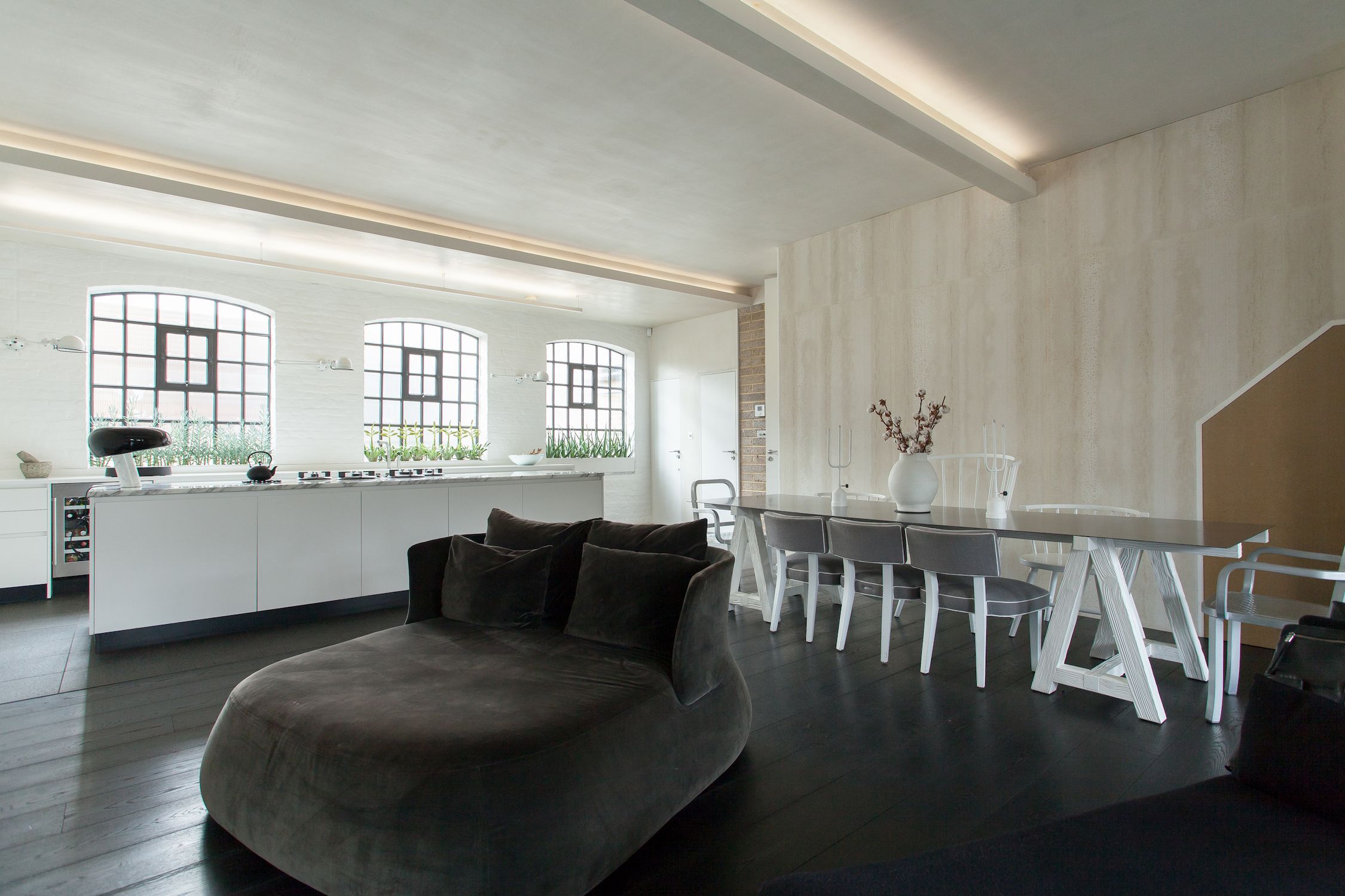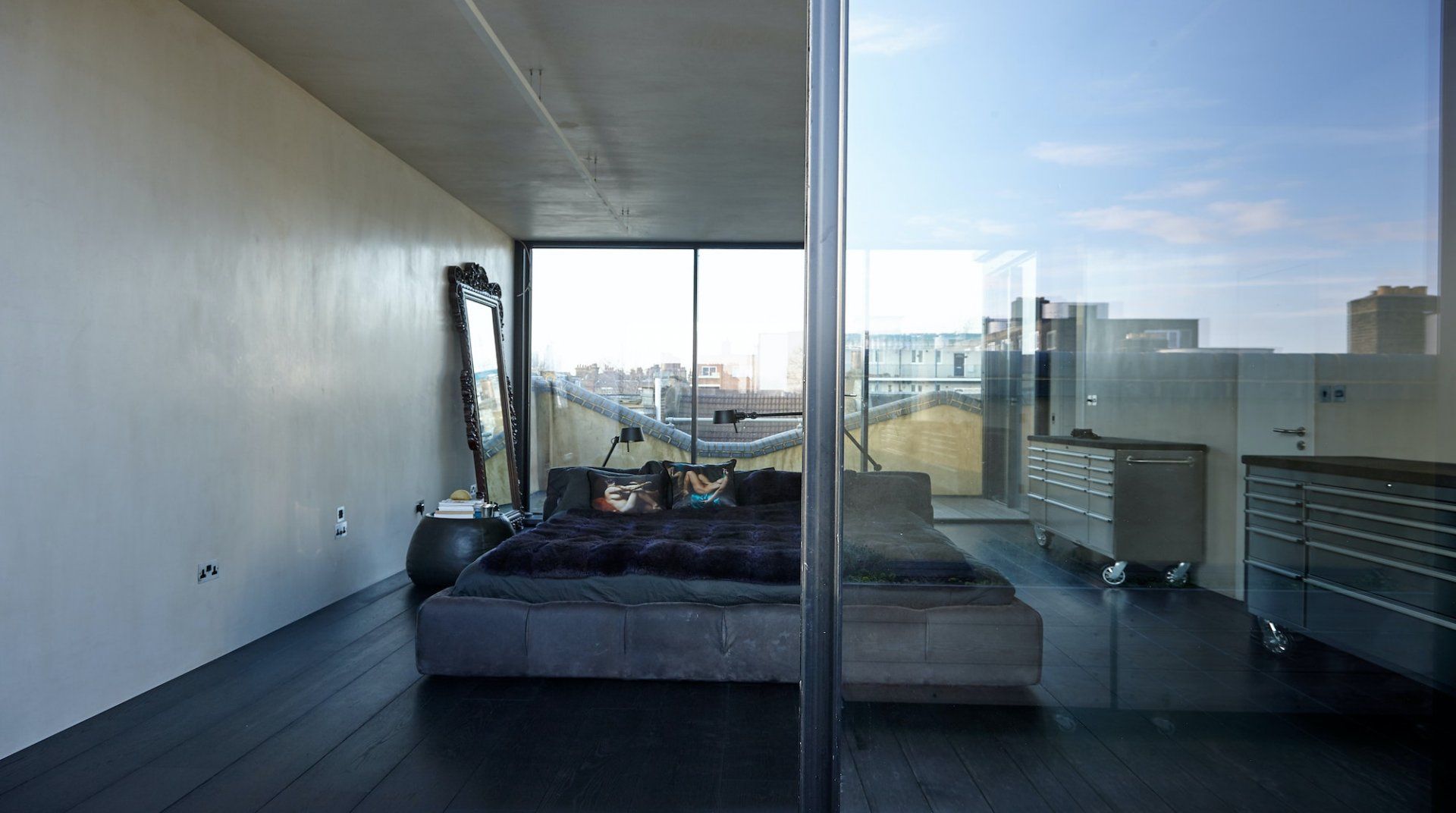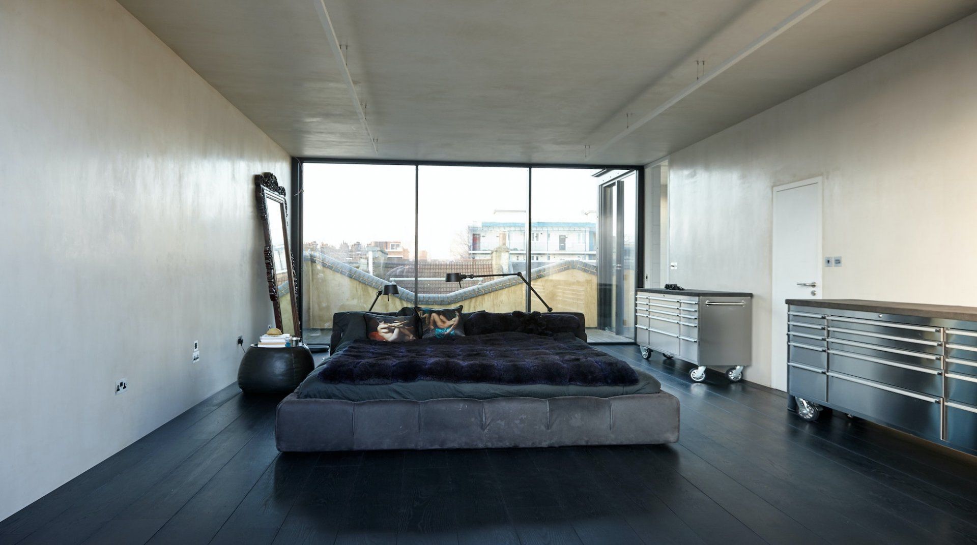 There's a multitude of different spaces in which to relax, from the private reading library and rooftop terrace to the huge bedroom and the glass-walled bathroom complete with an elegant freestanding bathtub. The main living space is a thing of beauty too, thanks to the warehouse-style windows, dark floorboards and deliciously sleek kitchen.