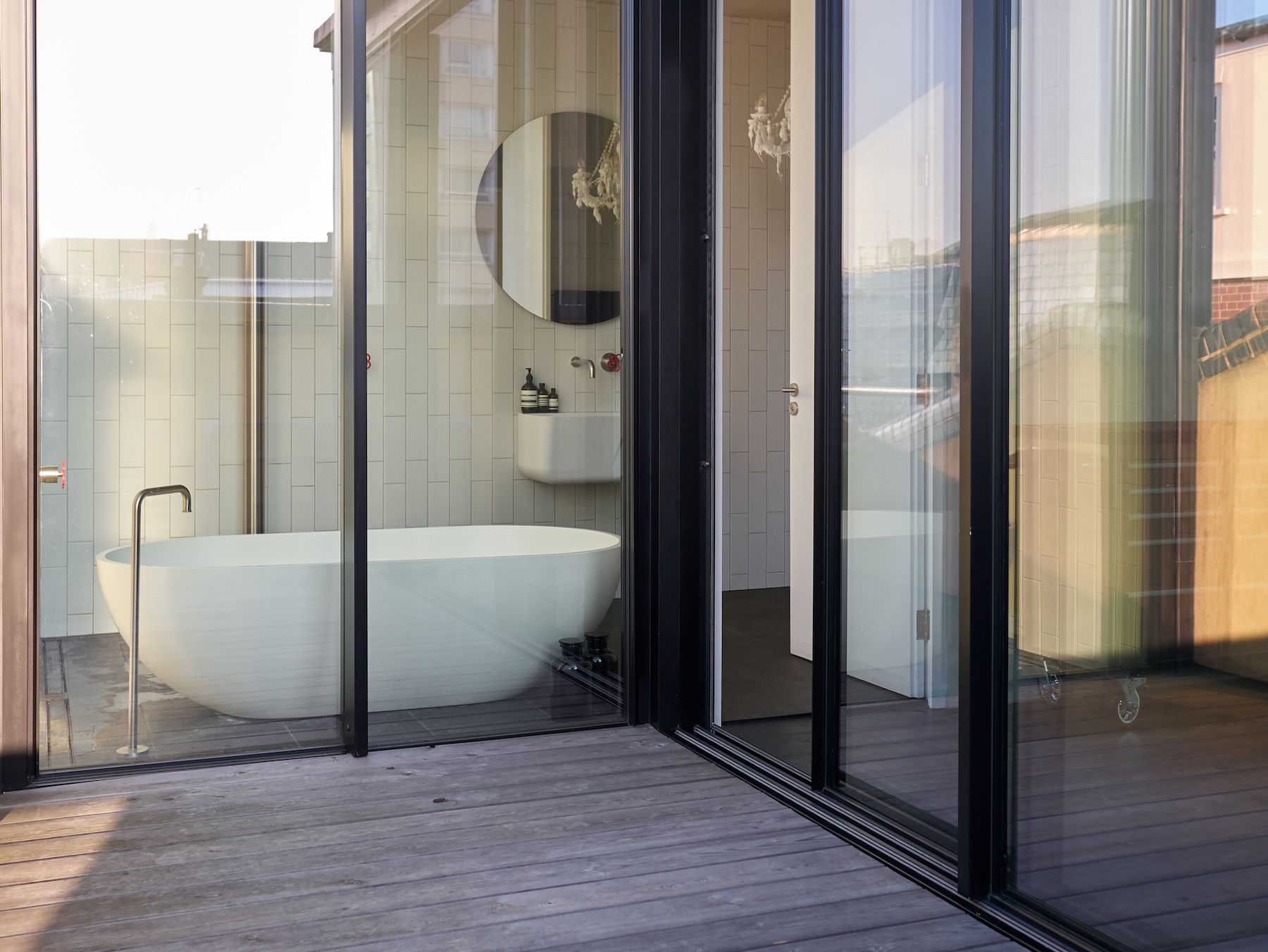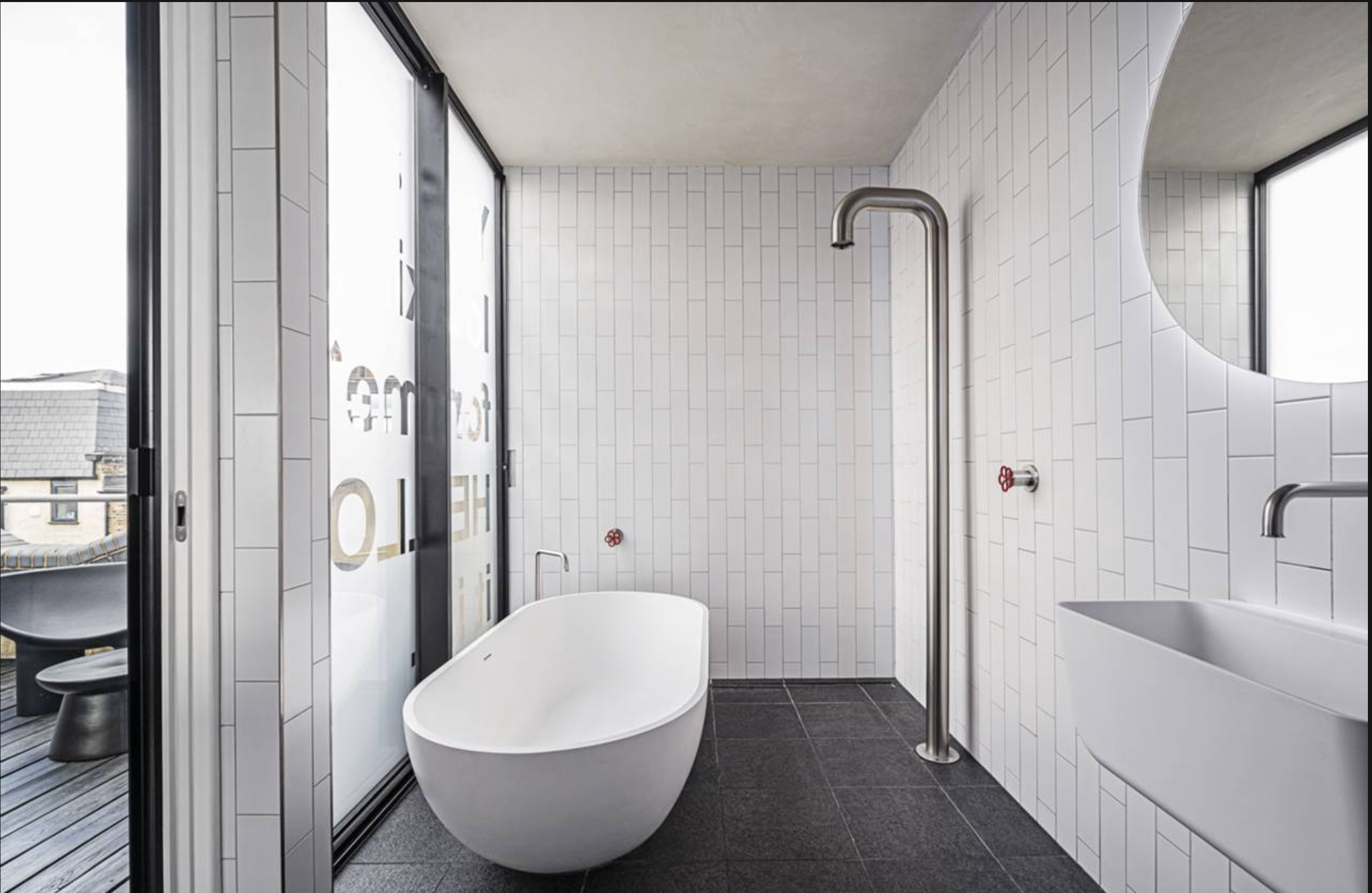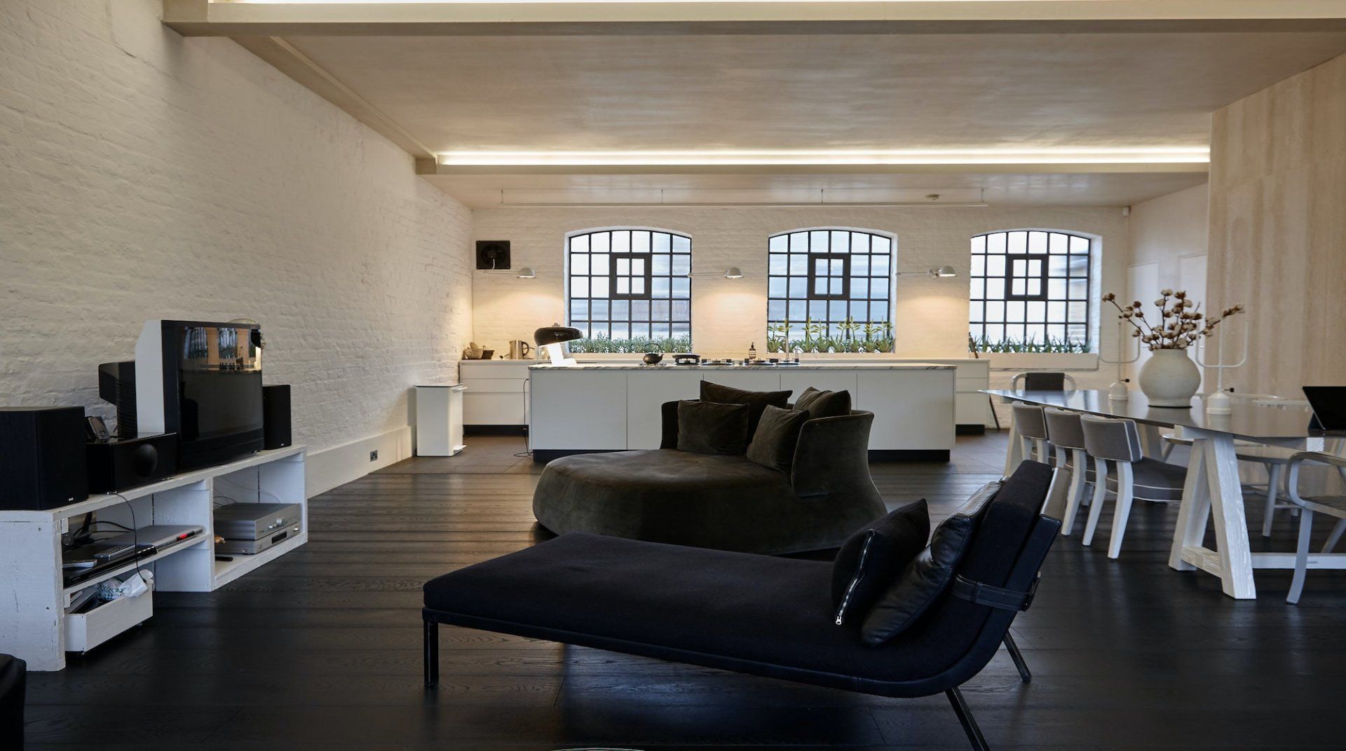There's a multitude of different spaces in which to relax, from the private reading library and rooftop terrace to the huge bedroom and the glass-walled bathroom complete with an elegant freestanding bathtub. The main living space is a thing of beauty too, thanks to the warehouse-style windows, dark floorboards and deliciously sleek kitchen.