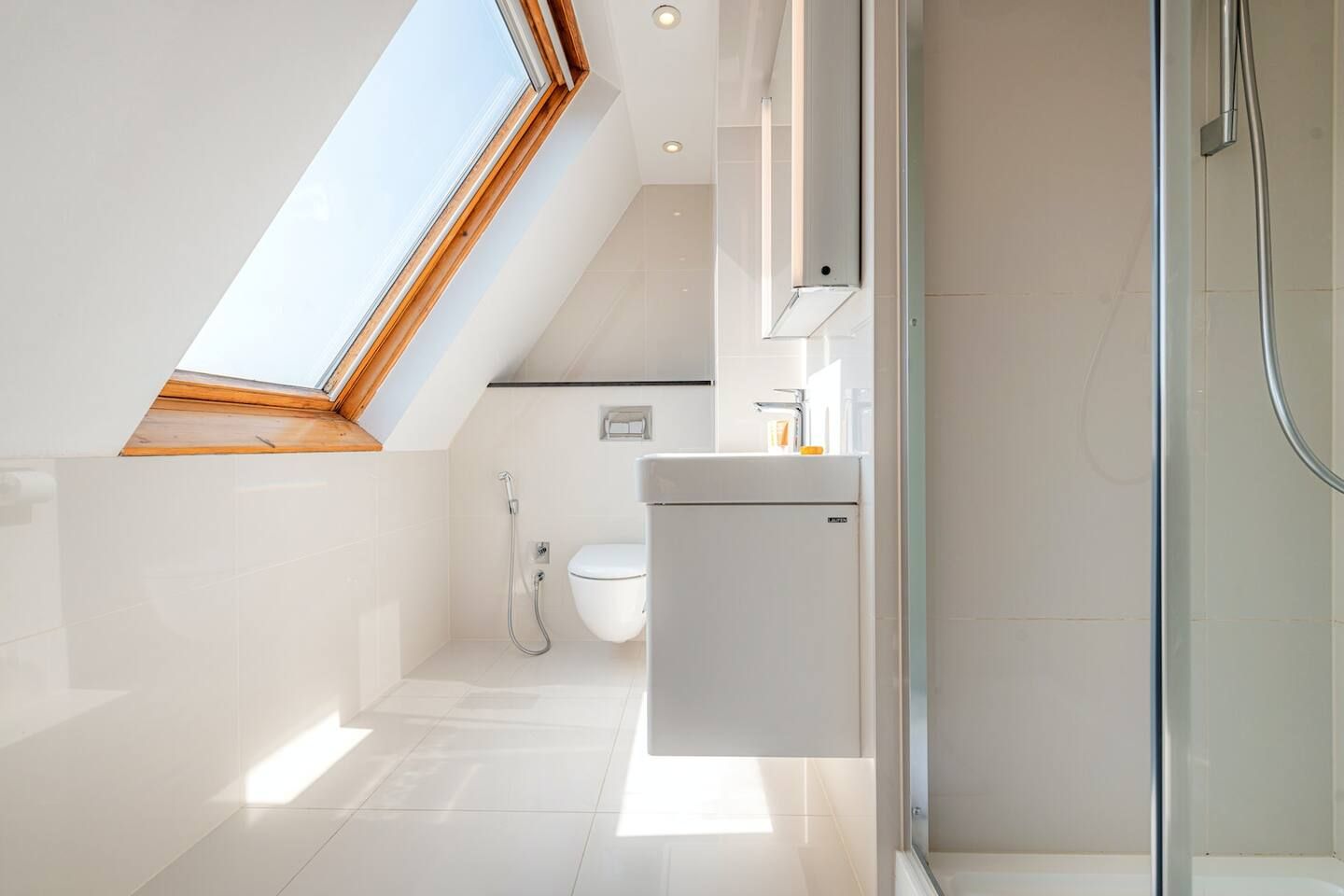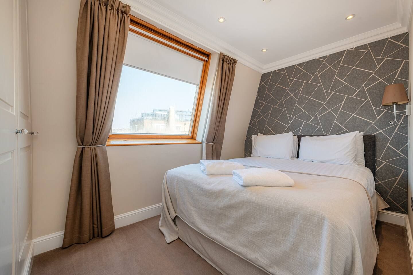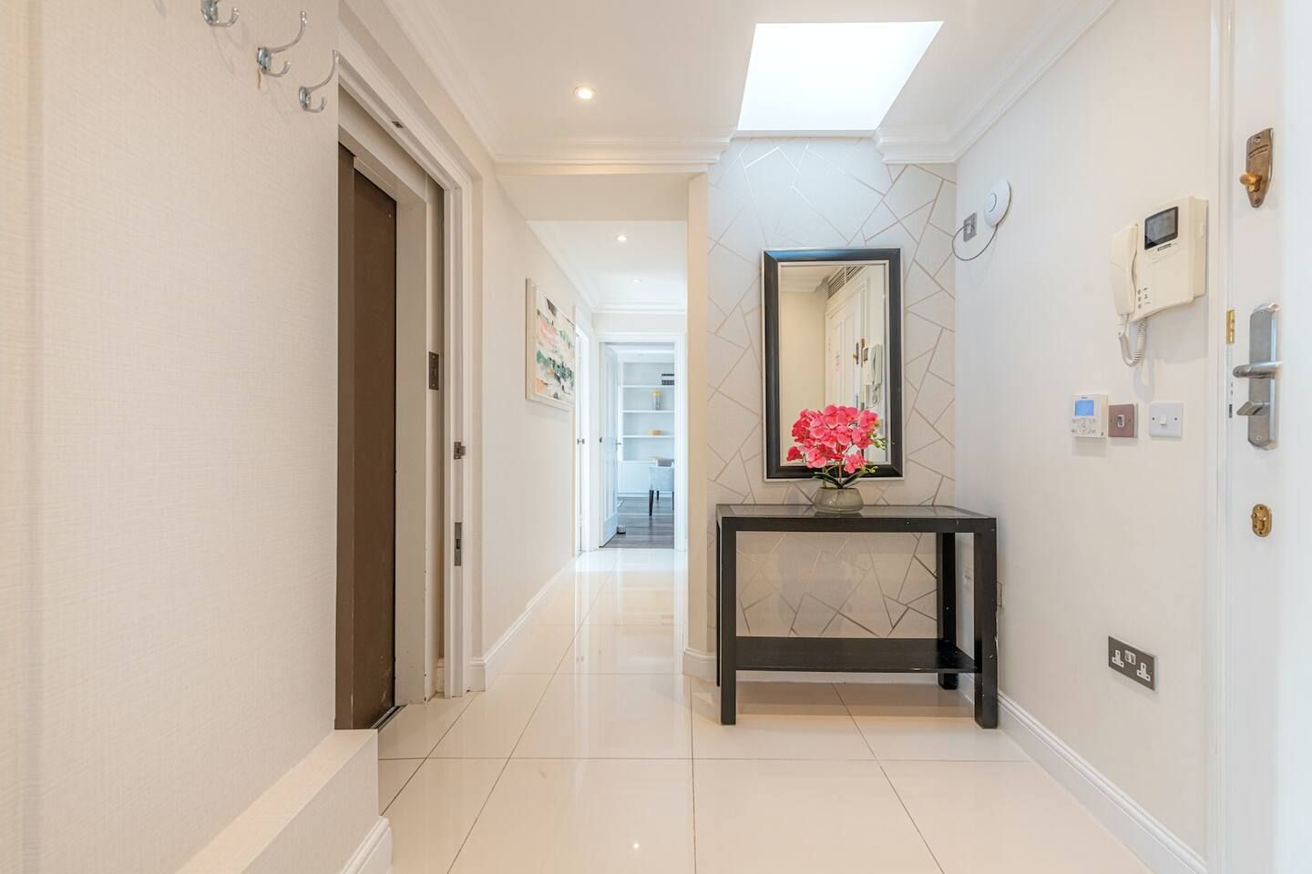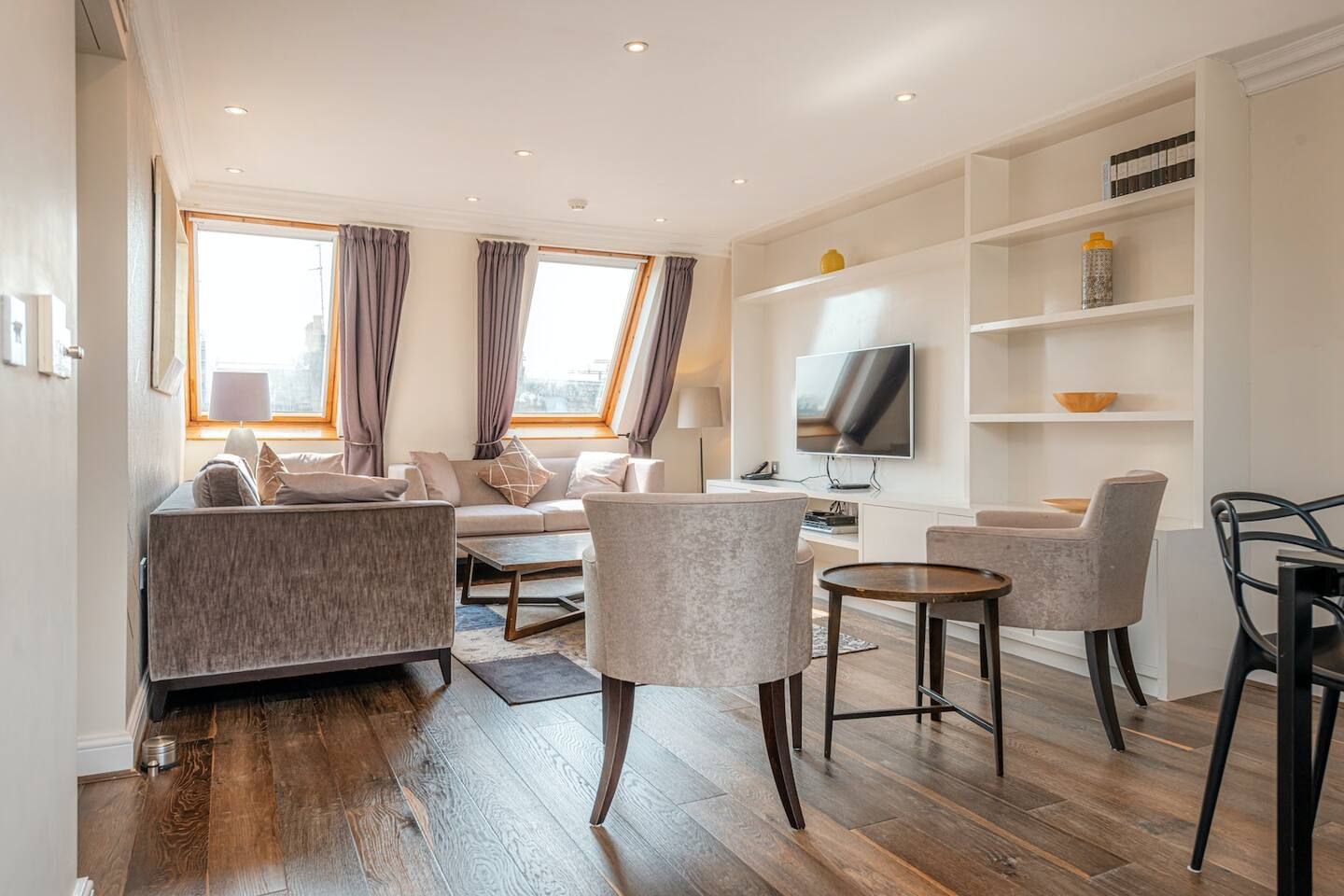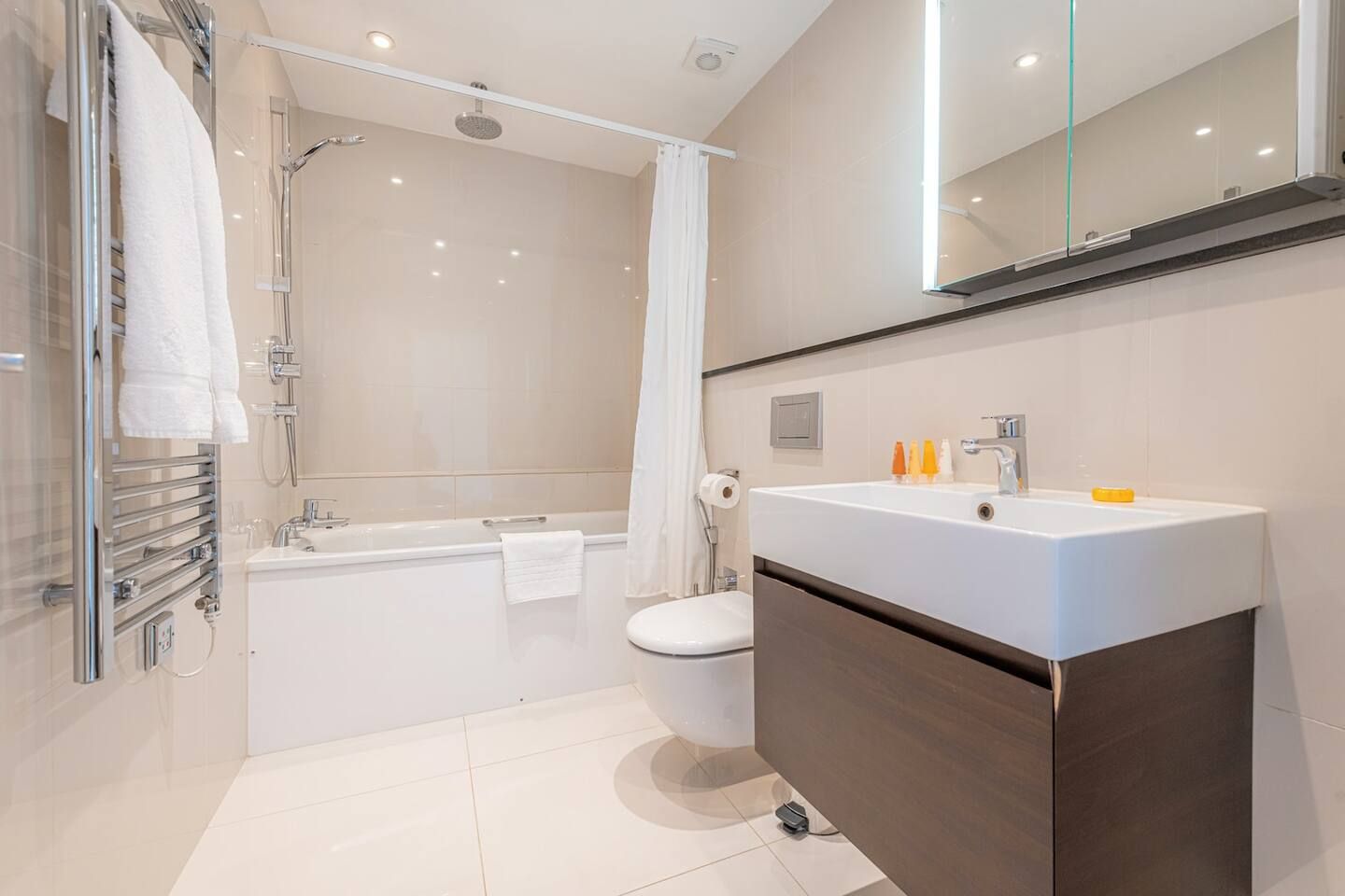 Nestled on a quiet street in South Kensington, this penthouse apartment, housed in a stunning neo-classical style London townhouse, has a fantastic location. It's around a ten-minute stroll from London's world-famous trio of museums – the Natural History Museum, the Victoria and Albert and the Science Museum. Or, if you fancy some green space, then beautiful Kensington Gardens are a fifteen-minute saunter. Back at this luxurious home, there’s a private lift to whisk you to the top floor. Once there, relax in the bright and classy living space with its elegant furnishings or enjoy a meal at the stylish dining table. The concierge here can arrange for a private chef to create a truly memorable feast for you and your guests if you prefer. Afterwards, take in the views over the rooftops of South Kensington, or unwind in the bath with a glass of Champagne.