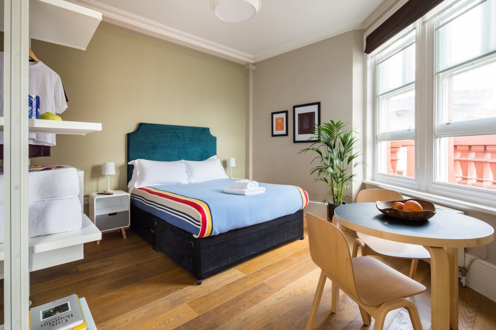 Though compact, this studio apartment packs a decorative punch with vibrant pops of colour in its decor and a collection of funky art prints that lend the space a creative, characterful flair. We love the ample natural light that pours into the main room from the large window, casting a sunny glow on the dining table that beckons fresh coffees each morning and celebratory meals when you’re not out sampling the local food scene. And when it’s time to turn in, the comfortable bed invites a dreamy night’s sleep leaving you rested and ready for another day of exploring.