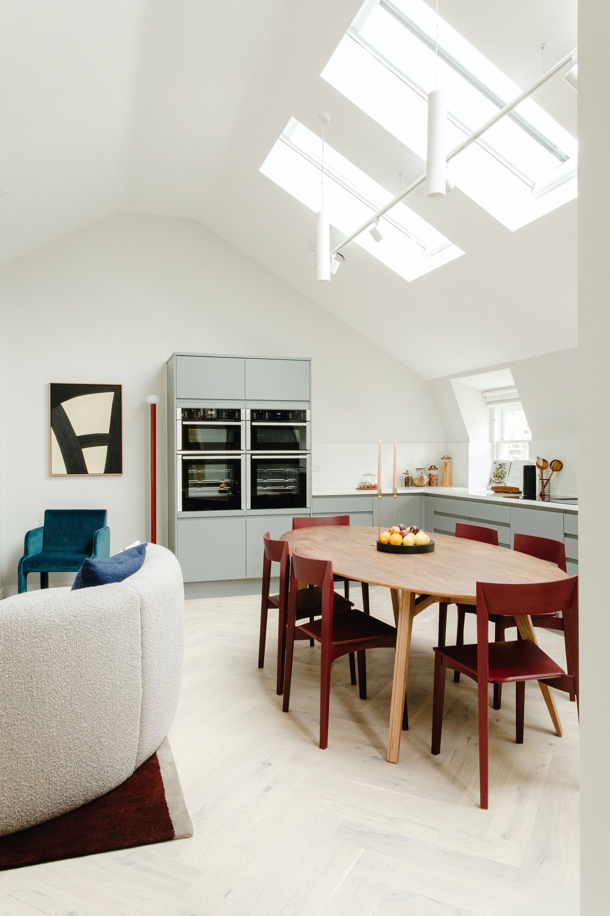 Whether you’ve spent the day shopping, visiting museums and galleries, or taking in a show, you’ll be glad to have this penthouse to return to. When the weather is fine, take a glass of wine onto the planted terrace to relax. The open-plan living and dining space is filled with light, with high ceilings that make it feel spacious but cosy. The penthouse has been designed in collaboration with Waldo Works, and the Laura Bartlett studio has curated the artwork – every detail has been considered, but always with comfort in mind, as well as style.