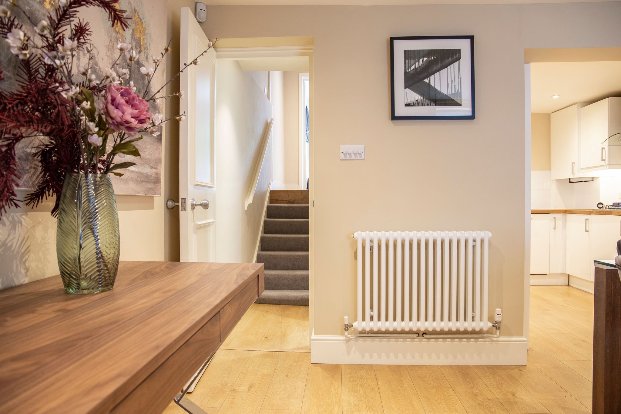 *Please note that this home is spread across several levels. The kitchen and dining room are on the lower ground floor, the living area is on the ground floor (entrance level), two bedrooms are on the first floor, and a further two bedrooms are on the second floor.