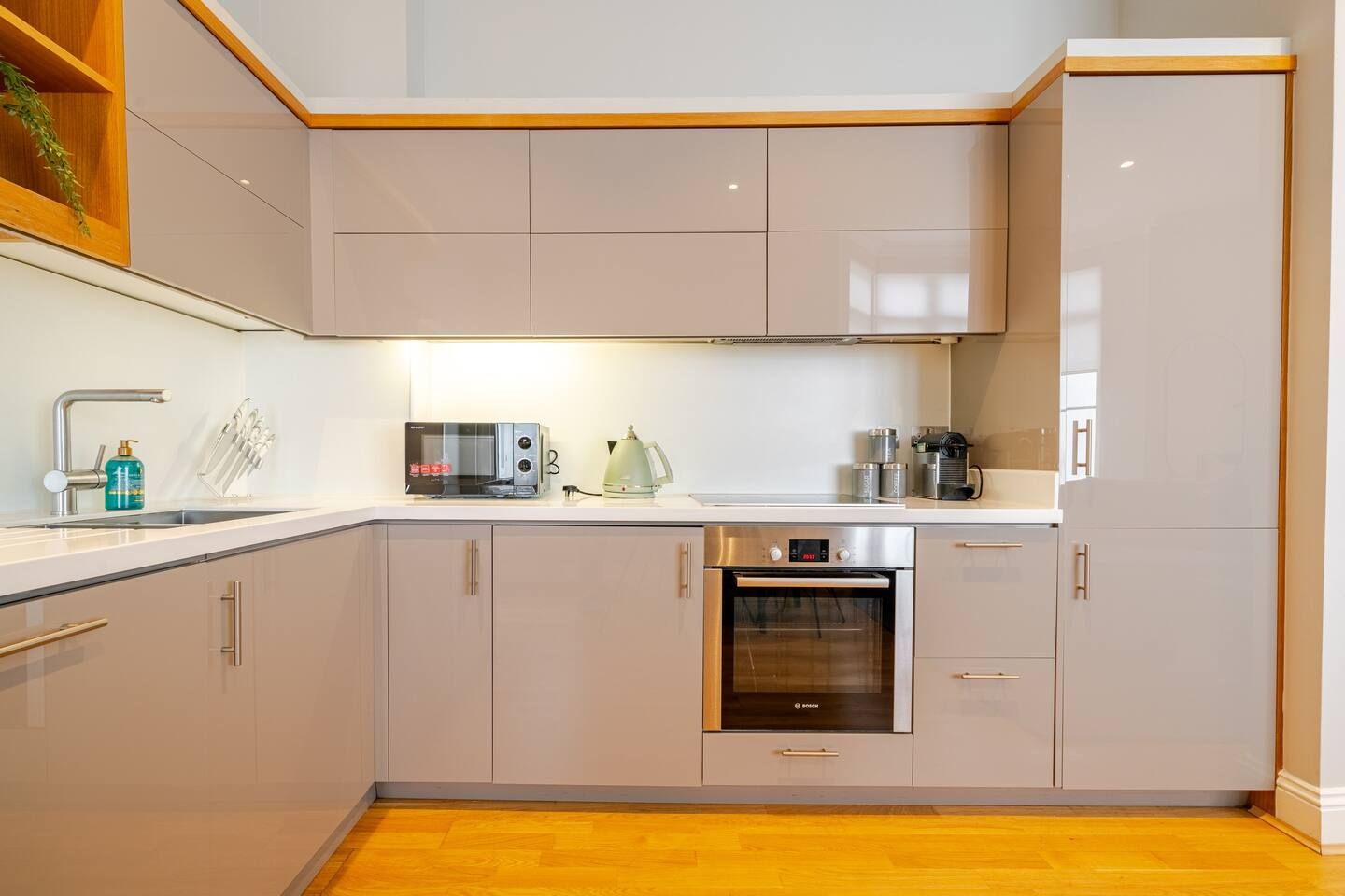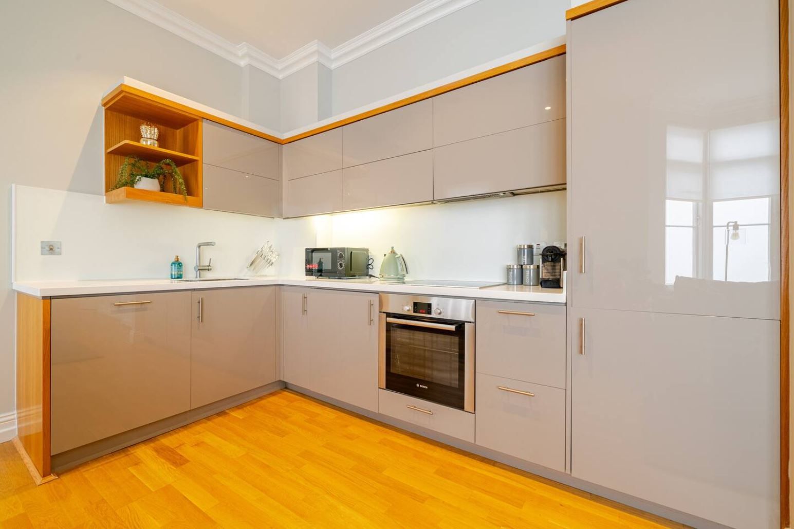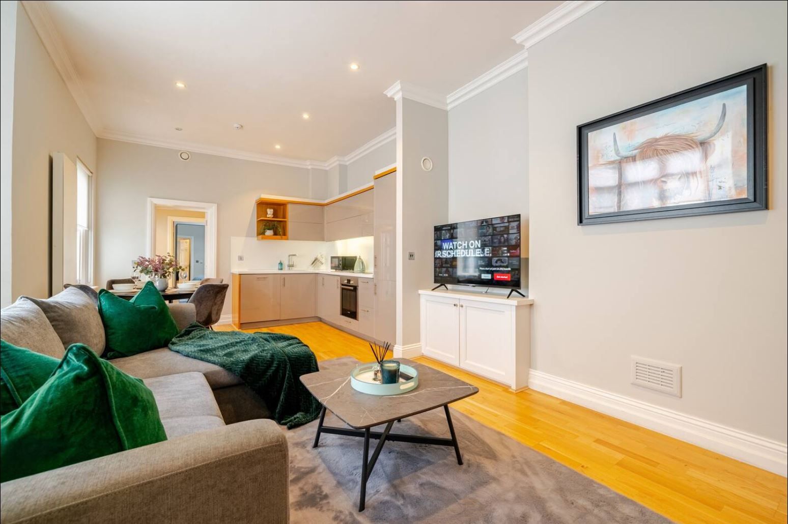 In the heart of Marylebone, this fuss-free apartment is a great find for no-nonsense travellers. Although the design is a bit plain, it's comfortable and modern. The kitchen is well-appointed to rustle up meals at home, the bedrooms are a good size, and a sofa bed offers flexibility for guests five and six. That said, our favourite thing about this pad is the location. Oxford Street, Regent's Park, and public transport are all within walking distance, plus there's an array of cafes, restaurants, and shops nearby, so there's always something to do.