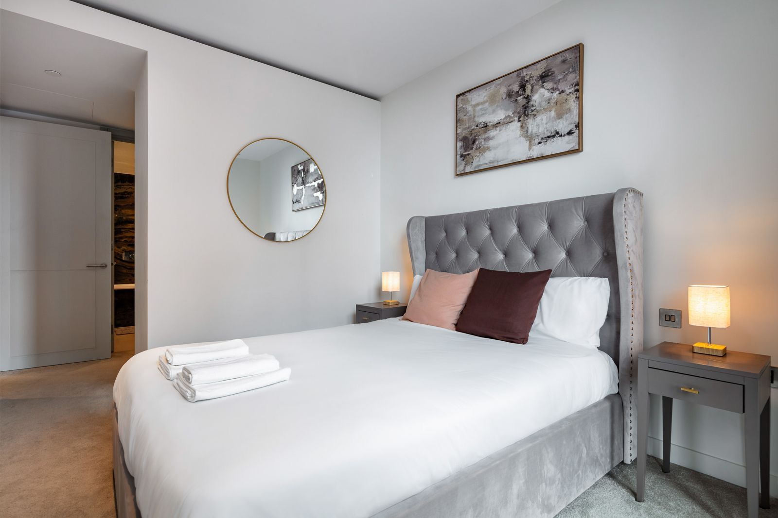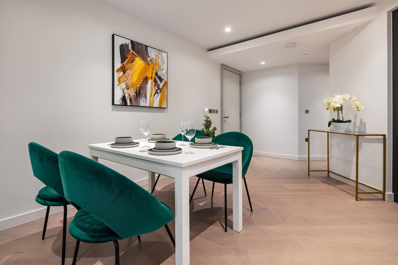 Home truths: *Well-behaved pets are welcome to accompany you during your stay. *If you're travelling for work, you won't find a dedicated desk here. However, the dining table doubles up as a laptop-friendly workspace. *Parking in London can be tricky, so we recommend sticking to easily accessible public transport where possible. *Long-term guests, staying six months or more, have access to the building’s facilities which include a swimming pool, cinema room, sauna, and gym. *Please note that the total guest count listed above cannot be exceeded – it is inclusive of children and infants.