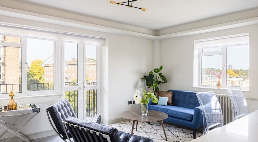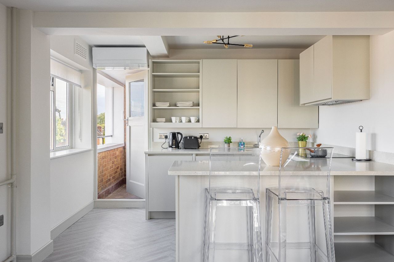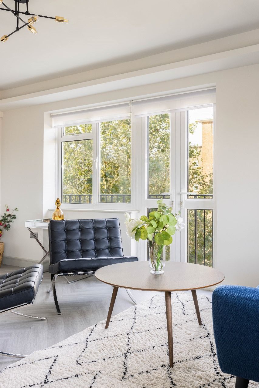 This centrally located penthouse apartment is an excellent choice for a London stay. It’s located just opposite the Wellington Hospital and mere moments from Regent’s Park, with easy access to shops, restaurants, and transport links – St. John’s Wood Tube station is just a few minutes away. The penthouse is a sleekly stylish base, contemporary and comfortable. The living space and kitchen lead to the balcony, where you can enjoy your morning coffee while gazing over London rooftops.