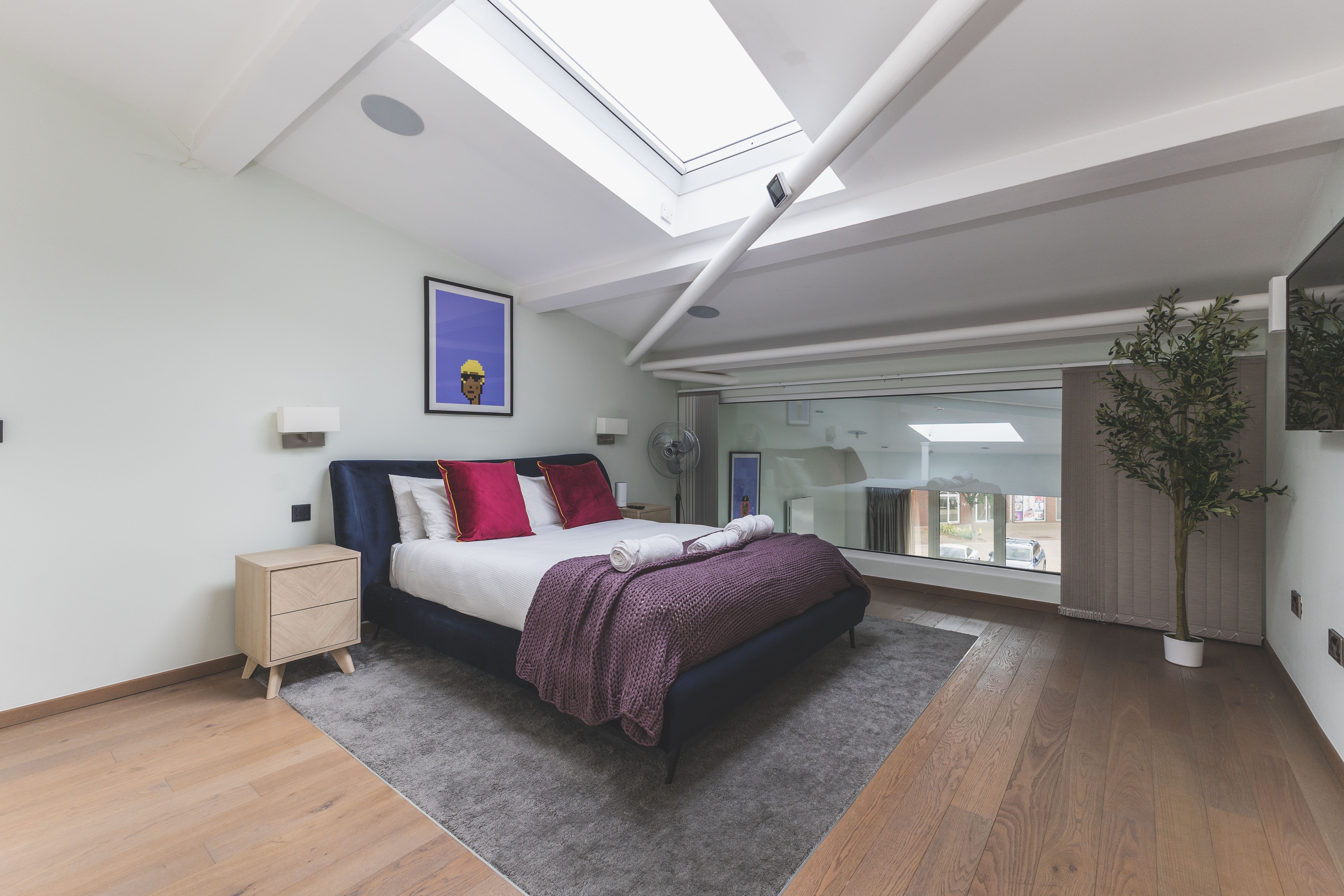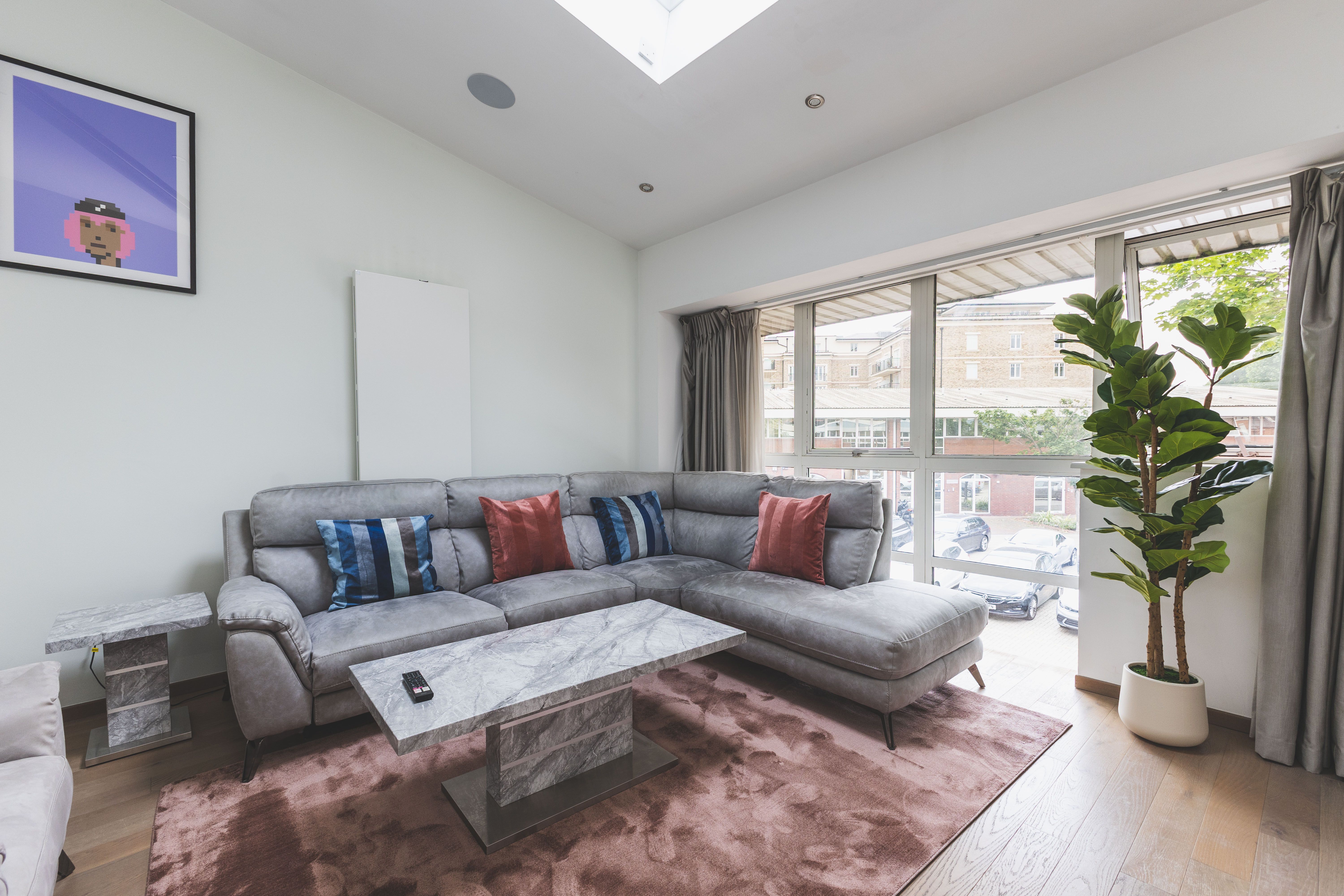This characterful duplex apartment boasts an unusual layout, as well as an unusual location for riverside West London – a functioning business park south of Fulham. Such a location means excellent security, but the apartment itself is also perfectly comfortable, with two bedrooms sporting king size beds and a large bright living room which flows down some steps into a kitted out kitchen and dining area. Moments from Wandsworth Bridge, you'll be free to walk along the south bank of the Thames towards Battersea Park, or stay on the north side and venture twenty minutes north towards Parsons Green tube station.