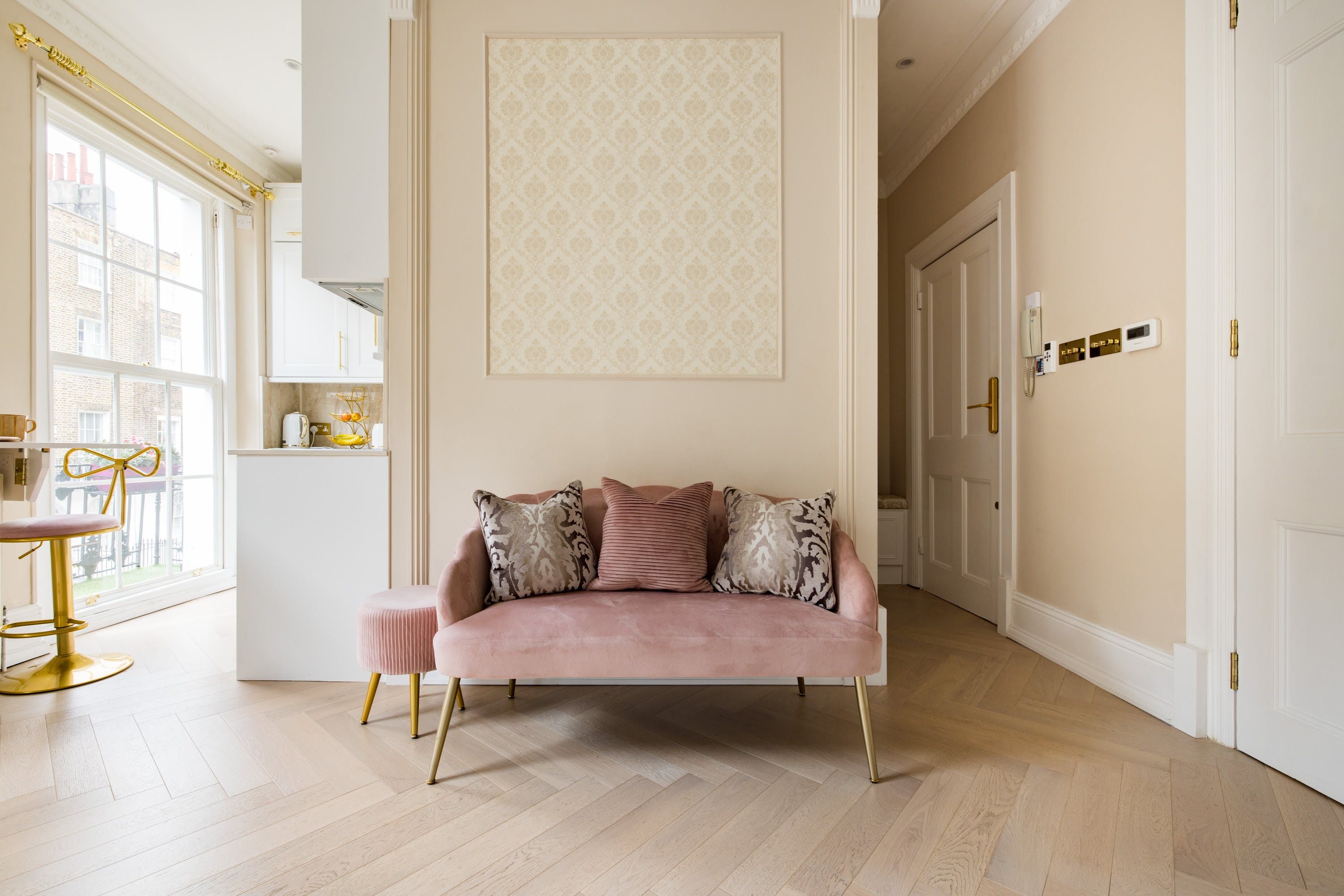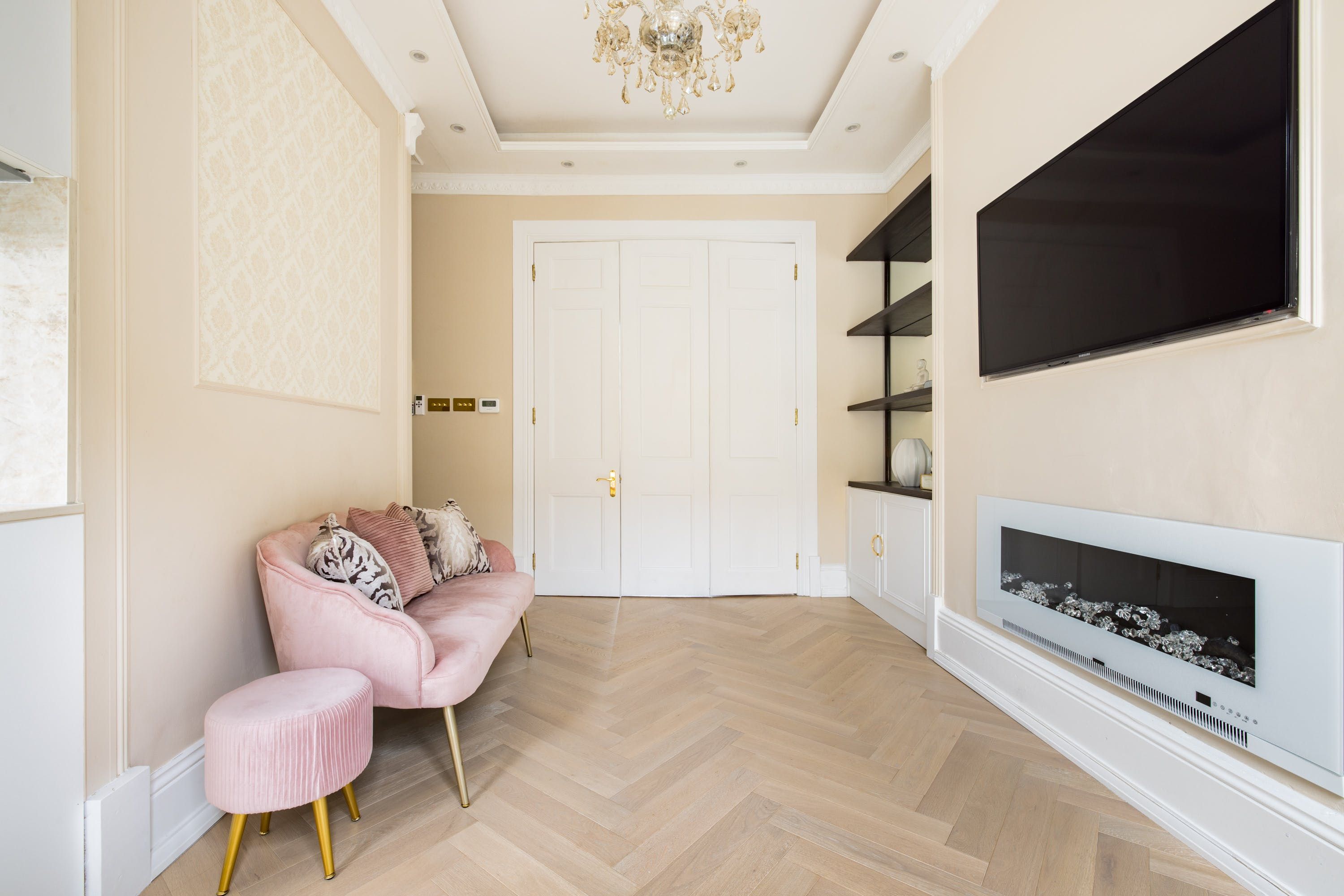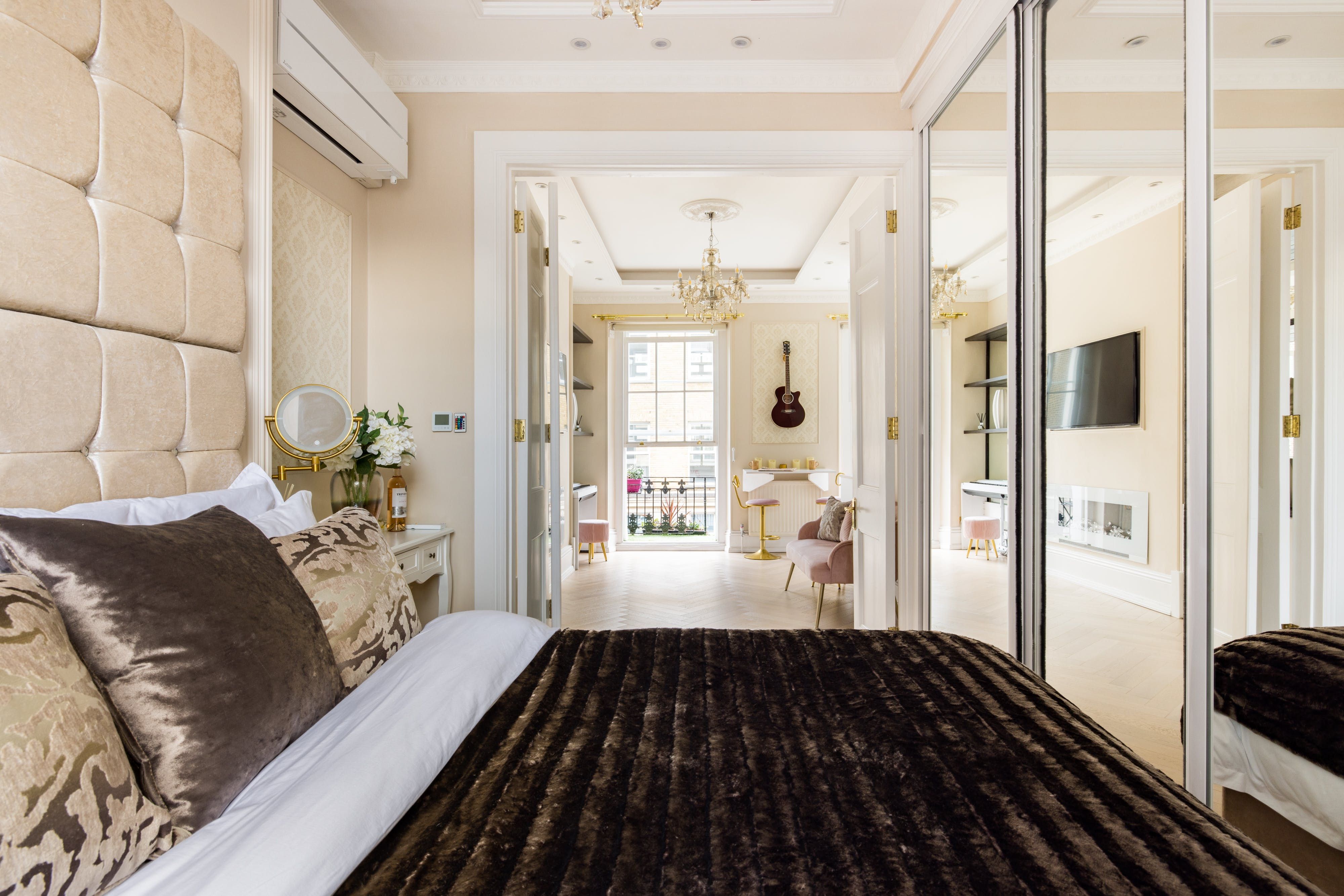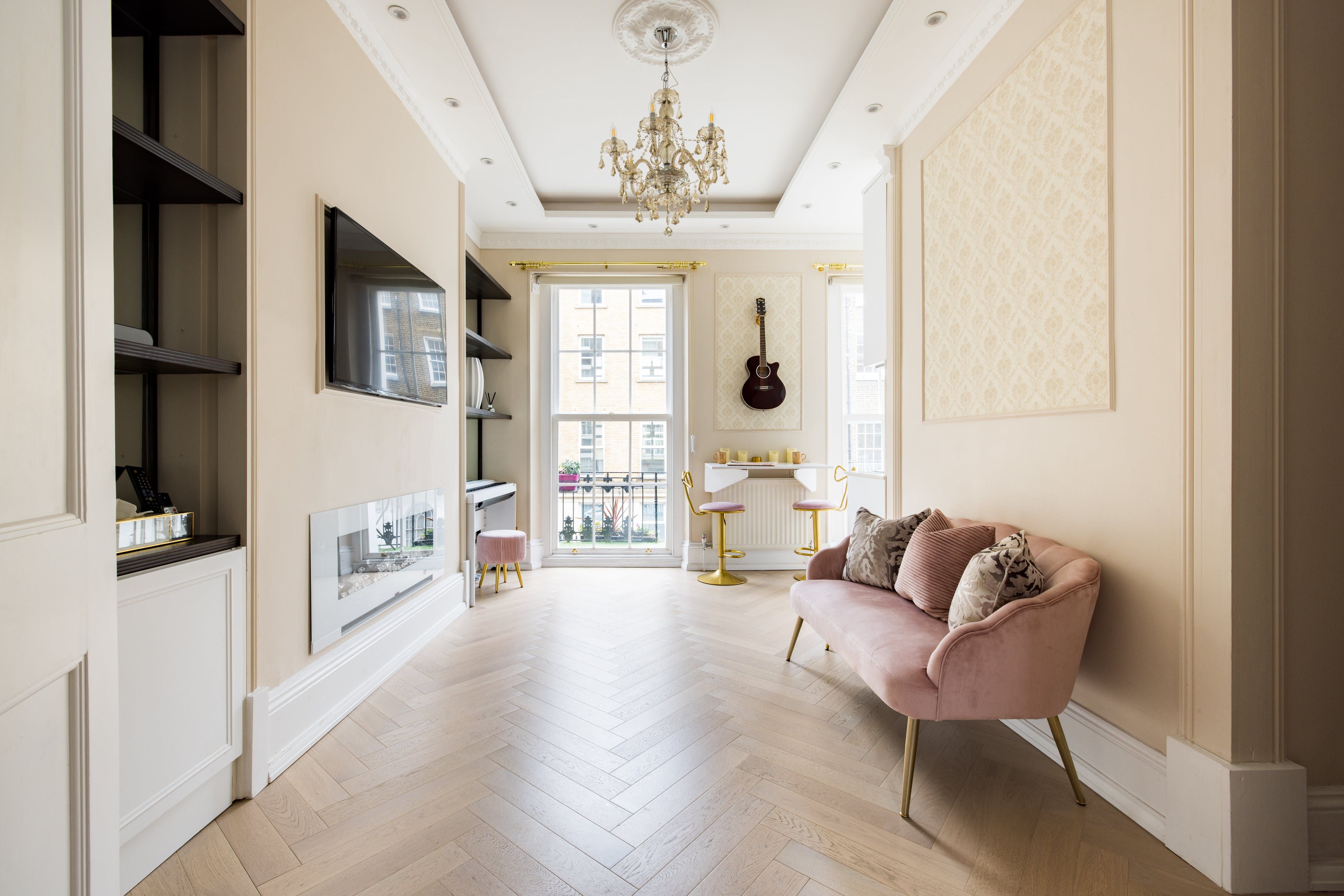 Located near Regent’s Park, in the affluent area of Marylebone, this home screams of opulence and luxury. At first glance it might be the marble, herringbone flooring, and chandeliers that catch your eye, but the classic Georgian interior, high ceilings, sash windows, dusty pinks and brass, and textures of velvet all combine seamlessly to create a space in which to unwind stylishly.