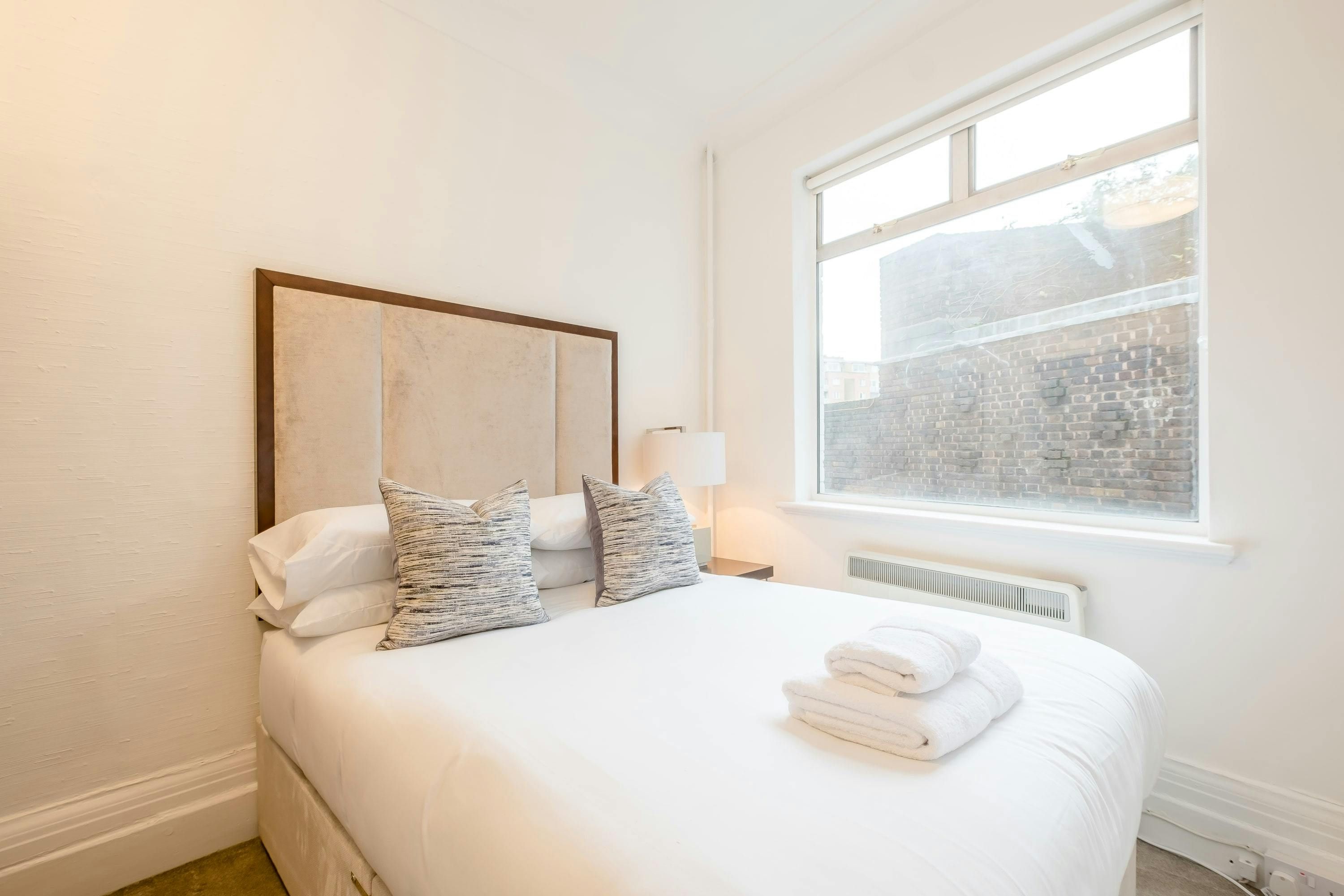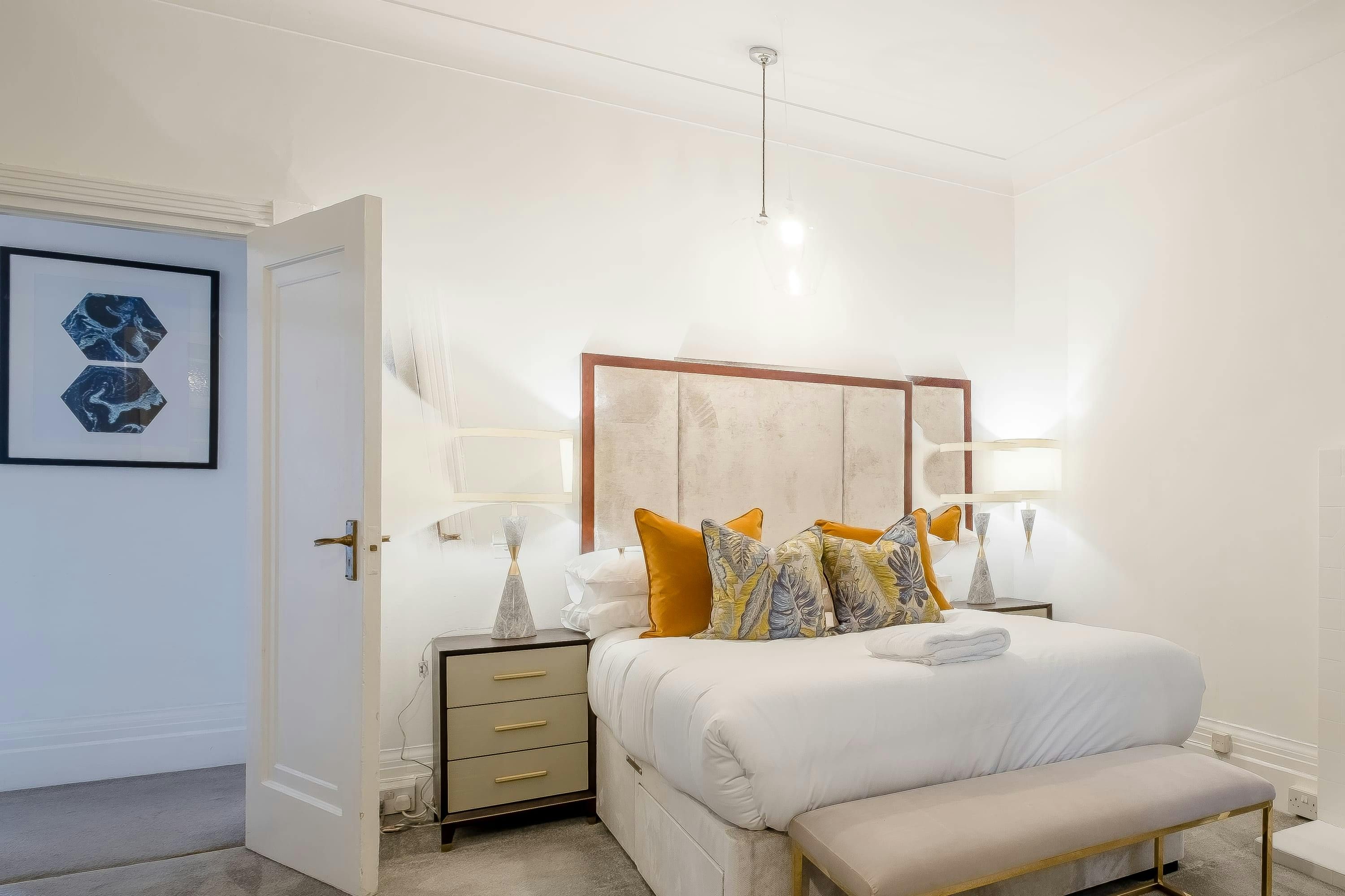 Regent's Park is quite literally on your doorstep at this modern apartment in St John's Wood. It's set on the ground floor for easy access, though that does mean it lacks a bit of natural light. Alongside the cosy living area and sleek kitchen, you'll have a private (albeit tired-looking) patio to enjoy. Travelling for work? You'll find a desk in the lounge, plus a vanity in the main bedroom that can double up as a workspace. If adventures are on the cards, you're just a stone's throw from Lords Cricket Grounds, Baker Street, and London Zoo.