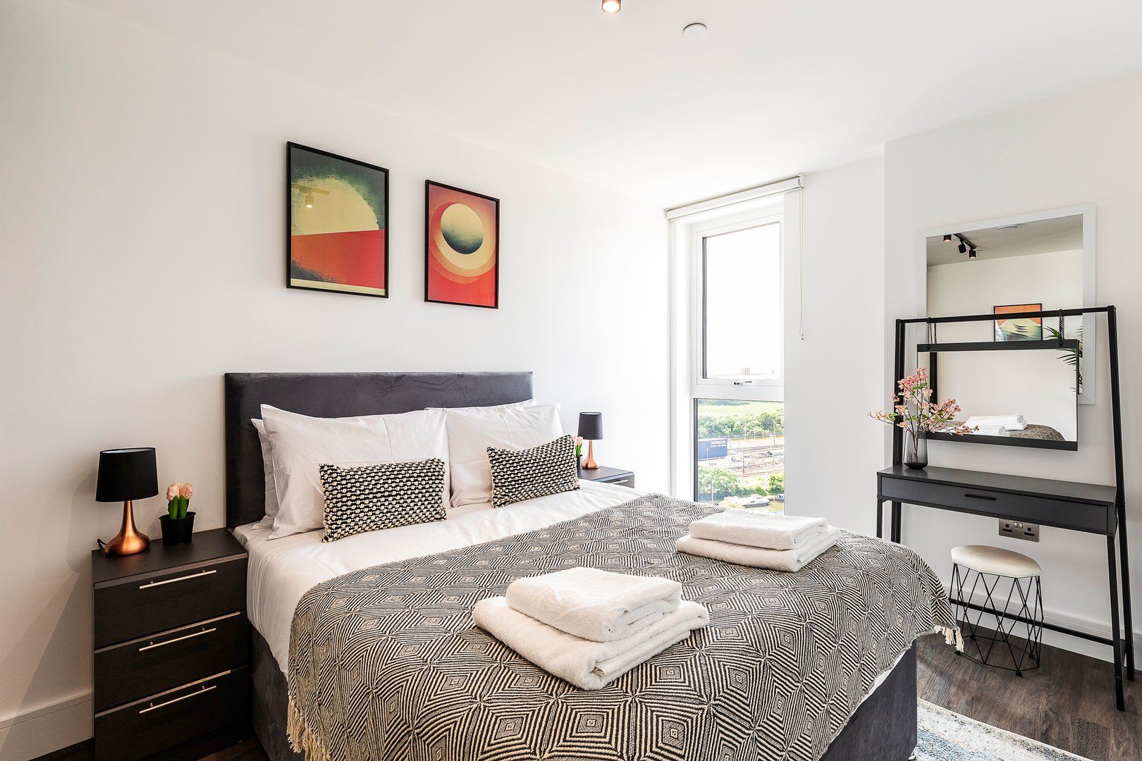 This contemporary apartment offers a light-filled stay in West London. You’ll be treated to impressive views across Harlesden and there’s a private balcony for sunset drinks. Inside, the rooms are just as welcoming with all the essentials you could need to relax, disconnect or catch up on work. And when it comes to explorations further afield, you’ll find it’s just a short walk to Willesden Junction station – providing quick links with central London. You can also walk to the nearest restaurants, pubs and shops.