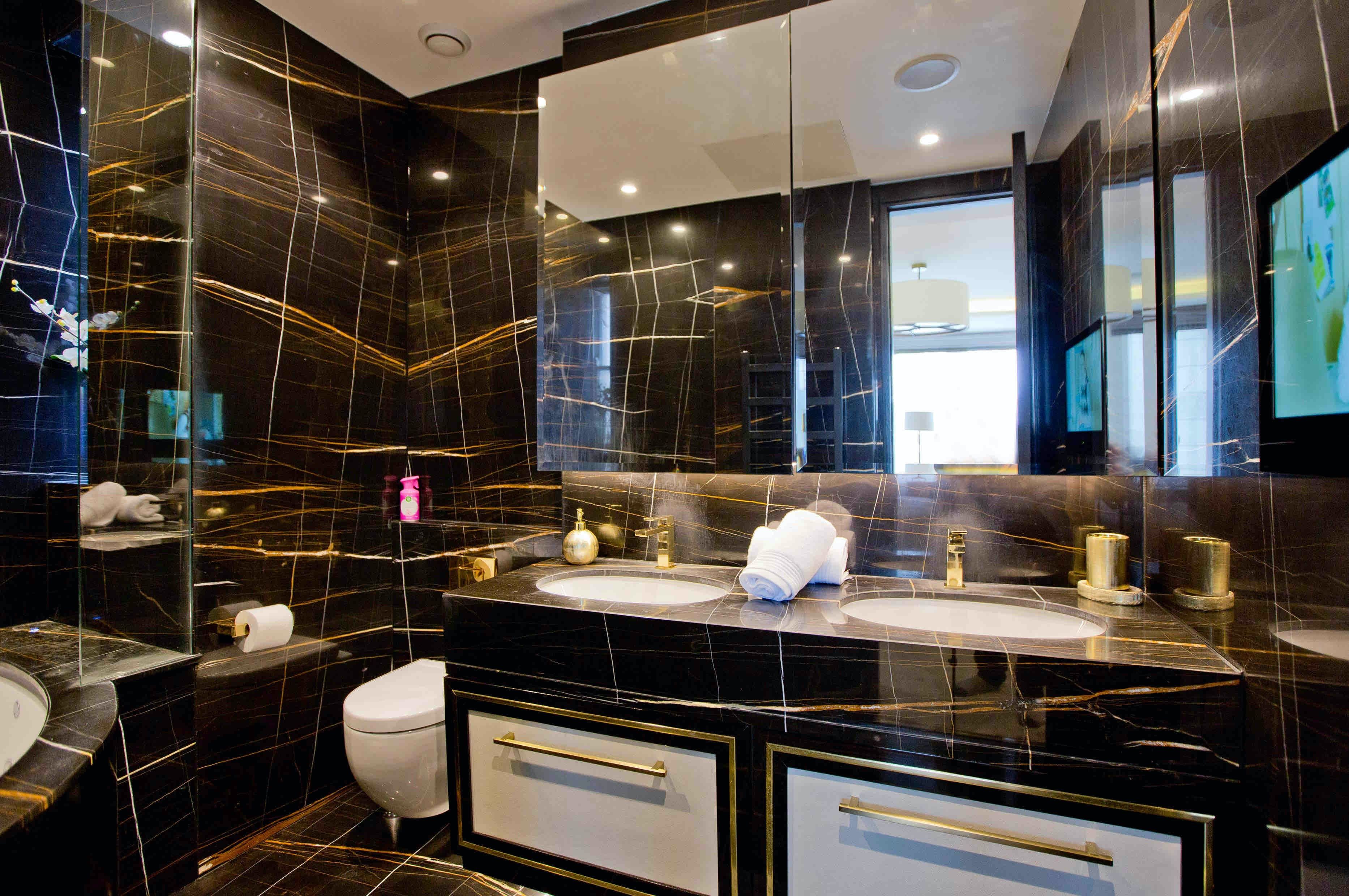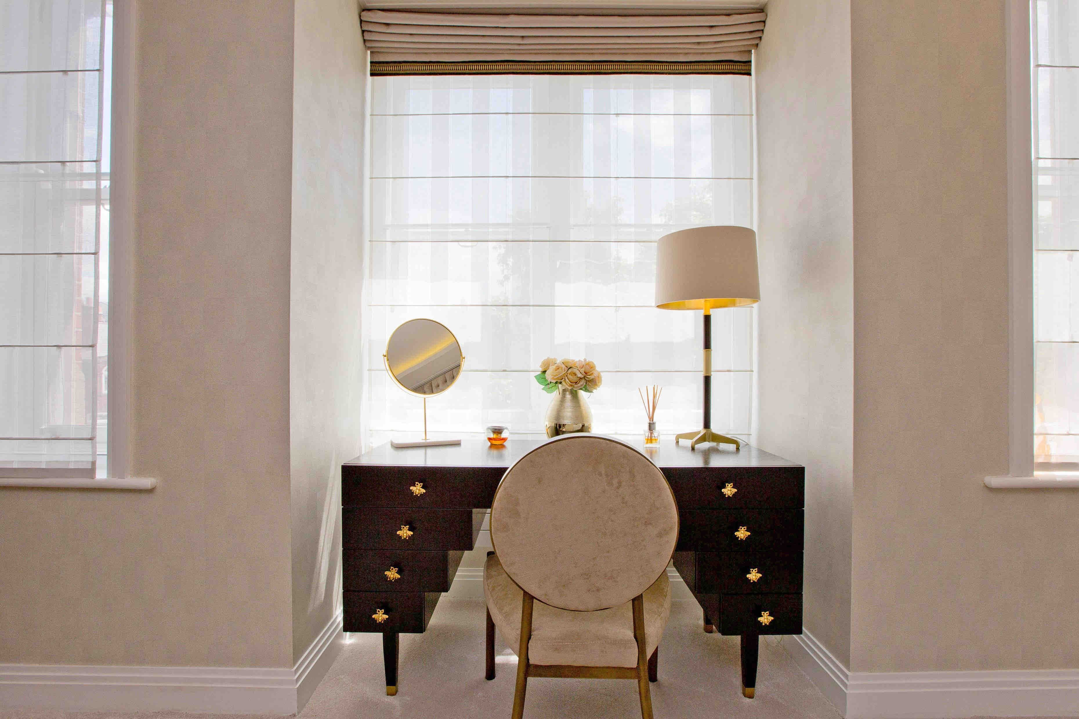 Stepping inside, you'll find a glamorous home that's been expertly curated with high-end touches to add that extra level of shine – from the zebra print armchairs, velvet rugs and claret-coloured dining chairs to the ornate chandeliers, modern art and marble-cadded kitchen and en-suite bathrooms.
