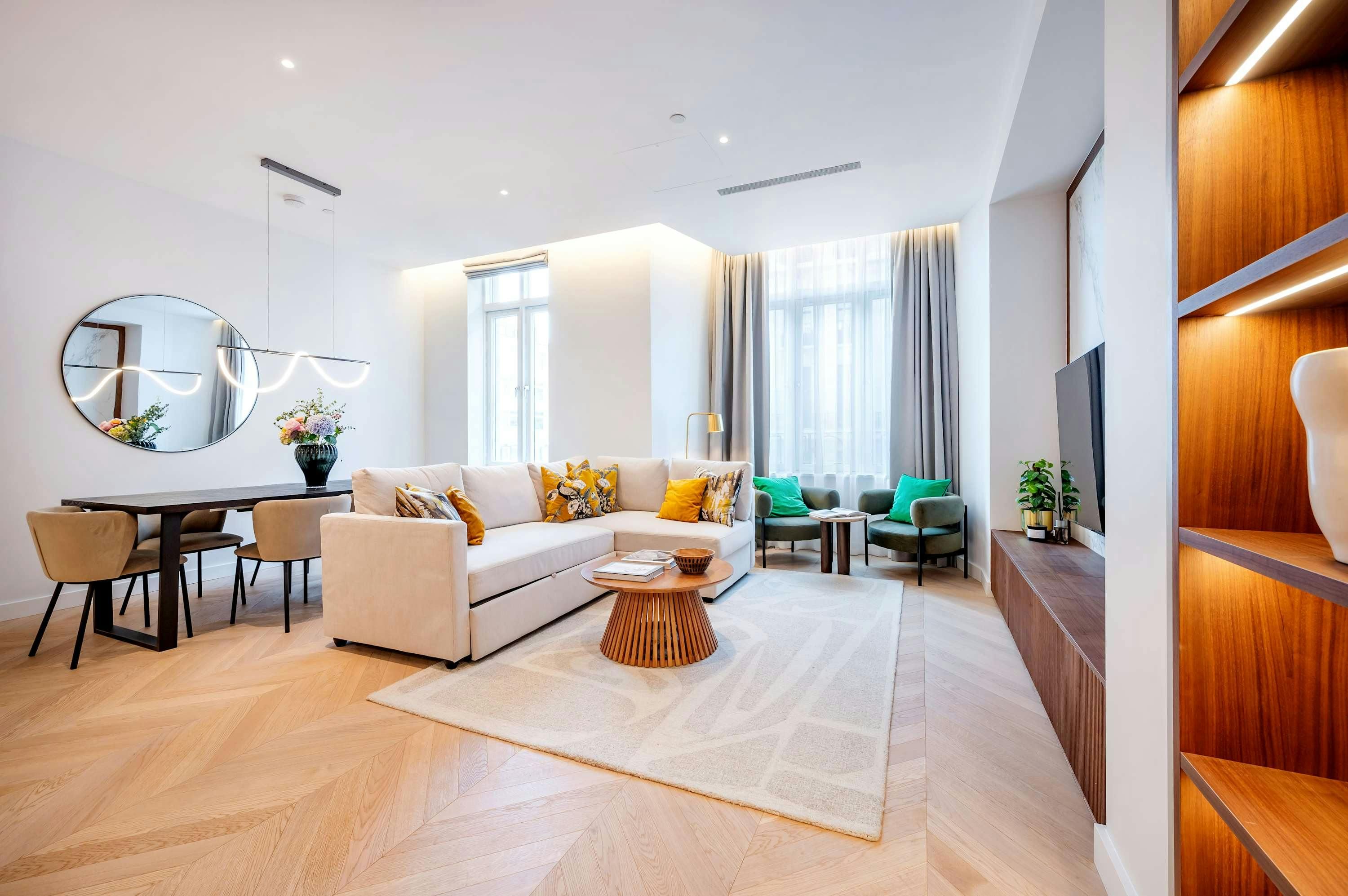 This apartment welcomes you to experience luxurious ease in the heart of Fitzrovia. Stepping inside, you’ll be welcomed by a light-filled living room offering the perfect spot for social gatherings. The main bedroom comes with an en-suite bathroom for optimum privacy, while the second bathroom comes has a bath for long soaks. Outside, you can stroll through the neighbourhood while admiring iconic landmarks and attractions – the Wallace Collection is just a short walk away. There are also great public transport links and paid parking is available nearby if you’ll be travelling by car.