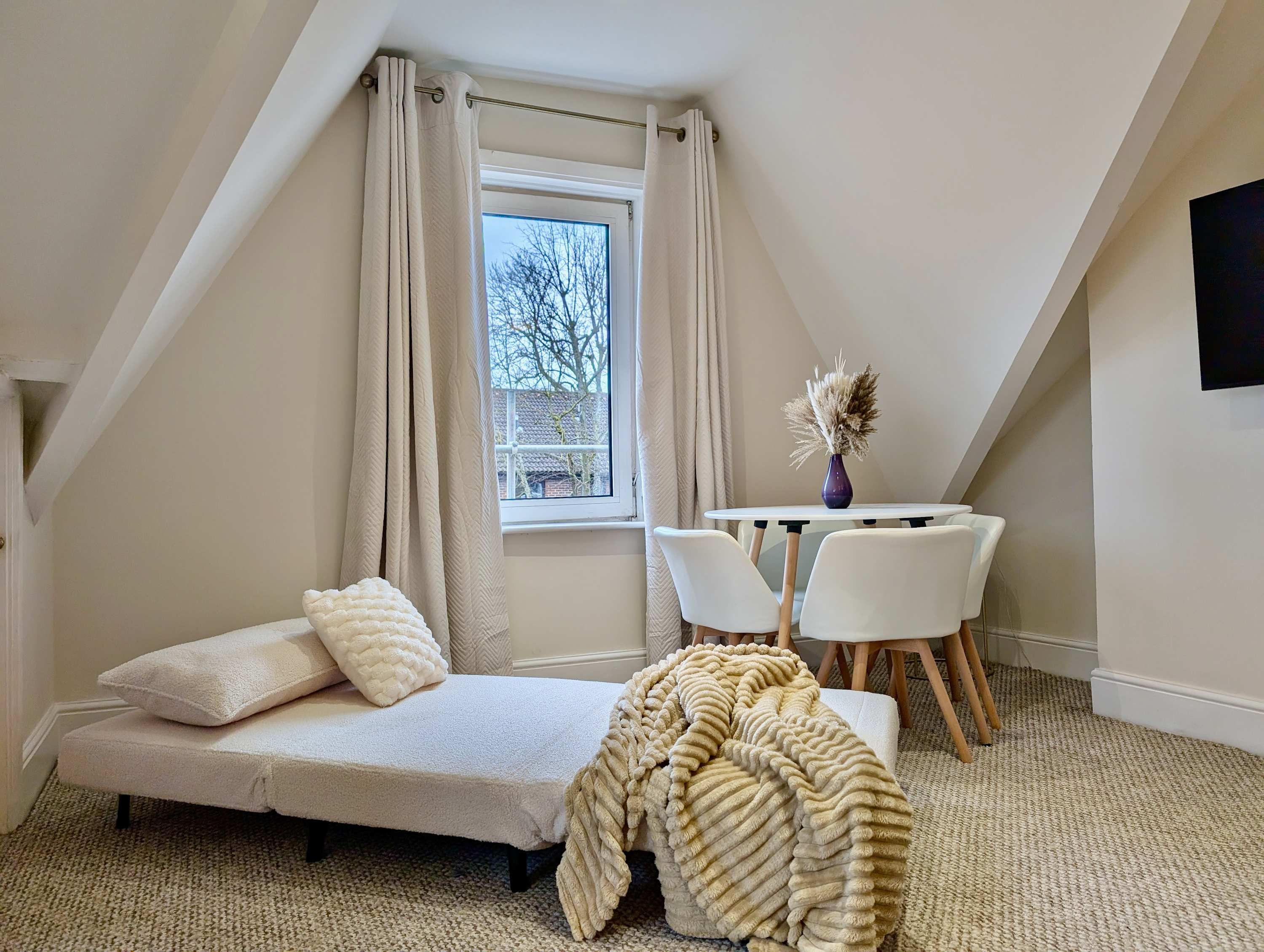 Just a five-minute stroll from West Finchley Station, this apartment delivers a great solution for a well-connected city stay. From here, you can reach central London in just thirty-minutes. The bus stop is one-minute away and you’ll find local amenities within easy walking distance. So whether you’re planning a sightseeing adventure or a productive work trip, this apartment is the ideal base. There’s a snug living room with a sofa bed for one guest and you’ll have access to a garden for warm weather drinks.