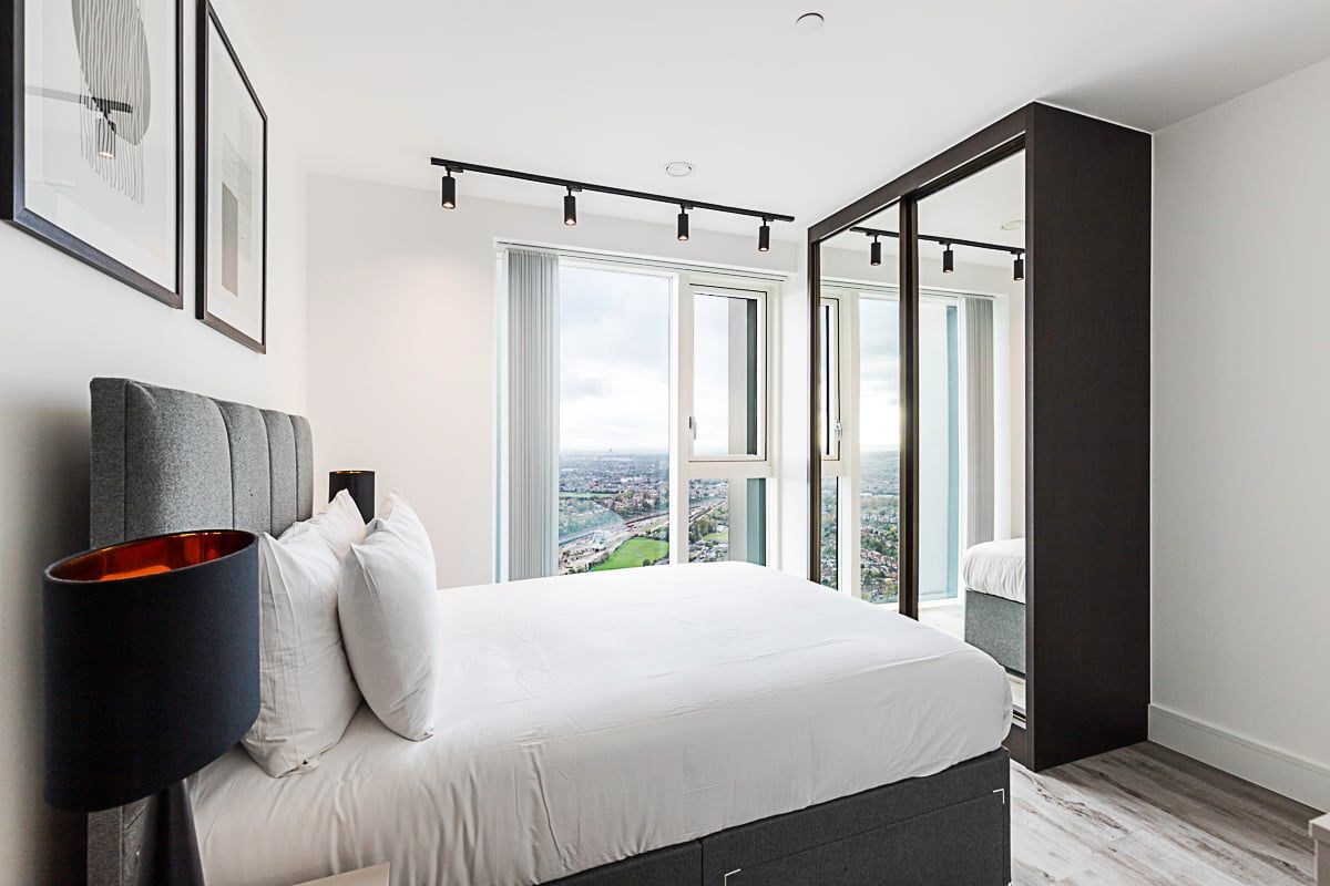 Found on the forty-third floor, this two-bedroom North Acton apartment boasts breath-taking views. While maybe not ideal for those partial to vertigo, this home provides amenities in keeping with a high-end luxury flat – though it lacks a laundry room, this is compensated by a fully stocked kitchen, a bathtub in one of the two bathrooms, and an open, tastefully decorated living and dining area. Acton itself may be a departure from more established London districts, but the building's proximity to transport links – especially Action Main Line station, which sits on the speedy and efficient Elizabeth Line – means the city's shopping, landmarks and nightlife are only a few minutes away.