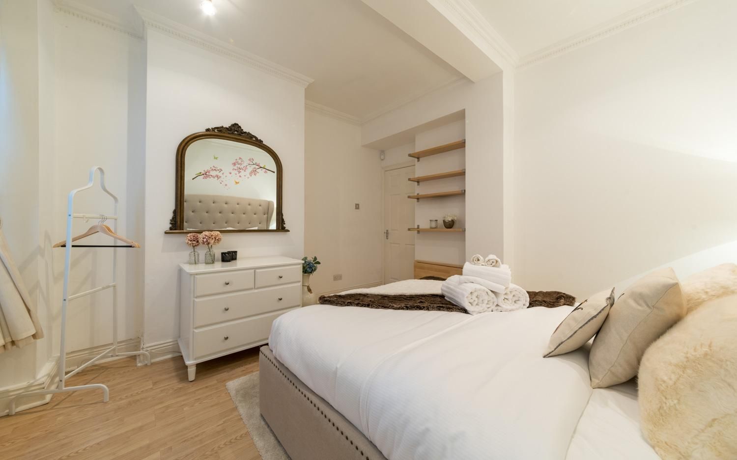 *To conserve space there is no wardrobe in the master bedroom - there is a hanger rail and a chest of drawers instead.
