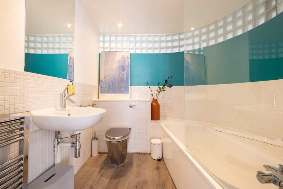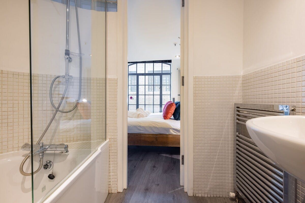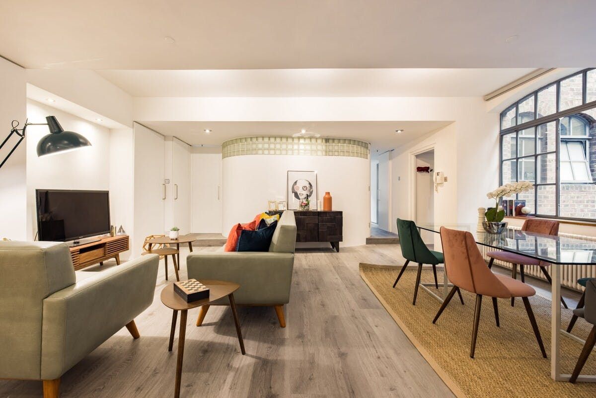 Situated between Soho's most iconic thoroughfares of Dean Street and Wardour Street – this home is perfect for a city getaway or work trip. Just a one-minute walk will take you to a myriad of restaurants and bars, or sample the cosmopolitan nightlife in Old Compton Street, a four-minute saunter. If you crave some greenery, then leafy Soho Square is a three-minute stroll, or have an evening at the theatre – Leicester Square is a ten-minute wander, while Covent Garden is twelve minutes on foot. Housed in one of the area's most desirable apartment blocks, the converted warehouse facade of the building will make you feel like you're living on a film set. We were surprised by how peaceful this place is inside, considering it's located in one of london's most lively neighbourhoods. Sunlight streams into the stylish open-plan living space, thanks to the enormous windows. Enjoy some cosmopolitan cocktails at the steel island in the spacious kitchen, or relax with some candles and music in the bathtub before exploring all this fantastic district has to offer. It's no wonder this home has amazing reviews – we love it here.