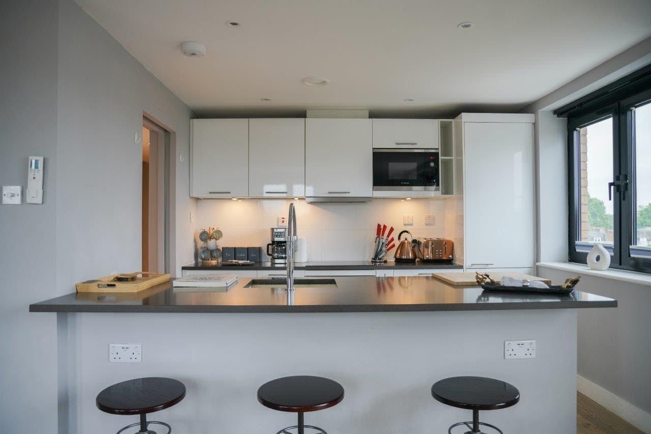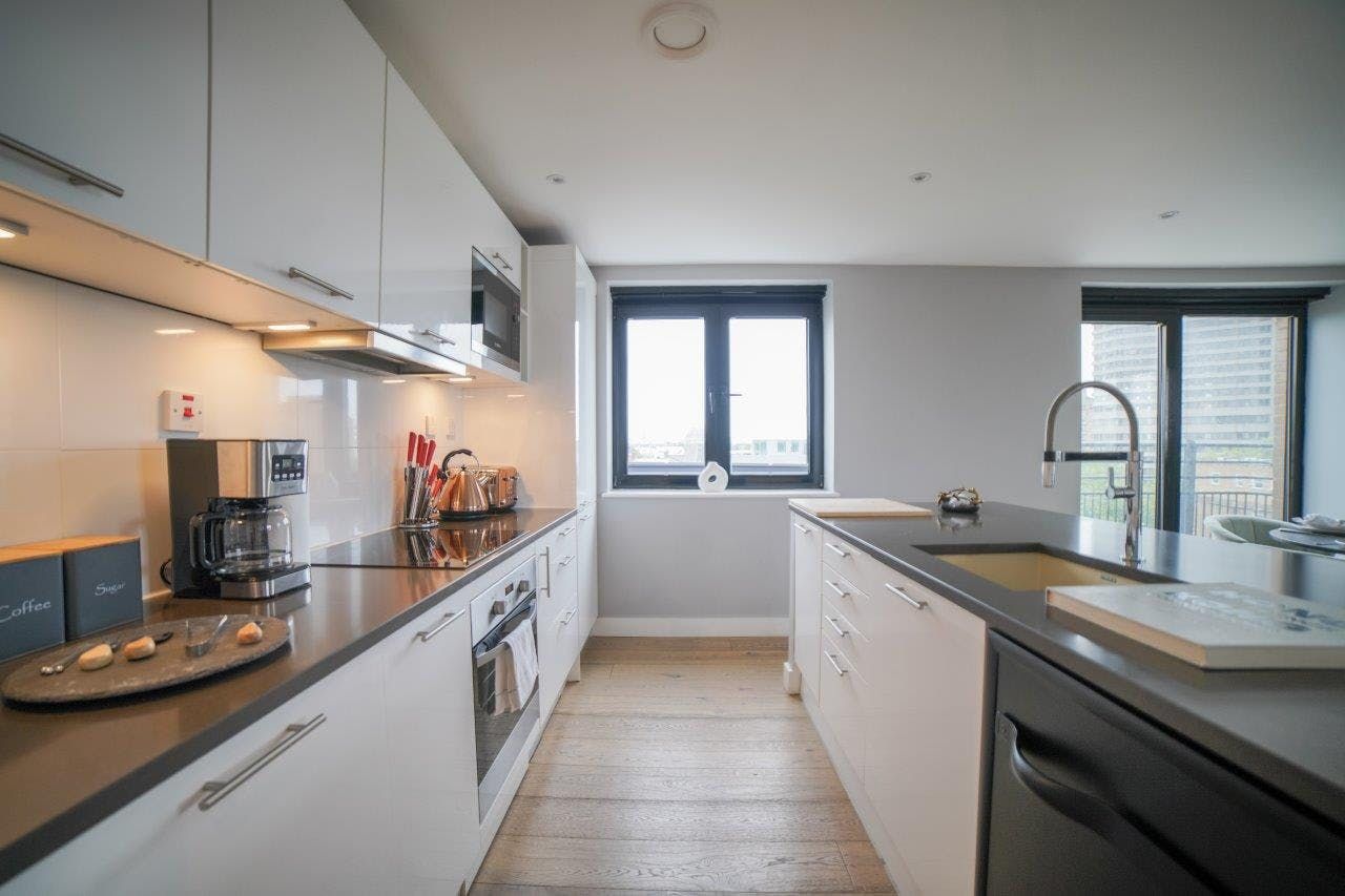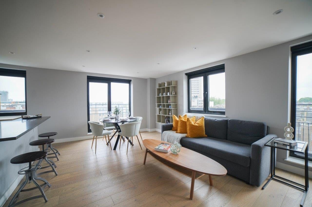 With floor-to-ceiling windows and a private balcony inviting you for morning coffees, this modern apartment will make you feel at home from the get-go. It’s an ideal base for a family or group of friends – just bear in mind that as a party of six, two people will sleep on the sofa bed in the living room. Still, it’s a small price to pay for the location. With a Tube line running nearby, while you may hear some noise from passing trains, hopping across the city is a breeze. And with a plethora of museums, shops and eateries within walking distance, you’ll never be short of things to do.